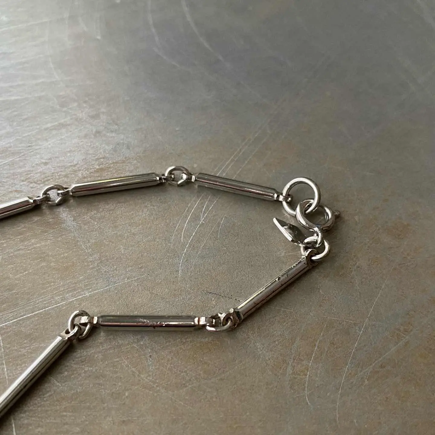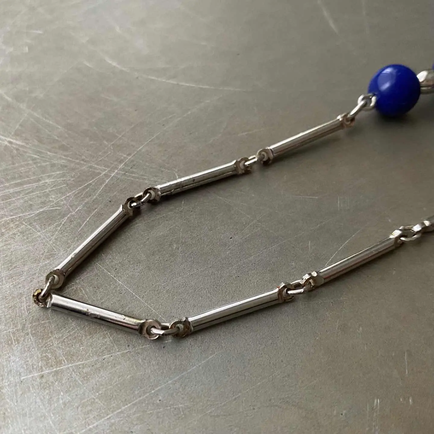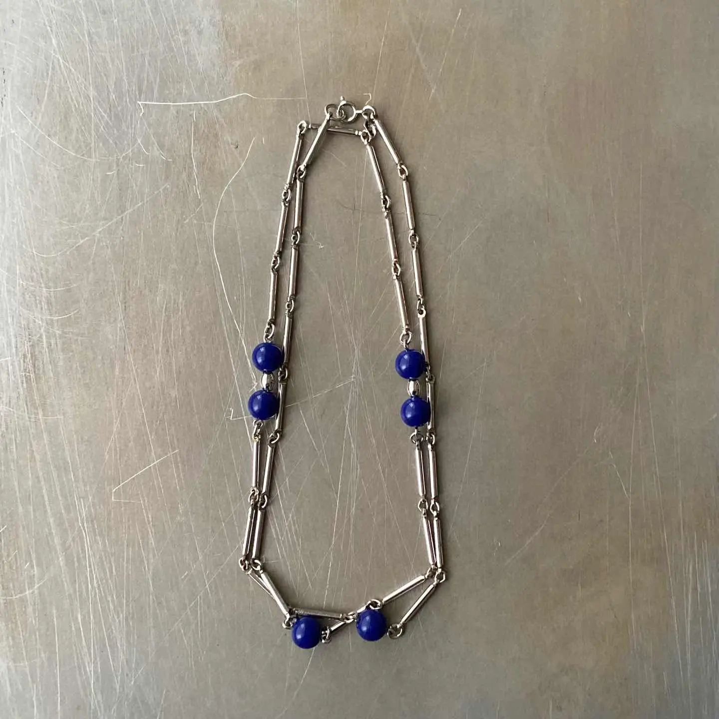1949年に設立されたジュエリーブランド『Sarah Coventry』のUSAヴィンテージネックレス。ブルーのビーズが魅力的なロングチェーンタイプ。2連にしてもお使いいただけます。 □Materials メタル(シルバーメッキ)、プラスチックビーズ □Size 全長 約79.5㎝ 幅 約2.5〜10㎜ 25g □Brand Sarah Coventry(刻印入り) □Condition【C】 画像の通りメタル部分にメッキ剥がれ等ダメージがみられます。状態を考慮したお値段になっておりますのでご了承ください。中古品であることをご理解のうえお買い求めください。ご購入前に必ずショッピングガイドのご確認をお願いいたします。 【S】未使用 【A】未使用に近い 【B】やや使用感あり 【C】使用感あり Item No.3491