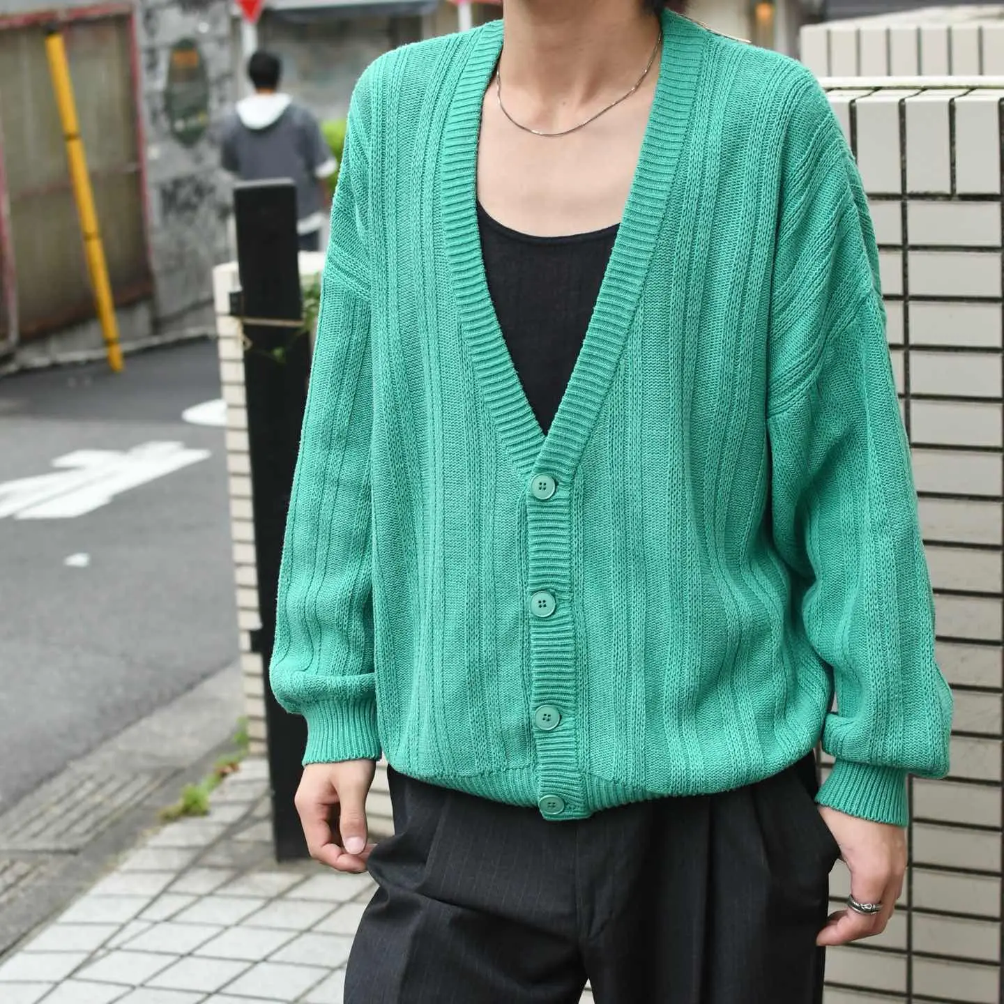 SIZE:- 着丈65cm 肩幅72cm 身幅72cm 袖丈51cm fabric/質感よりcotton 着用画像 173cm/56kg 色で遊べるカーディガン。 レイヤードが楽しい季節、間違いの無い カラーだけでなく、こんな色味も取り入れてみてはどうでしょう。 シャツ、ニットポロ、ニットの上から さらりとどうぞ。 この色味がヘビーアウターの中から ちらっと見えるのも、なんだか新鮮で良いなと。 手入れがしやすいコットン素材で 肌にも優しいのがポイント。 ※撮影状況により、実物と多少色が異なる場合が ございます。 ※古着を取り扱っているため、気づかない汚れや ほつれ等がある場合がございます。 予めご了承ください。 ※サイズは着用感で選んでおり、 表記サイズではございません。 表記サイズは説明欄の最初に記載しております。 古着 オーバーサイズ old vintage ヴィンテージ used 80's 90's アメリカ古着 ユーロ古着 POLO RALPH LAUREN Eddie Bauer OLD GAP LANDS' END ランズエンド LLBean エルエルビーン オールドギャップ エディーバウアー ラルフローレン ブルックスブラザーズ Brooks Brothers 羽織り などがお好きな方 #vintage #オーバーサイズ #old #used #90s #80s #古着 #ヴィンテージ #アメリカ古着 #ユーロ古着 #LLBean #エルエルビーン #EddieBauer #エディーバウアー #oldgap #オールドギャップ #LANDSEND #ランズエンド #NAUTICA #ノーティカ #ラルフローレン #POLORALPHLAUREN #ブルックスブラザーズ #BrooksBrothers #ニット #セーター #カーディガン #コットンニット #羽織り