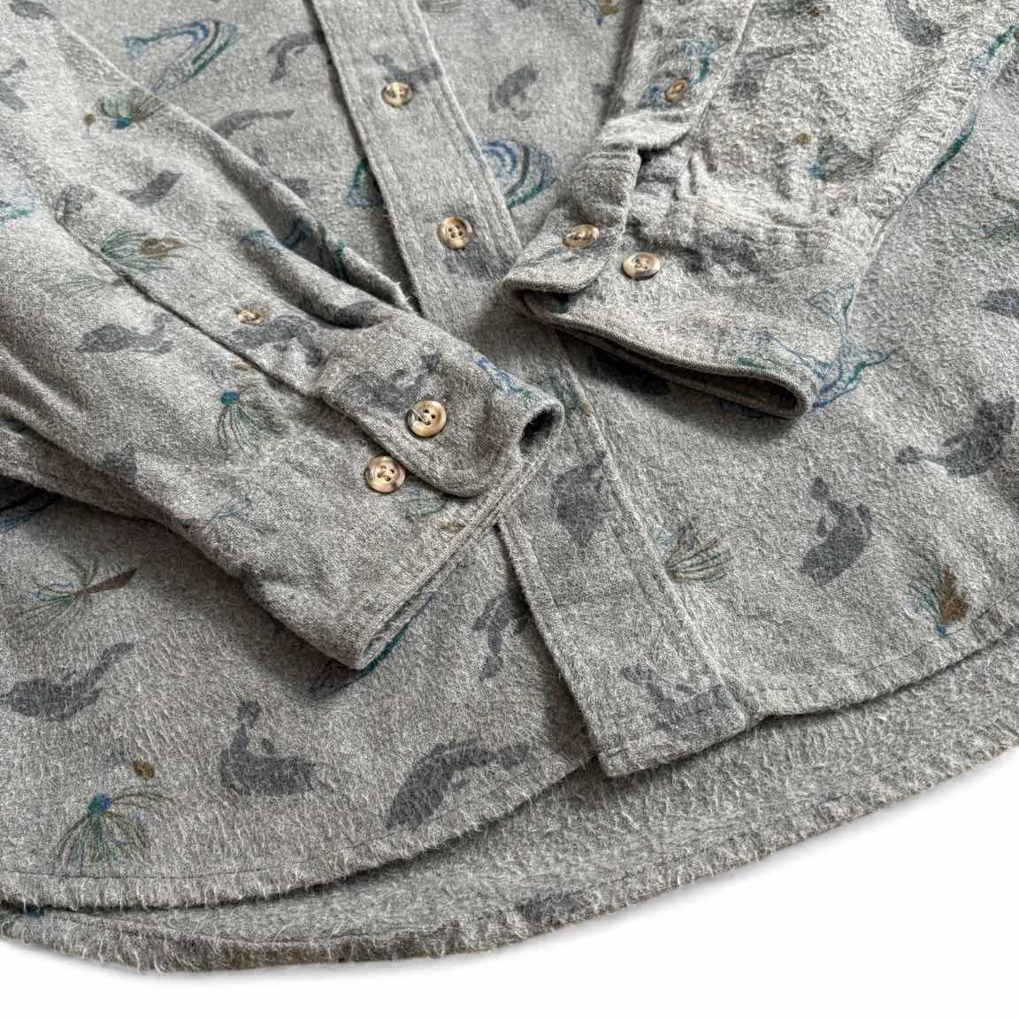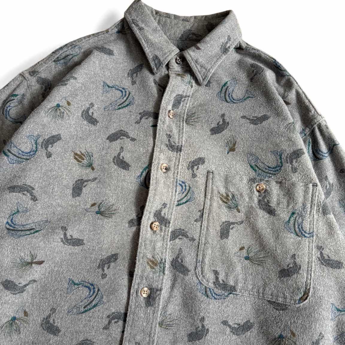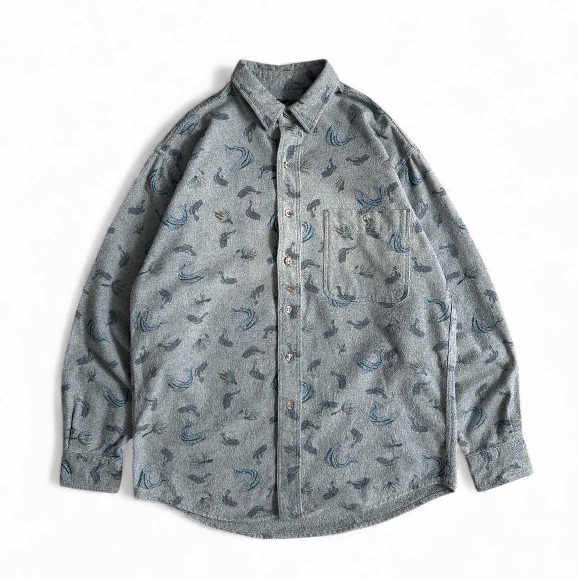 ○商品説明 80s〜90s USA製 EddieBauer 総柄のシャモアクロスシャツ。 魚とルアーがデザインされています。 ビビッときた方は是非。 ○サイズ 表記M 平置き ・肩幅48cm ・身幅57cm ・袖丈59cm ・着丈78cm ○商品の状態 B A:使用感がほとんどなく、汚れやシミもなし B:多少使用感はあるが、汚れやシミも少ない C:使用感があり、汚れやシミがある D:使用感があり、大きな汚れや破れあり ○色 グレー #80s#USA製#EddieBauer#エディバウアー#シャモアクロスシャツ