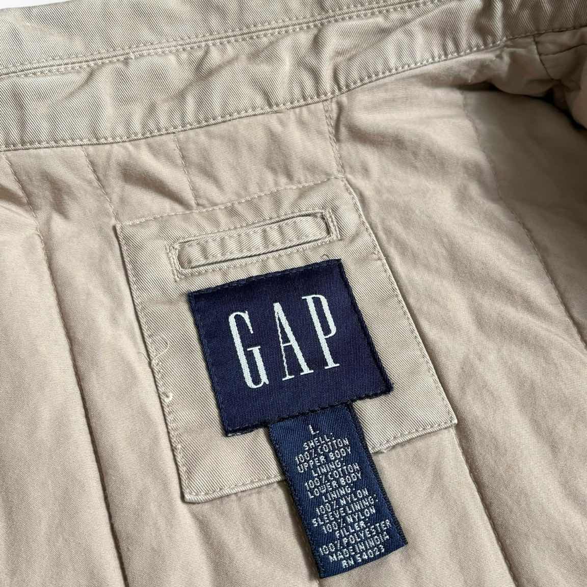 ○商品説明 GAP シンプルな一枚。 ギャップのコットンジャケットになります。 いらんことしてなくてこのシンプルさが◎ 内側には中綿が入っております。 気になった方は是非。 ○サイズ 表記L 平置き ・肩幅48cm ・身幅62cm ・袖丈66cm ・着丈72cm ○商品の状態 B A:使用感がほとんどなく、汚れやシミもなし B:多少使用感はあるが、汚れやシミも少ない C:使用感があり、汚れやシミがある D:使用感があり、大きな汚れや破れあり ○色 ベージュ #GAP#コットンジャケット
