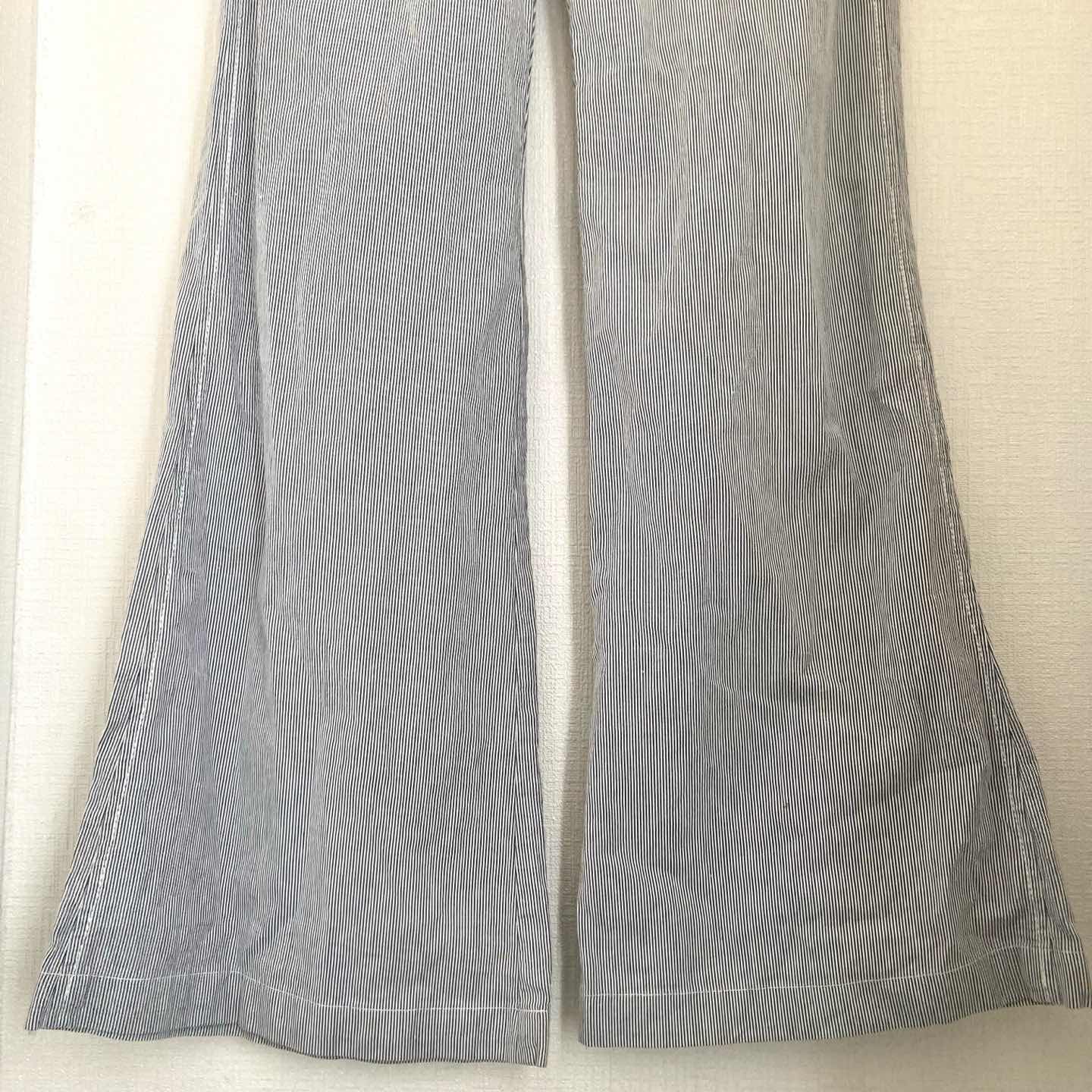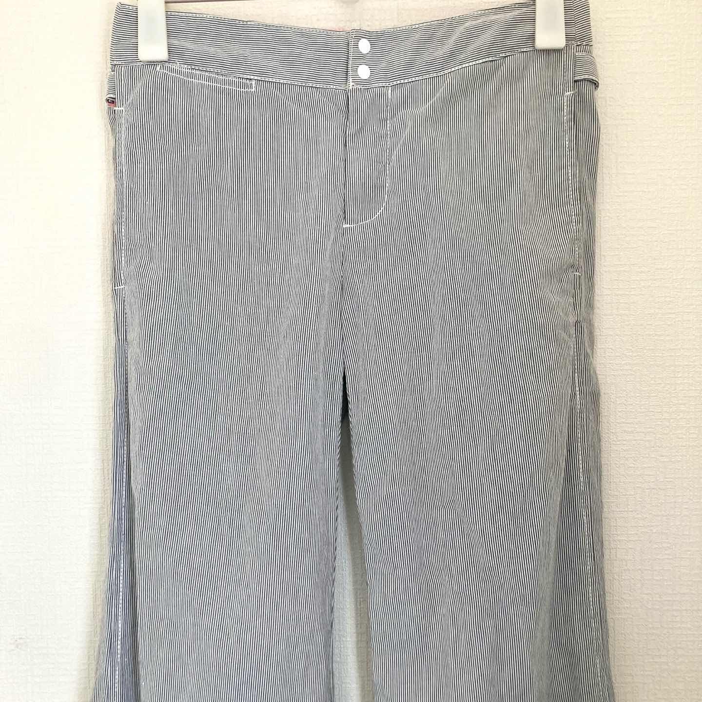 ラルフローレン ストライプ ワイド フレア デニムパンツ グレー コットン 28
