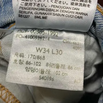 USA製 リーバイス510 W33L34 裏501 ライトブルー デニム ジーンズ 紙パッチ
