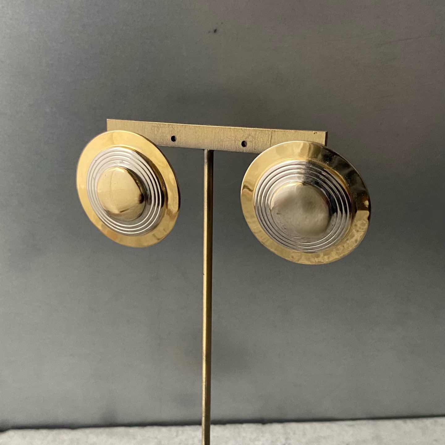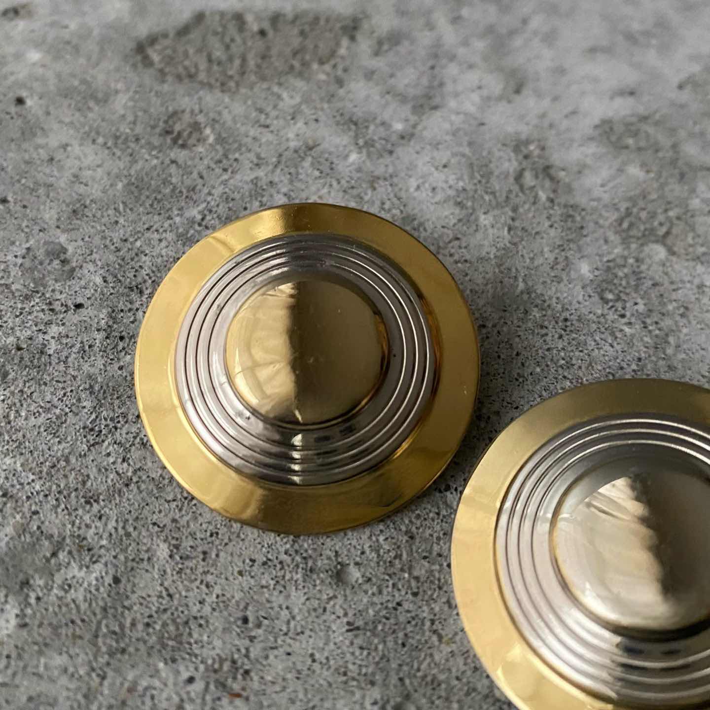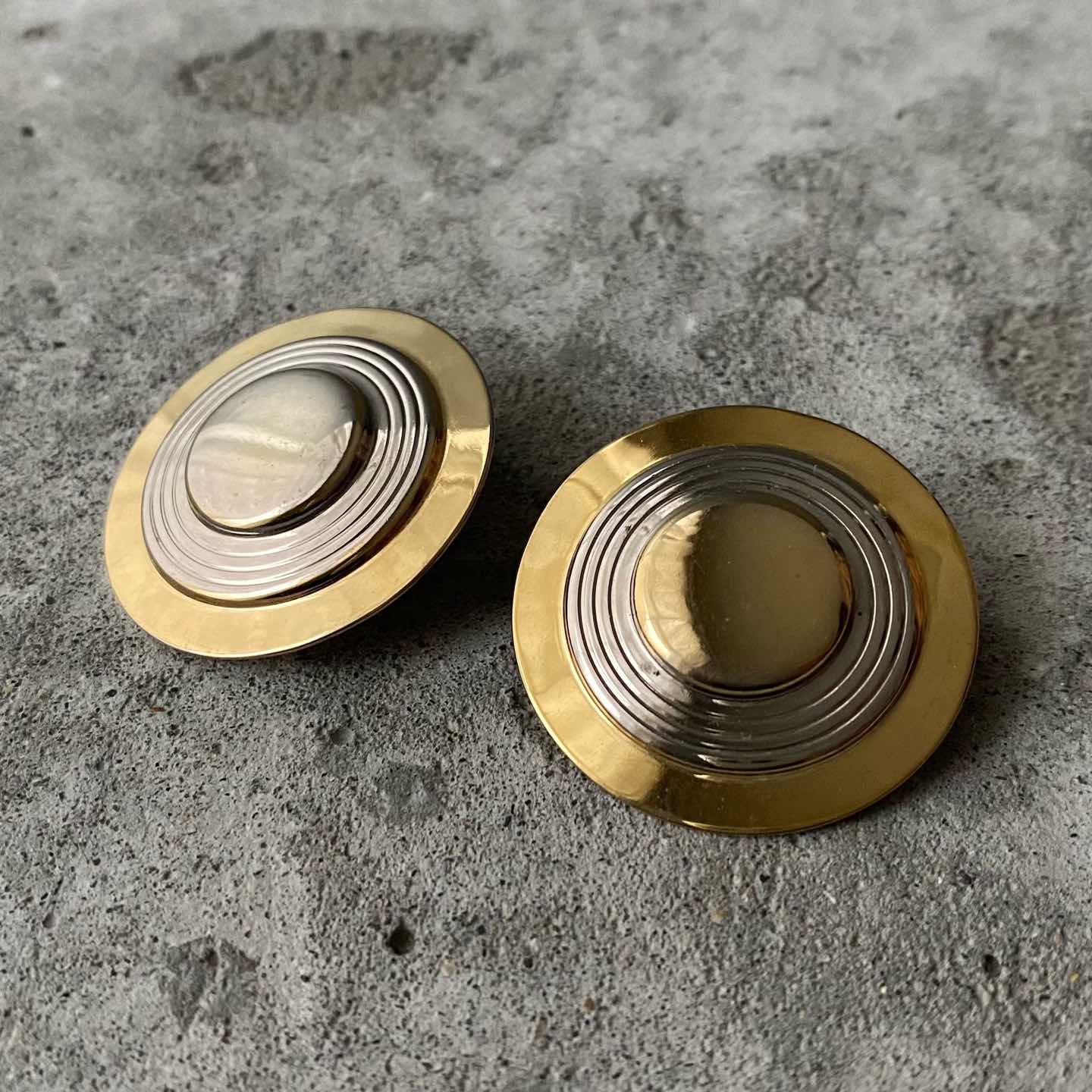 大きなメタルパーツが輝くレトロモードなデザインのUSAヴィンテージピアス。存在感があり古着スタイルのアクセントにおすすめです。 □Materials メタル(ゴールド&シルバーメッキ) □Size 直径 約3.3㎝ 8g □Condition【C】 画像の通りメタルの変色やくもり、細かなスレ傷がみられます。古びた雰囲気がお好きな方におすすめです。中古品であることをご理解のうえお買い求めください。ご購入前に必ずショッピングガイドのご確認をお願いいたします。 【S】未使用 【A】未使用に近い 【B】やや使用感あり 【C】使用感あり Item No.3497