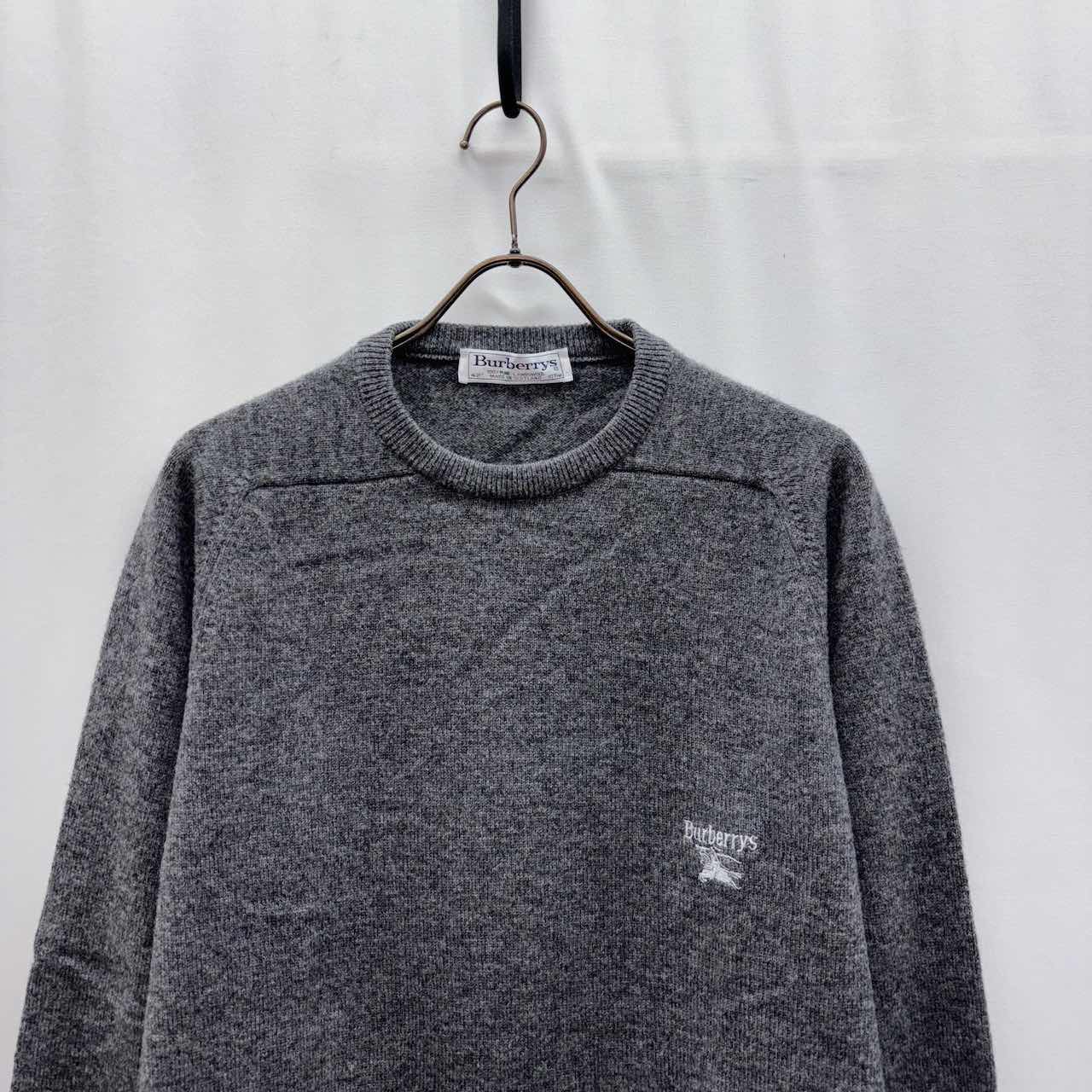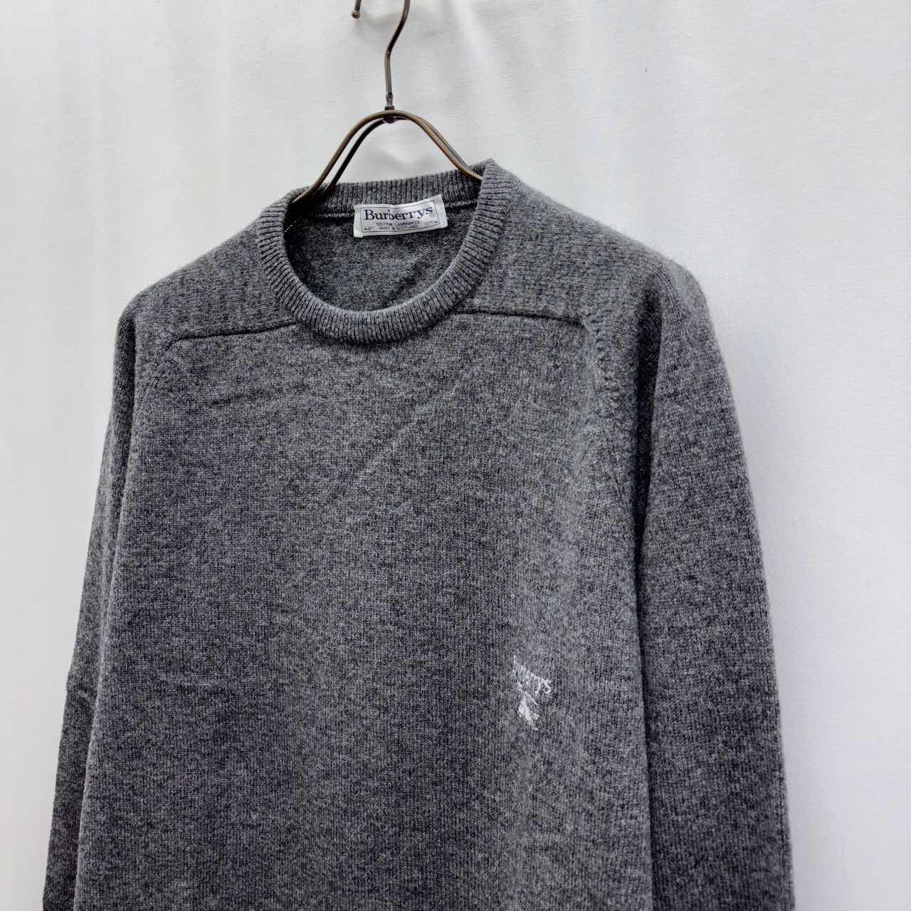 90s Burberrys knit バーバリー ニット/セーター ワンポイント グレー 丸首 クルーネック