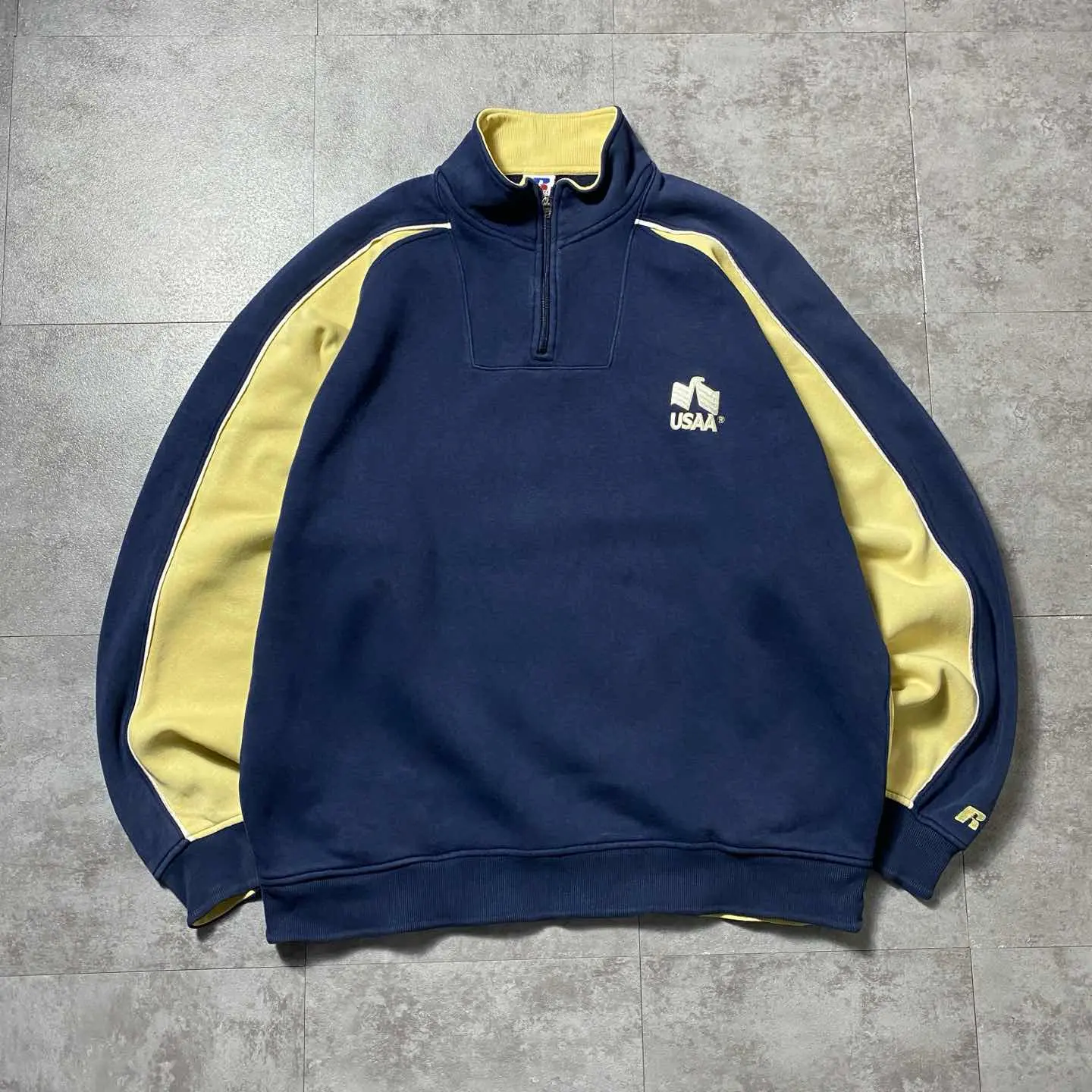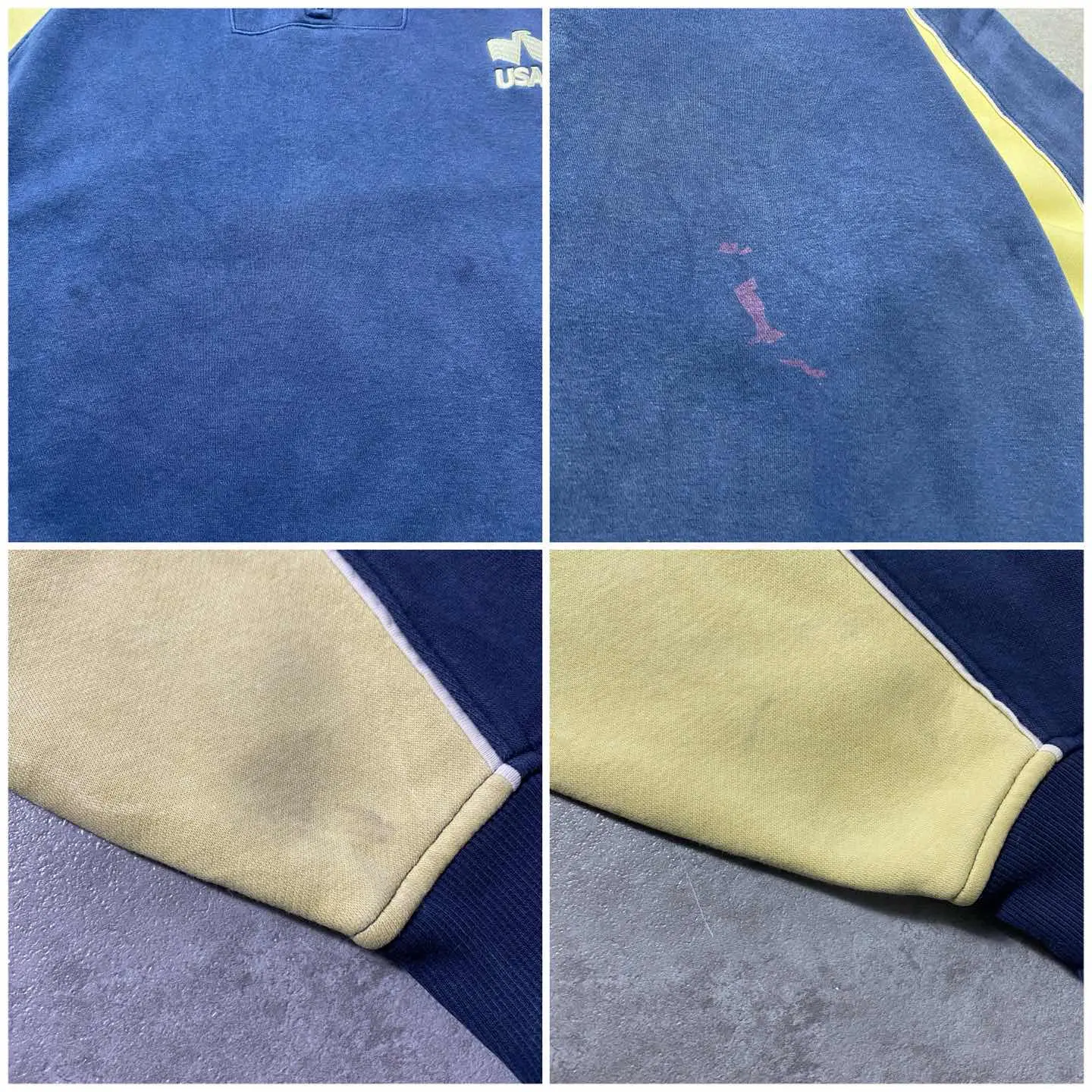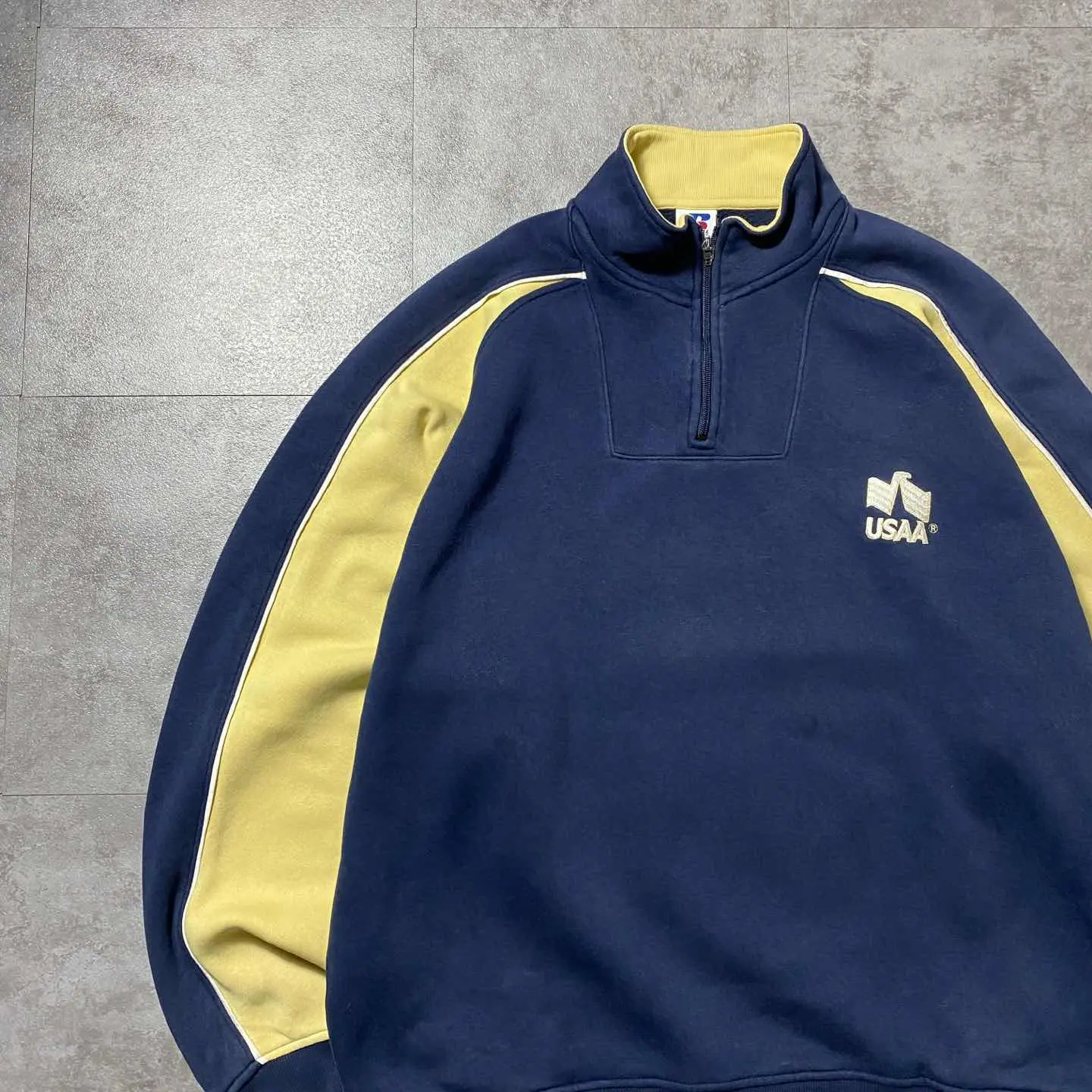 ○Size○ 表記→XL ・着丈72 ・身幅68 ・袖丈81(ラグランスリーブ) (cm) ○Color○ ・ネイビー、ベージュ ○Material○ ・65%コットン 35%ポリエステル ○Condition○ ・フロント腹部2箇所に薄シミあり ・両袖先に薄汚れあり ・背面一部赤い汚れ箇所あり ○Caution○ 当店で取り扱っている商材は全て『古着』となっております。 そのため、多少の状態難(ほつれ、傷、汚れ、リブの伸び、使用感、擦れ、色あせ、etc)がある場合がございます。 新品同様の完璧なお品物をお求めの方は当店でのお買い物を控えて頂きますよう宜しくお願いします。 また、購入された商品に関しましては、購入日時から起算して『72時間以内に』発送手続きの方を取らせて頂きます。 お急ぎの場合は購入前に当店オンラインストアの方にお問い合わせ頂きますよう宜しくお願いします。 25/1608