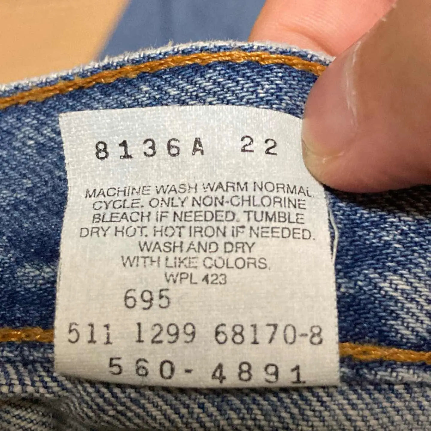 USA製 リーバイス510 W33L34 裏501 ライトブルー デニム ジーンズ 紙パッチ