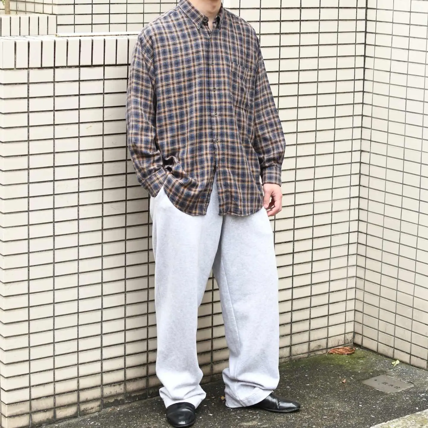 SIZE:L ウエスト~114cm(ドローコード付き) 総丈113cm 股下83cm わたり43cm 裾幅26.5cm fabric/cotton・poly 着用画像 177cm/64kg 霜降りグレーのスウェット生地と、 裾まで太さを残したワイドシルエット。 パンツは特にシルエットに拘って 持ち帰ることが多いですが、中でもサイズ感から シルエットまで、非の打ちどころの無い一本でした。 長めのレングスはロールアップしたり、 足元に溜めたり、好みでどうぞ。 コーデの”抜け”担当として活躍する一本です。 ※裾上げ等のレングス直しにつきましては、 裾上げ方法によっては、別途料金が 発生する場合がございます。 購入前に、必ずご連絡お願い致します。 また、購入後の直しには対応出来かねます。 ※撮影状況により、実物と多少色が異なる 場合がございます。 ※古着を取り扱っているため、気づかない汚れや ほつれがある場合がございます。 予めご了承ください。 ※サイズは着用感で選んでおり、 表記サイズではございません。 表記サイズは説明欄の最初に記載しております。 古着 オーバーサイズ old vintage ヴィンテージ used 80's 90's アメリカ古着 ユーロ古着 POLO RALPH LAUREN Eddie Bauer OLD GAP LANDS' END ランズエンド LLBean エルエルビーン オールドギャップ エディーバウアー ラルフローレン ブルックスブラザーズ Brooks Brothers ナイキ などがお好きな方 #vintage #オーバーサイズ #old #used #90s #80s #古着 #ヴィンテージ #アメリカ古着 #ユーロ古着 #LLBean #エルエルビーン #EddieBauer #エディーバウアー #oldgap #オールドギャップ #LANDSEND #ランズエンド #NAUTICA #ノーティカ #ラルフローレン #POLORALPHLAUREN #ブルックスブラザーズ #BrooksBrothers #NIKE #ナイキ #イージーパンツ #スウェットパンツ #ワイドパンツ