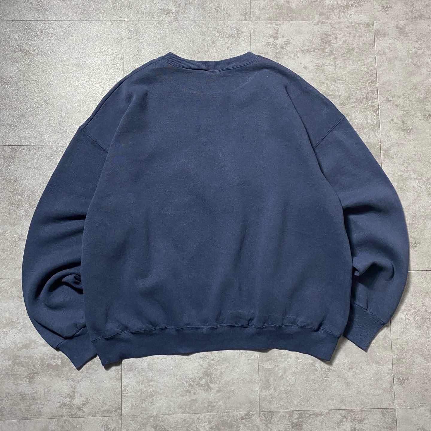 【XL】90's Michigan ミシガン 刺繍カレッジロゴ ラインリブ ネイビー スウェット