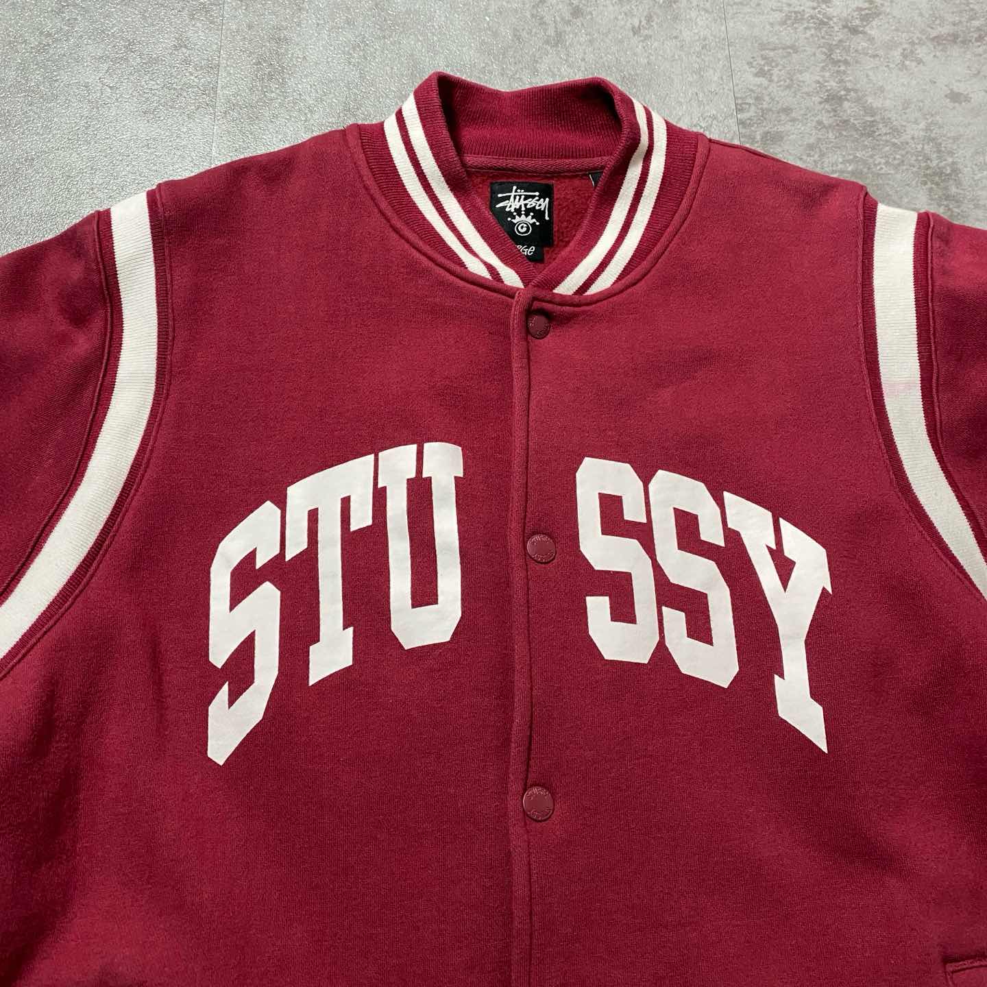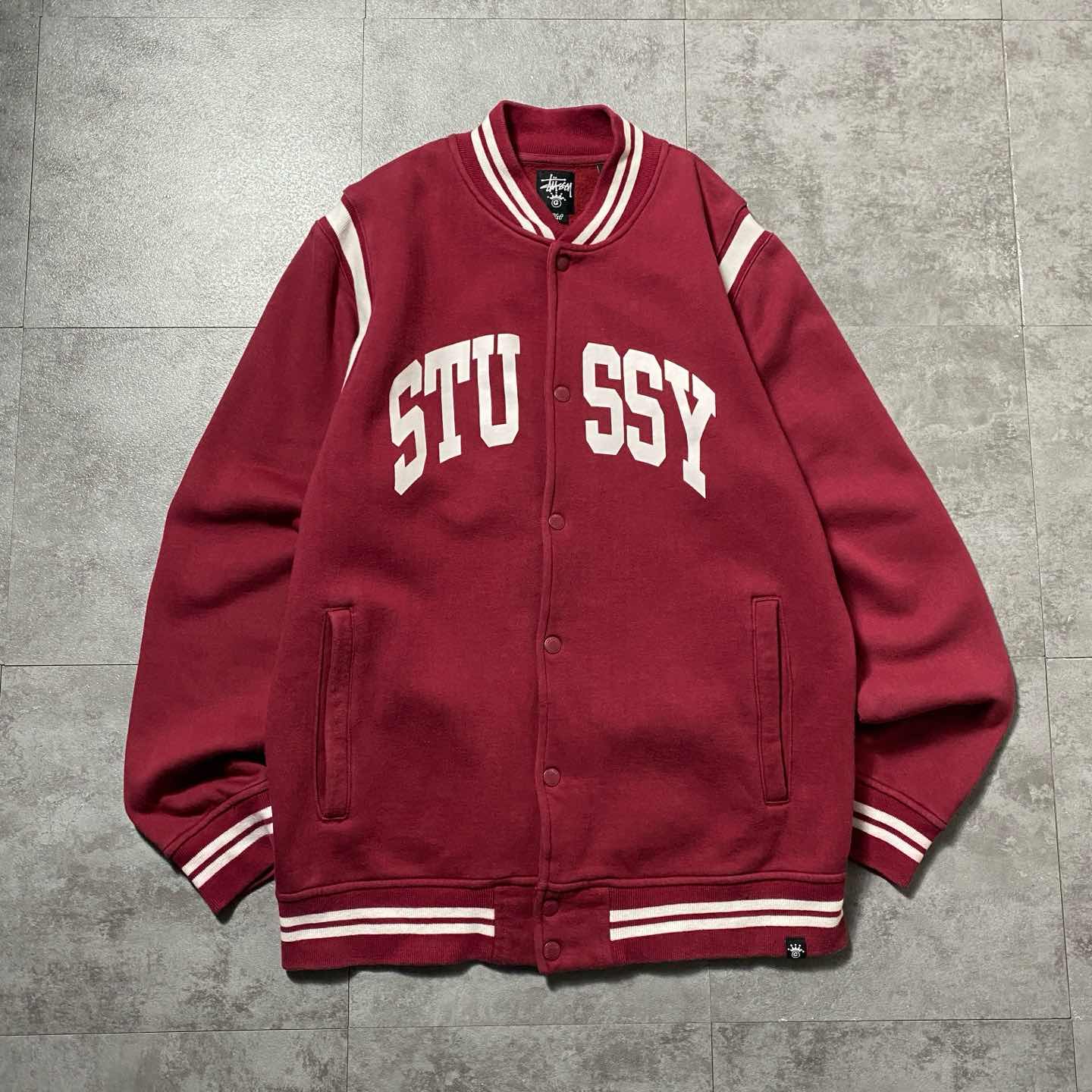 stussy アーチロゴ ラインリブ スナップボタン スウェット生地 スタジャン