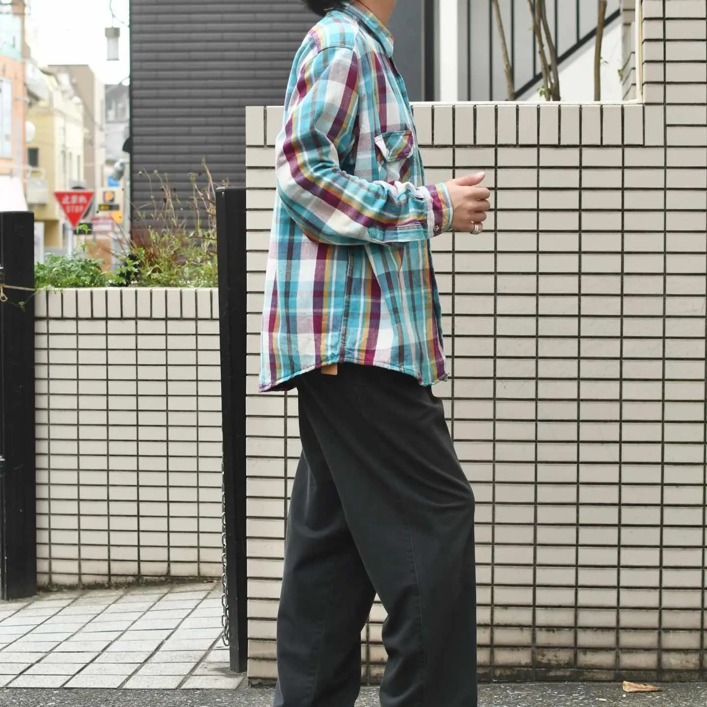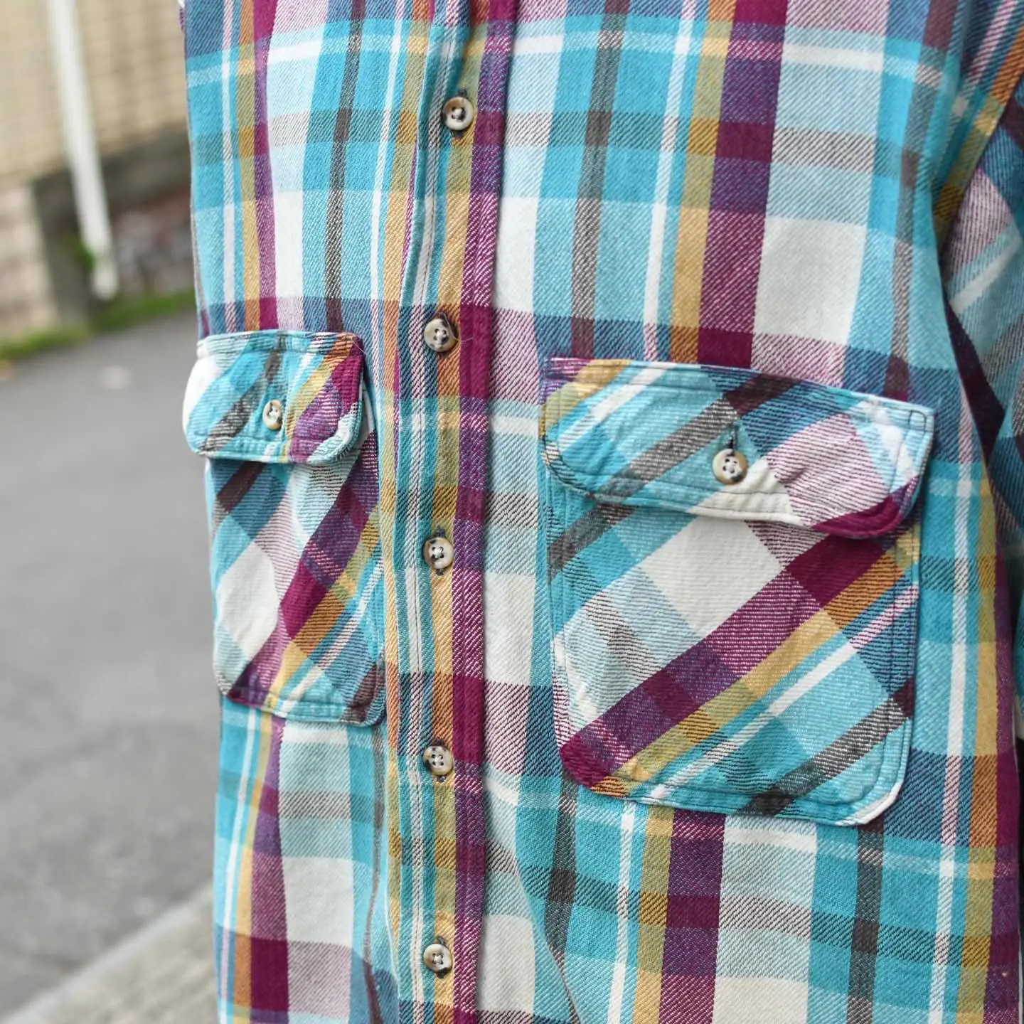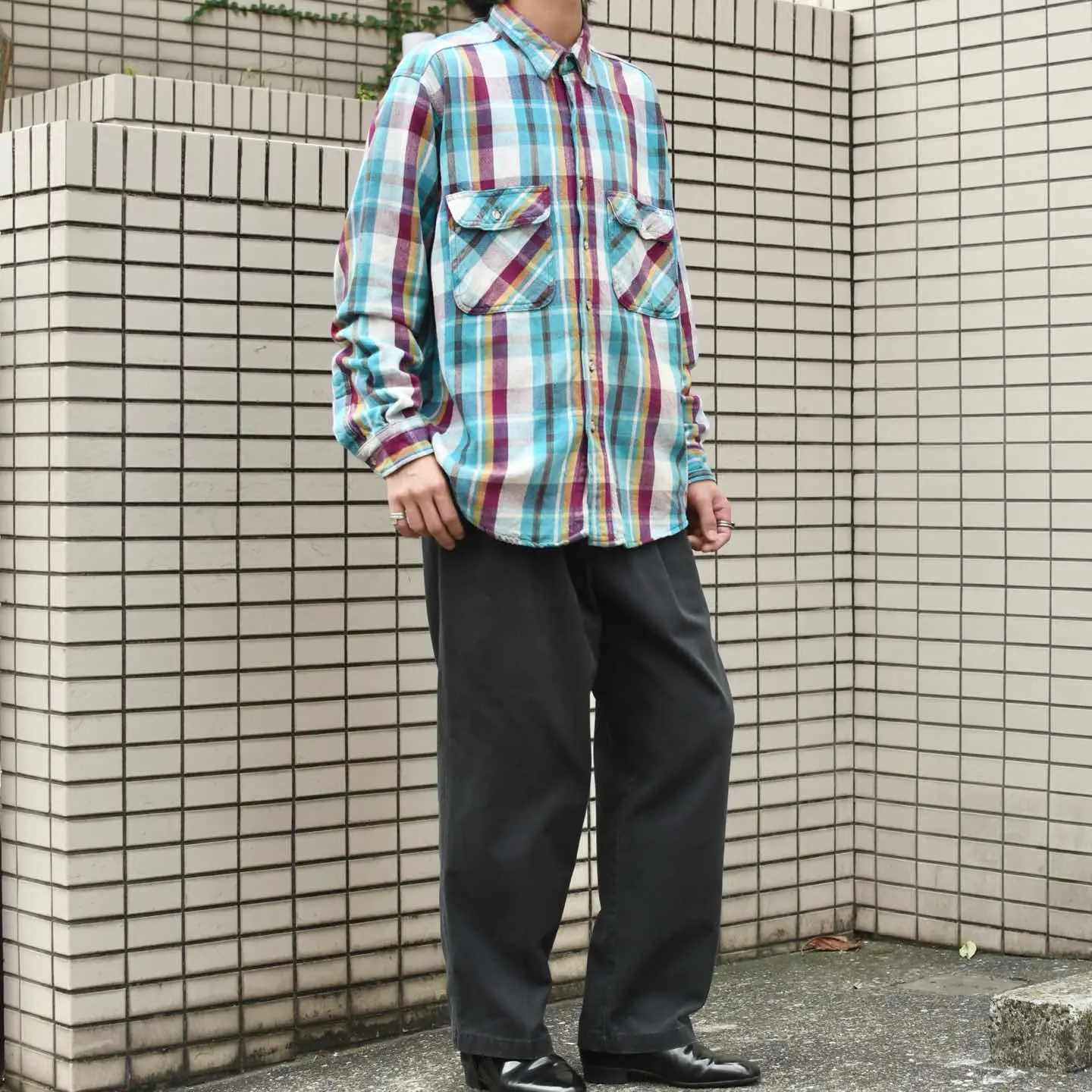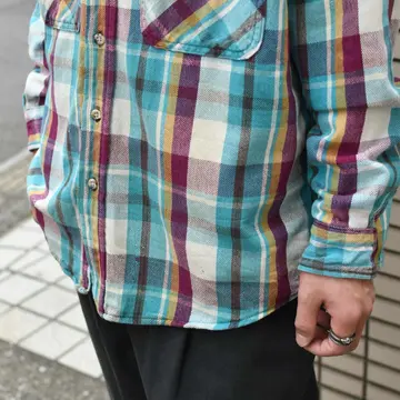 SIZE:L 着丈76cm 肩幅51cm 身幅65.5cm 袖丈65cm fabric/cotton 着用画像 173cm/56kg 独特な色使いと使い込まれたからこその くたっとした生地。 個人的には、多くの人が求める色使いよりか、 こんな一部の人に深く刺さる色使いに惹かれます。 アメカジっぽくも、定番ではない。 そんなスタイリングが組める1着ですし、 コーデュロイパンツなんかと合わせるのも良いなと。 だらしなさの無い程良いボロ、おすすめです。 ※撮影状況により、実物と多少色が異なる場合が ございます。 ※古着を取り扱っているため、気づかない汚れや ほつれ等がある場合がございます。 予めご了承ください。 ※サイズは着用感で選んでおり、 表記サイズではございません。 表記サイズは説明欄の最初に記載しております。 古着 オーバーサイズ old vintage ヴィンテージ used 80's 90's アメリカ古着 ユーロ古着 POLO RALPH LAUREN Eddie Bauer OLD GAP LANDS' END ランズエンド LLBean エルエルビーン オールドギャップ エディーバウアー ラルフローレン ブルックスブラザーズ Brooks Brothers ライトブルー ブルー 水色 シャツ フランネルシャツ などがお好きな方 #vintage #オーバーサイズ #old #used #90s #80s #古着 #ヴィンテージ #アメリカ古着 #ユーロ古着 #LLBean #エルエルビーン #EddieBauer #エディーバウアー #oldgap #オールドギャップ #LANDSEND #ランズエンド #NAUTICA #ノーティカ #ラルフローレン #POLORALPHLAUREN #ブルックスブラザーズ #BrooksBrothers #フランネルシャツ #ネルシャツ #チェックシャツ #長袖シャツ #シャツ #ボロ