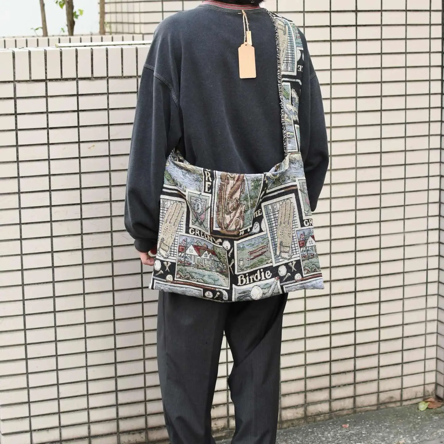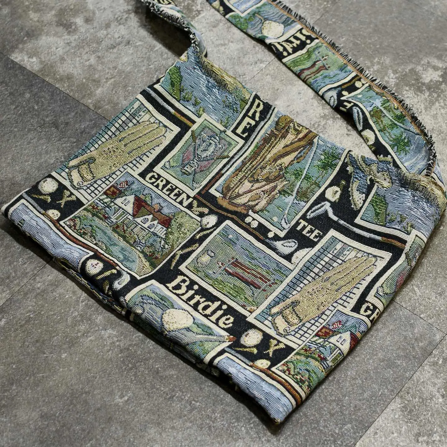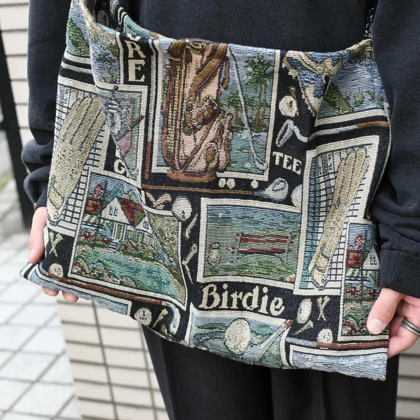 サイズ 縦38cm 横49cm ベルト100cm ベルト幅8cm 着用画像 177cm/64kg ゴルフに関連した道具や言葉が敷き詰められた 大判ラグを解体して製作した、オリジナルの ショルダーバッグ。 コーデの一部として取り入れるのはもちろん、 ロングコートなど、キレイめなアイテムと合わせて たまにはバッグを主役にした、 シンプルなコーデもどうでしょう。 ※撮影状況により、実物と多少色が異なる場合が ございます。 ※古着を取り扱っているため、気付かない汚れ等がある場合がございます。 予めご了承ください ※サイズは着用感で選んでおり、 表記サイズではございません。 表記サイズは説明欄の最初に記載しております。 古着 オーバーサイズ old vintage ヴィンテージ used 80's 90's アメリカ古着 ユーロ古着 POLO RALPH LAUREN Eddie Bauer OLD GAP LANDS' END ランズエンド LLBean エルエルビーン オールドギャップ エディーバウアー ラルフローレン ブルックスブラザーズ Brooks Brothers ハンドメイド リメイク古着 肩掛け 斜めがけ などがお好きな方 #vintage #オーバーサイズ #old #used #90s #80s #古着 #ヴィンテージ #アメリカ古着 #ユーロ古着 #LLBean #エルエルビーン #EddieBauer #エディーバウアー #oldgap #オールドギャップ #LANDSEND #ランズエンド #NAUTICA #ノーティカ #ラルフローレン #POLORALPHLAUREN #ブルックスブラザーズ #BrooksBrothers #ショルダーバッグ #バッグ #斜め掛け #リメイク #リメイク古着 #ラグ #ハンドメイド