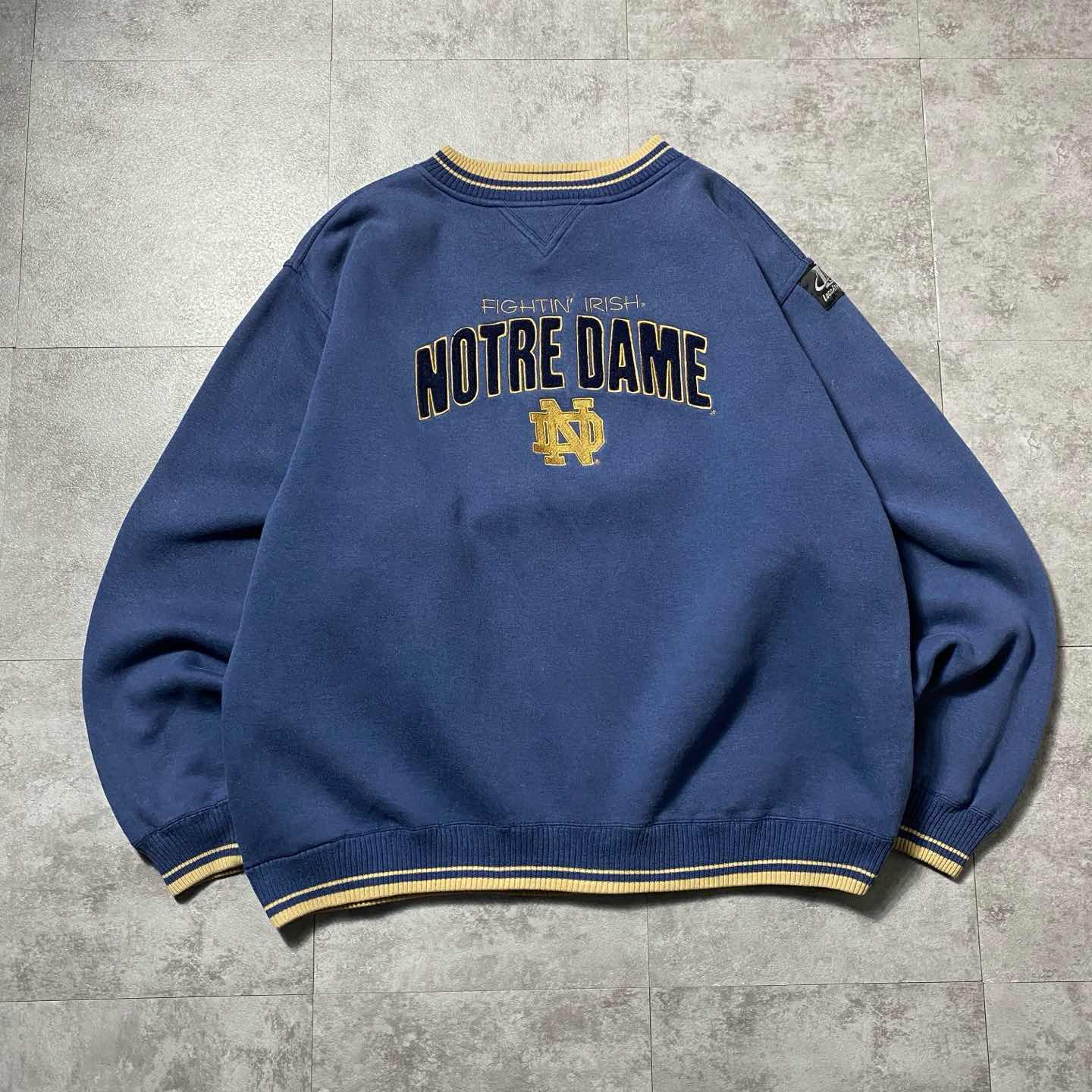 【XL】90's LOGO ATHLETIC ノートルダム大学カレッジロゴ ラインリブ スウェット