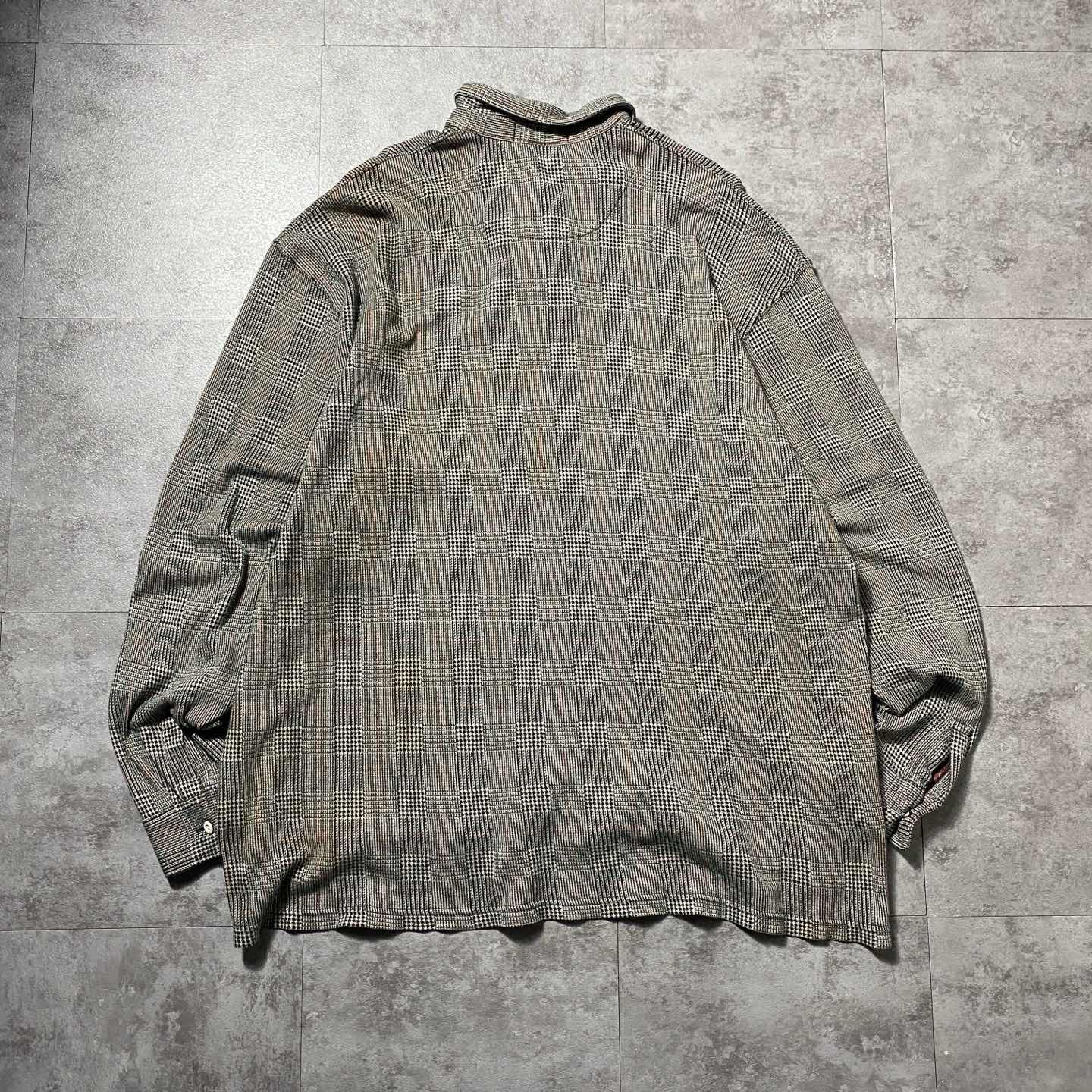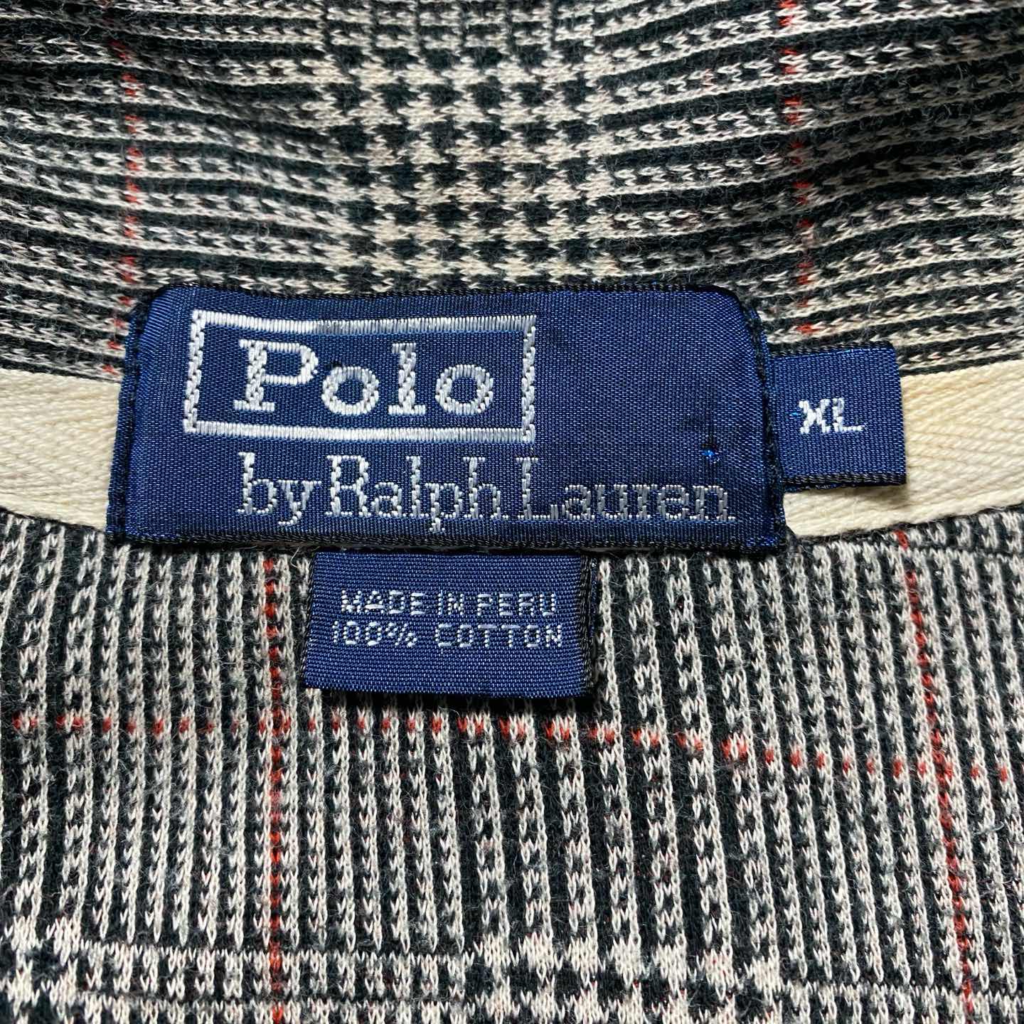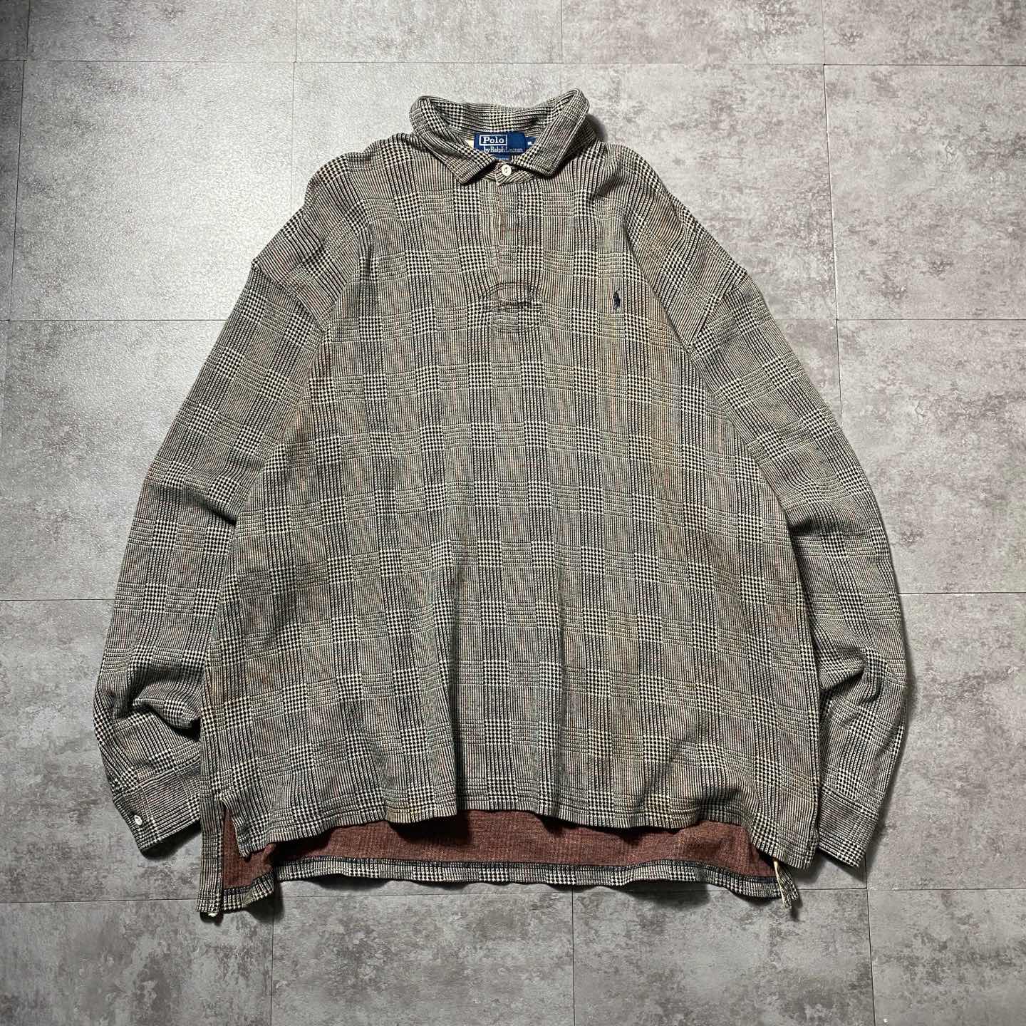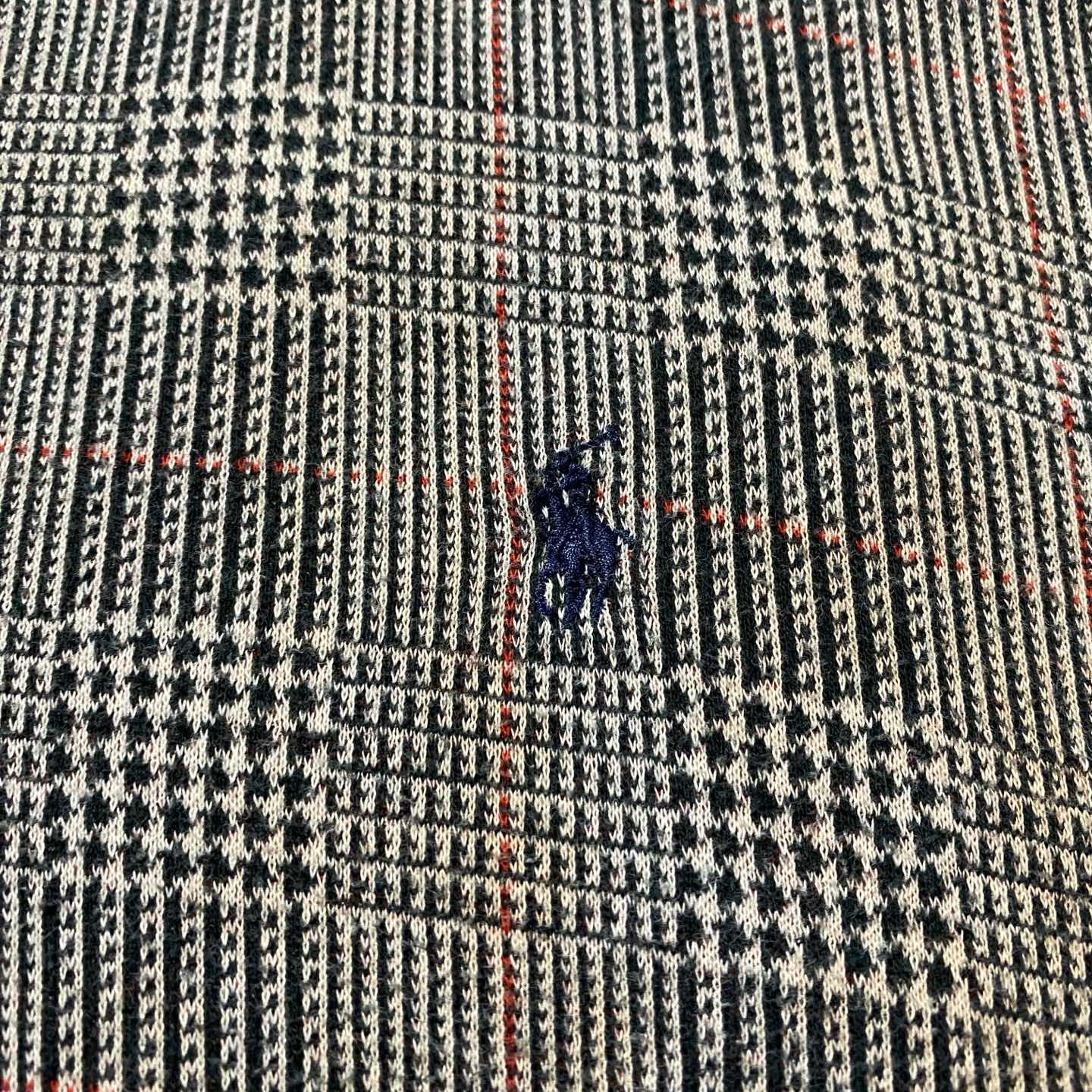 【Size.XL】ポロバイラルフローレン 刺繍ロゴ 千鳥格子柄 長袖 ポロシャツ