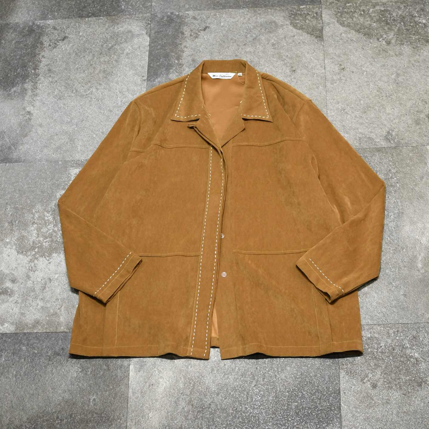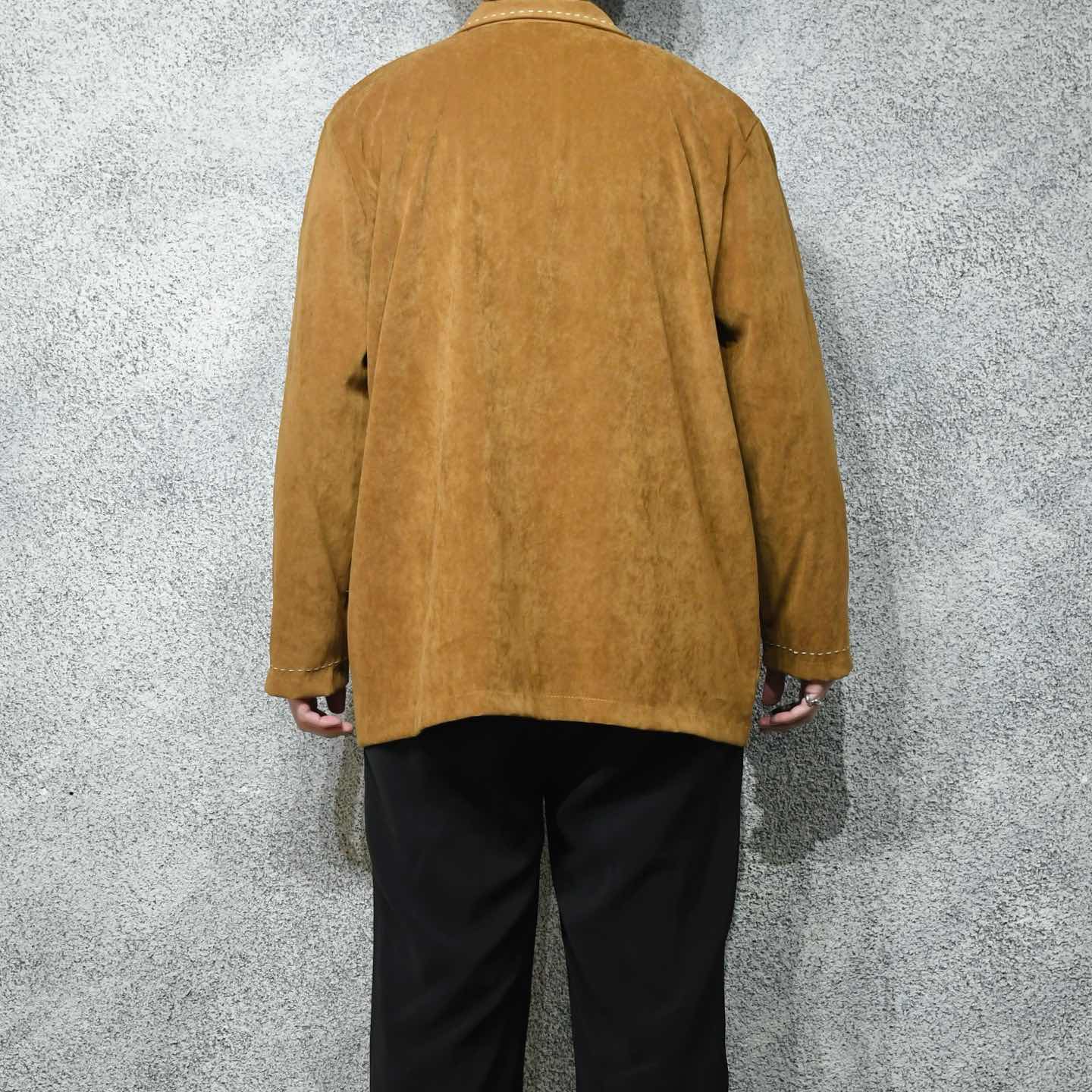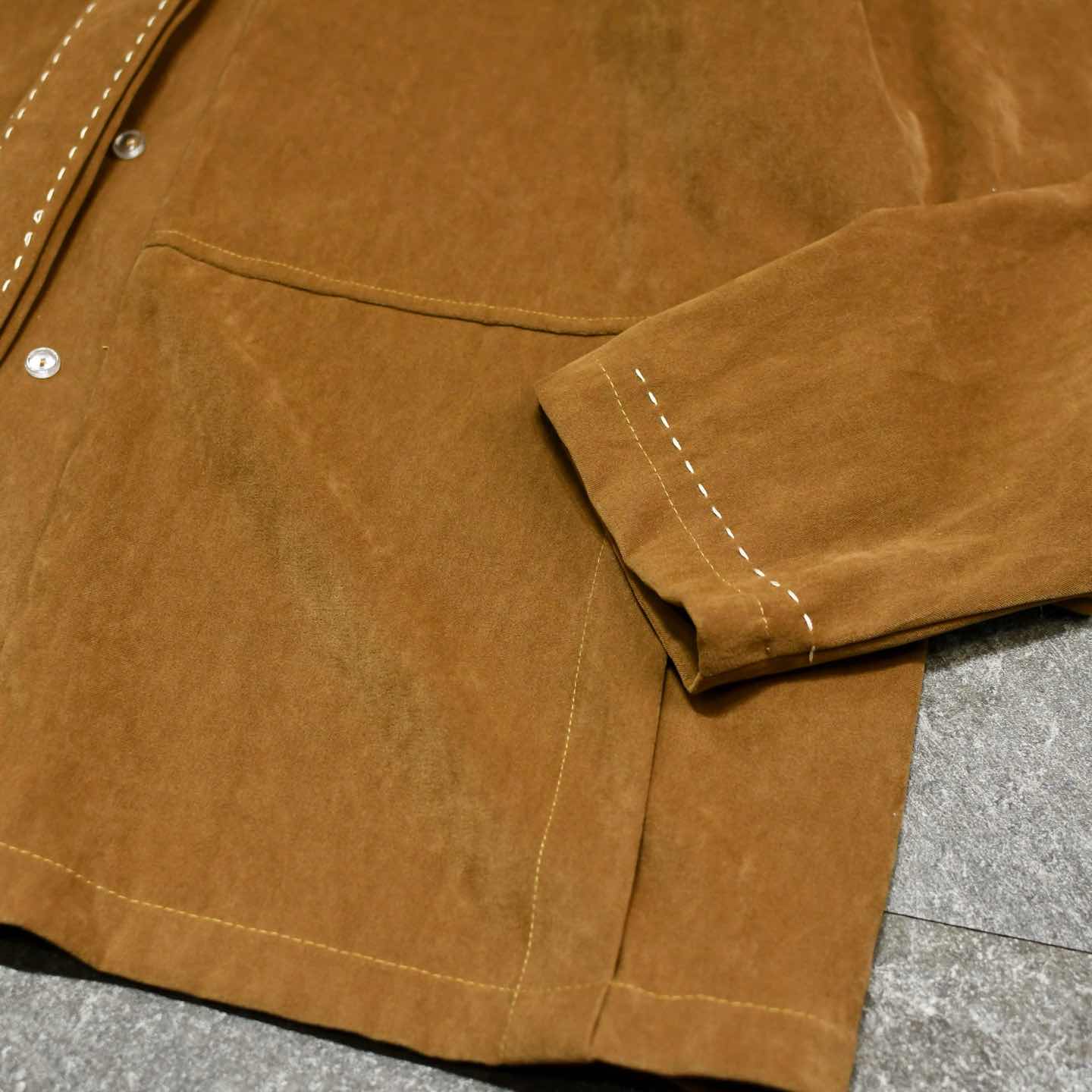古着 ハンドステッチ フェイクスウェード シャツジャケット 羽織り ブラウン