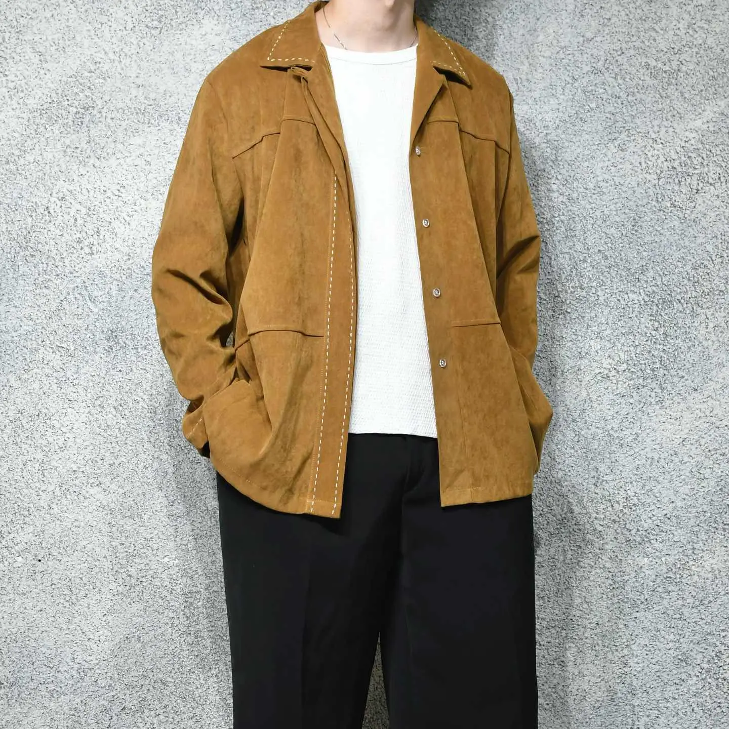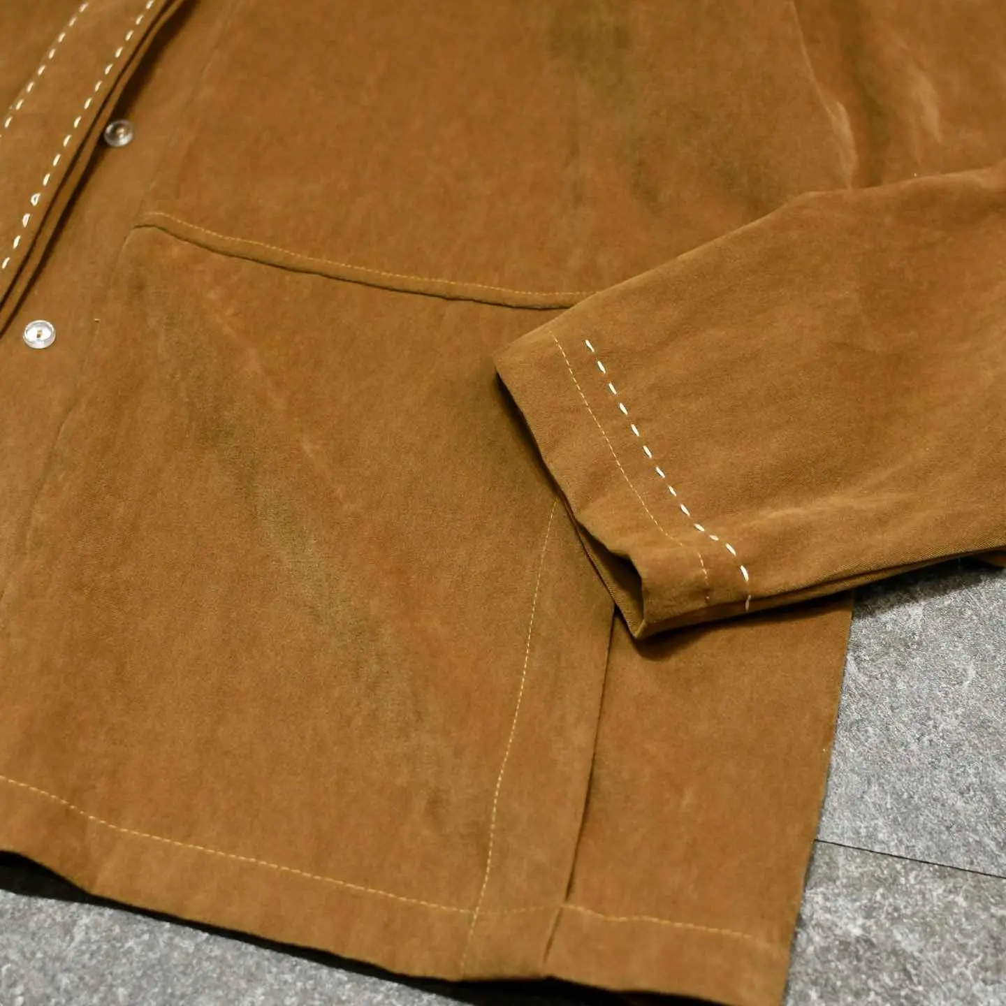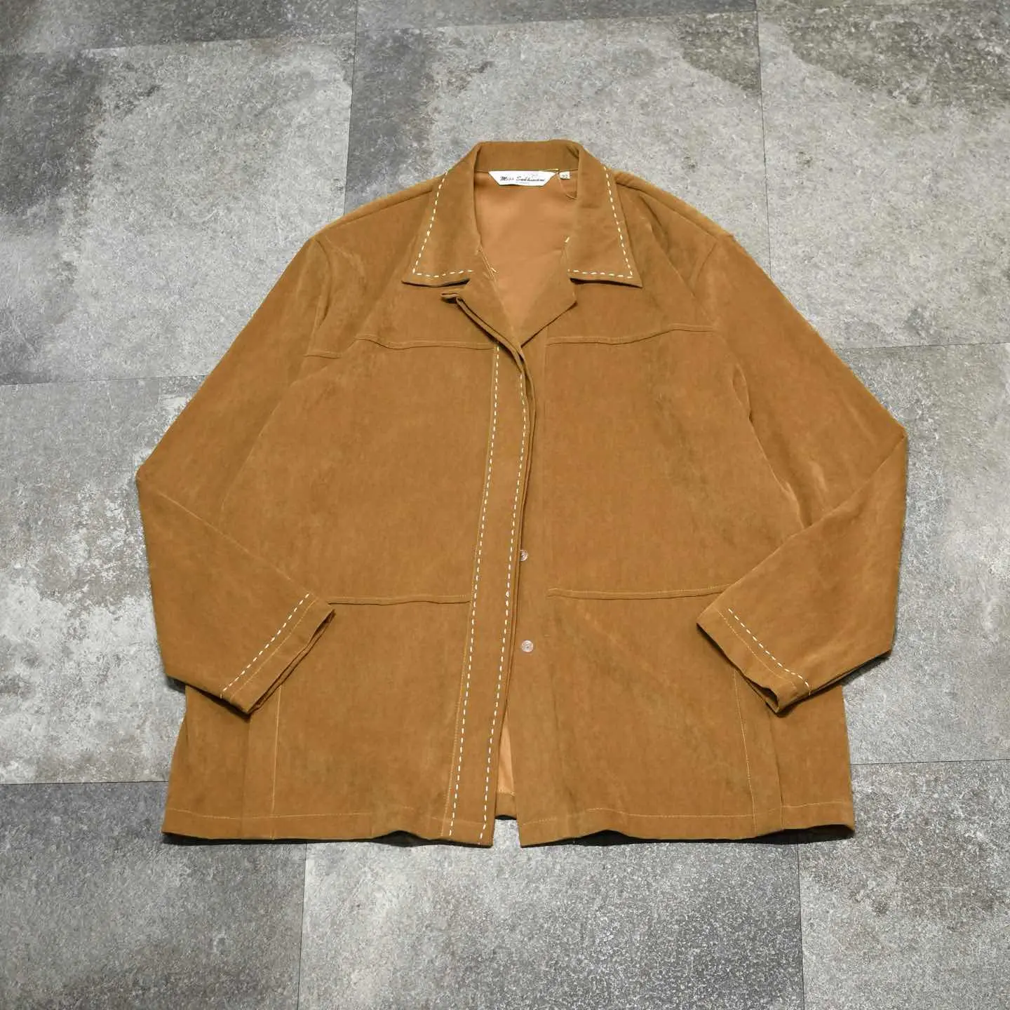 SIZE:22 着丈74.5cm 肩幅54cm 身幅72cm 袖丈61cm fabric/poly 着用画像 177cm/64kg しっとりとしたフェイクスウェード生地 特有の肌触りの良さと、襟や前立て、 袖にはステッチが施された1着。 シャツジャケットの様な立ち位置で活躍する アイテムで、シャツや羽織りとしてはもちろん コートなどのヘビーアウターの中から 顔を覗かせたら可愛いなと。 手元にたくさんは必要無いけれど、レイヤードとして コーデに奥行きを生んでくれるアイテムです。 ※撮影状況により、実物と多少色が異なる場合が ございます。 ※古着を取り扱っているため、気づかない汚れや ほつれ等がある場合がございます。 予めご了承ください。 ※サイズは着用感で選んでおり、 表記サイズではございません。 表記サイズは説明欄の最初に記載しております。 古着 オーバーサイズ old vintage ヴィンテージ used 80's 90's アメリカ古着 ユーロ古着 POLO RALPH LAUREN Eddie Bauer OLD GAP LANDS' END ランズエンド LLBean エルエルビーン オールドギャップ エディーバウアー ラルフローレン ブルックスブラザーズ Brooks Brothers 茶色 オープンカラー ジャケット 長袖シャツ シャツ デザインシャツ などがお好きな方 #vintage #オーバーサイズ #old #used #90s #80s #古着 #ヴィンテージ #LLBean #エルエルビーン #EddieBauer #エディーバウアー #oldgap #LANDSEND #NAUTICA #ノーティカ #ラルフローレン #POLORALPHLAUREN #ブルックスブラザーズ #BrooksBrothers #シャツジャケット #ジャケット #オープンカラーシャツ #デザインシャツ #フェイクスウェードシャツ