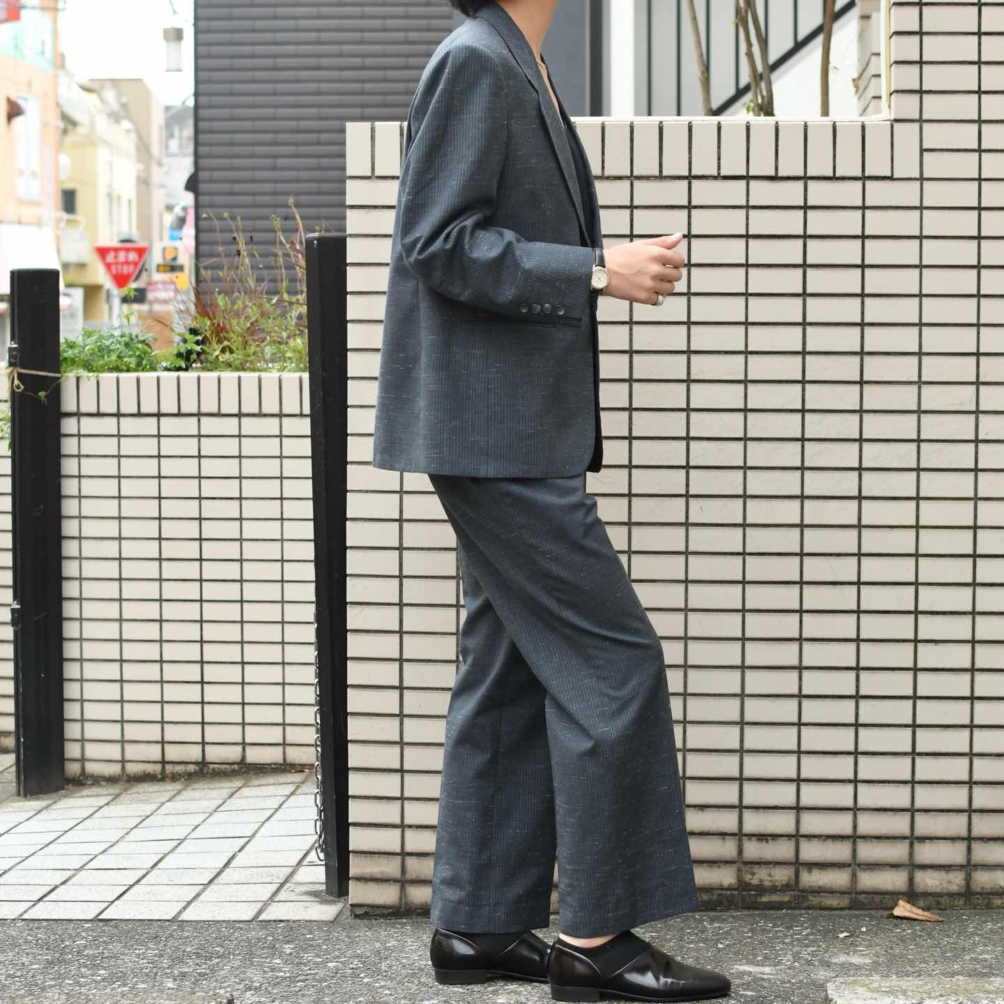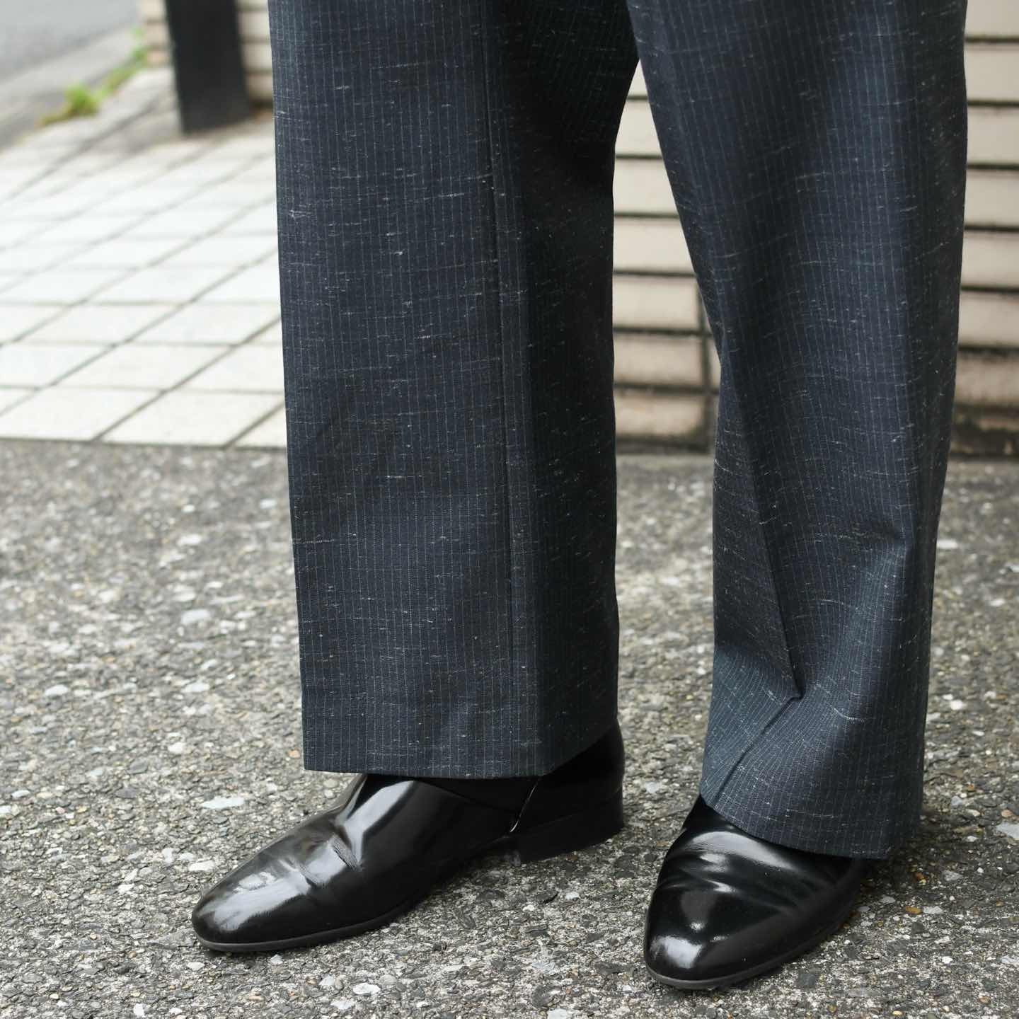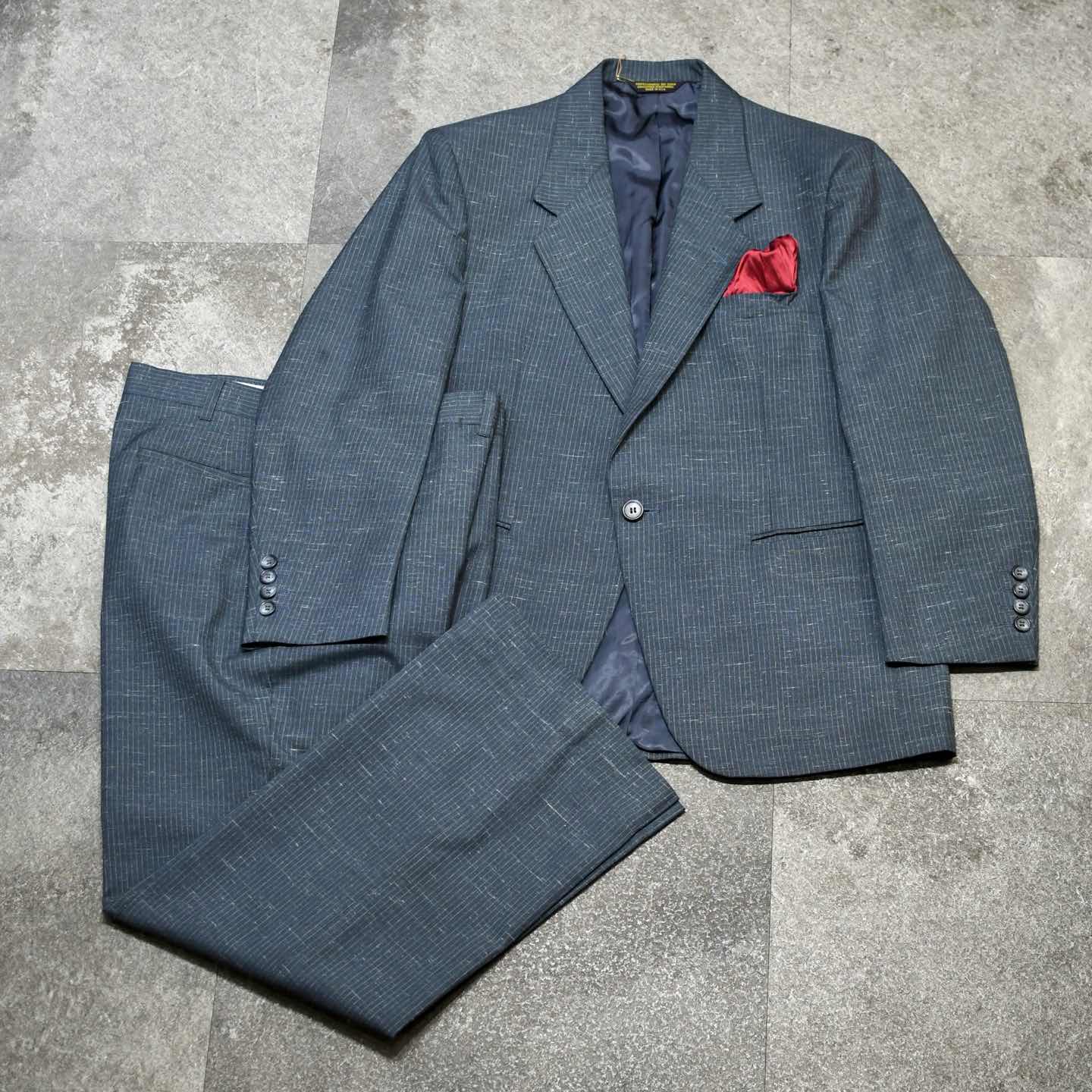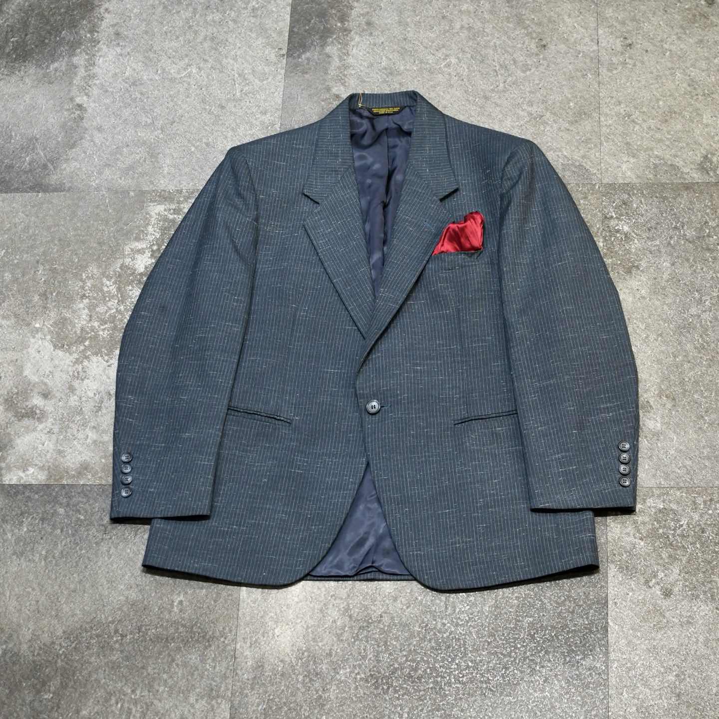 SIZE:- 着丈72cm 肩幅44cm 身幅53cm 袖丈56cm ウエスト84cm 総丈96.5cm 股下70.5cm わたり34.5cm 裾幅25cm fabric/質感よりwool made in USA 着用画像 173cm/56kg 70年代頃にアメリカで仕立てられた個体。 深いネイビー色にピンストライプ、 さらに絣まで施され、品のある雰囲気を 纏うことが出来る逸品です。 ジャケットの胸ポケット内の袋のみワインレッド。 パンツはフレアがかった綺麗なシルエット。 上下ともに個性を兼ね備え、それでいて 纏まりのある頼れるセットアップです。 結婚式や成人式など、特別な日にどうでしょう。 ※裾上げ等のレングス直しにつきましては、 購入前に、必ずご連絡お願い致します。 また、購入後の直しには対応出来かねます。 ※撮影状況により、実物と多少色が異なる 場合がございます。 ※古着を取り扱っているため、気づかない汚れや ほつれがある場合がございます。 ※サイズは着用感で選んでおり、 表記サイズは説明欄の最初に記載しております。 古着 old vintage ヴィンテージ used 80's 90's POLO RALPH LAUREN Eddie Bauer OLD GAP LANDS' END ランズエンド LLBean エルエルビーン オールドギャップ エディーバウアー ラルフローレン ブルックスブラザーズ Brooks Brothers ネイビー setup などがお好きな方 #vintage #old #used #90s #80s #古着 #ヴィンテージ #LLBean #EddieBauer #エディーバウアー #oldgap #LANDSEND #ランズエンド #NAUTICA #ラルフローレン #POLORALPHLAUREN #ブルックスブラザーズ #BrooksBrothers #セットアップ #スーツ #70s