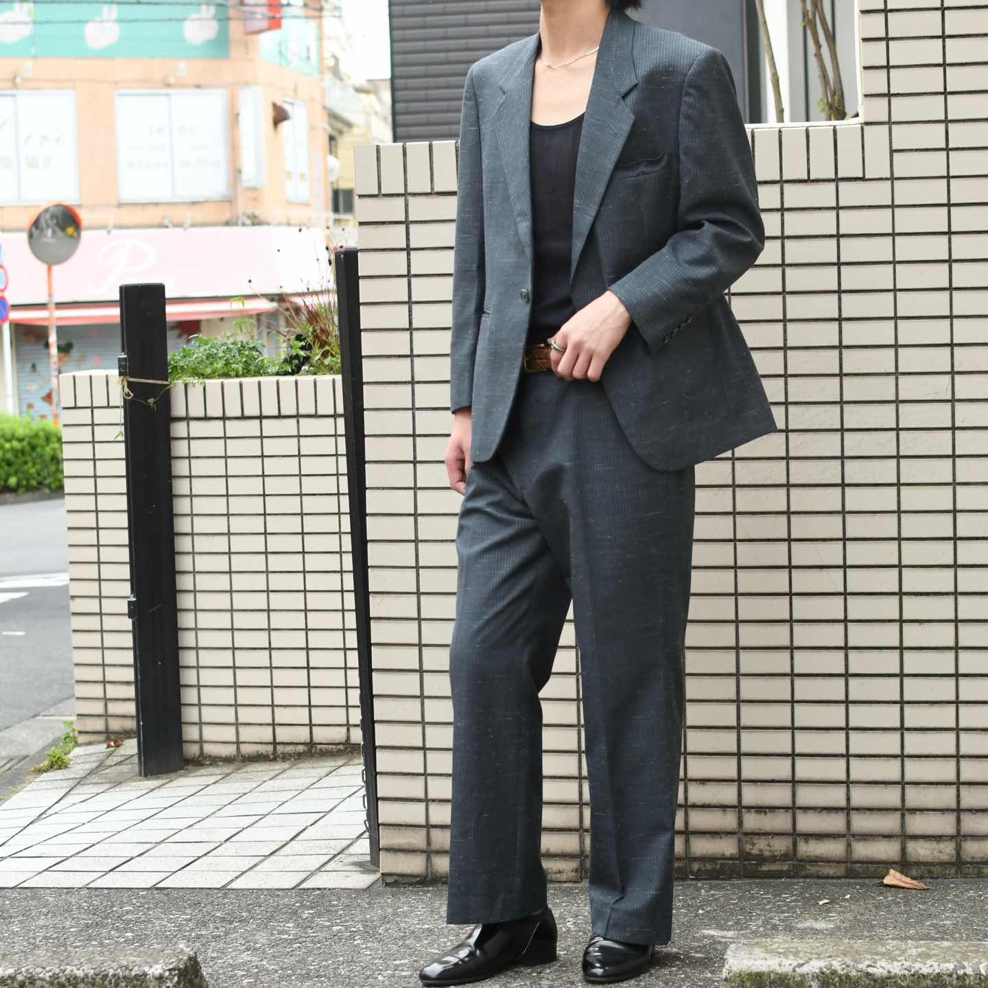 古着 USA製 70's 絣 ネップ セットアップ スーツ テーラードジャケット