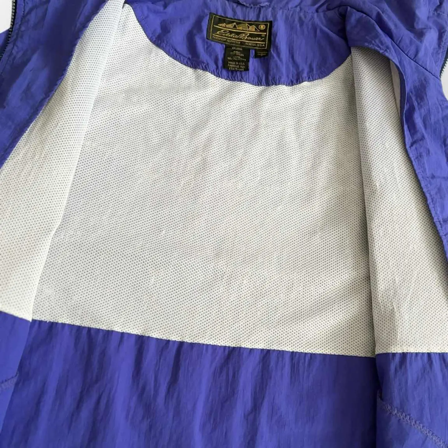 ○商品説明 80s USA製 EddieBauer 80年代のエディバウワーナイロンジャケット。 鮮やかで目を引くビビッドなパープル 撥水性・防風性のある軽量なナイロン素材で 裏地はポリエステル素材を使用しております。 お探しの方は是非。 ○サイズ 表記L 平置き ・肩幅50cm ・身幅60cm ・袖丈57cm ・着丈72cm ○商品の状態B A:使用感がほとんどなく、汚れやシミもなし B:多少使用感はあるが、汚れやシミも少ない C:使用感があり、汚れやシミがある D:使用感があり、大きな汚れや破れあり ○色 ブルーパープル #80s#EddieBauer#エディバウワー#ナイロンジャケット