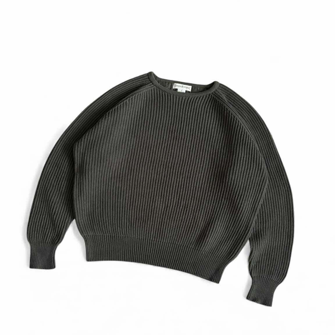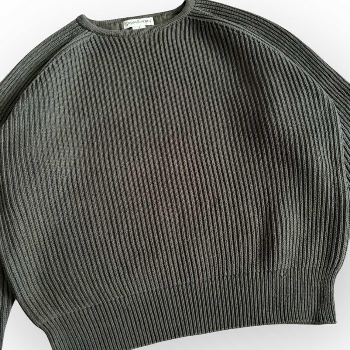○商品説明 90s BANANA REPUBLIC 90年代のバナリパのコッコンニット。 肉厚でしっかりとした太めのリブ編みが特徴の一枚。 両肘部分に、ボディと同系色の布製エルボーパッチ が付いています。 クラシックなミリタリーやハンティングウェア のようなタフな印象がありますね。 カラーもオリーブグリーンで何にでも合う 使い勝手の良いバナリパとなっております。 身幅たっぷりめの着丈短めボックスシルエット になります。 ビビッときた方は是非。 ○サイズ 表記M(L相当) 平置き ・身幅63cm ・袖丈77cm ・着丈61cm ○商品の状態A A:使用感がほとんどなく、汚れやシミもなし B:多少使用感はあるが、汚れやシミも少ない C:使用感があり、汚れやシミがある D:使用感があり、大きな汚れや破れあり ○色 オリーブグリーン #90s#bananarepublic #バナナリパブリック#コットンニット