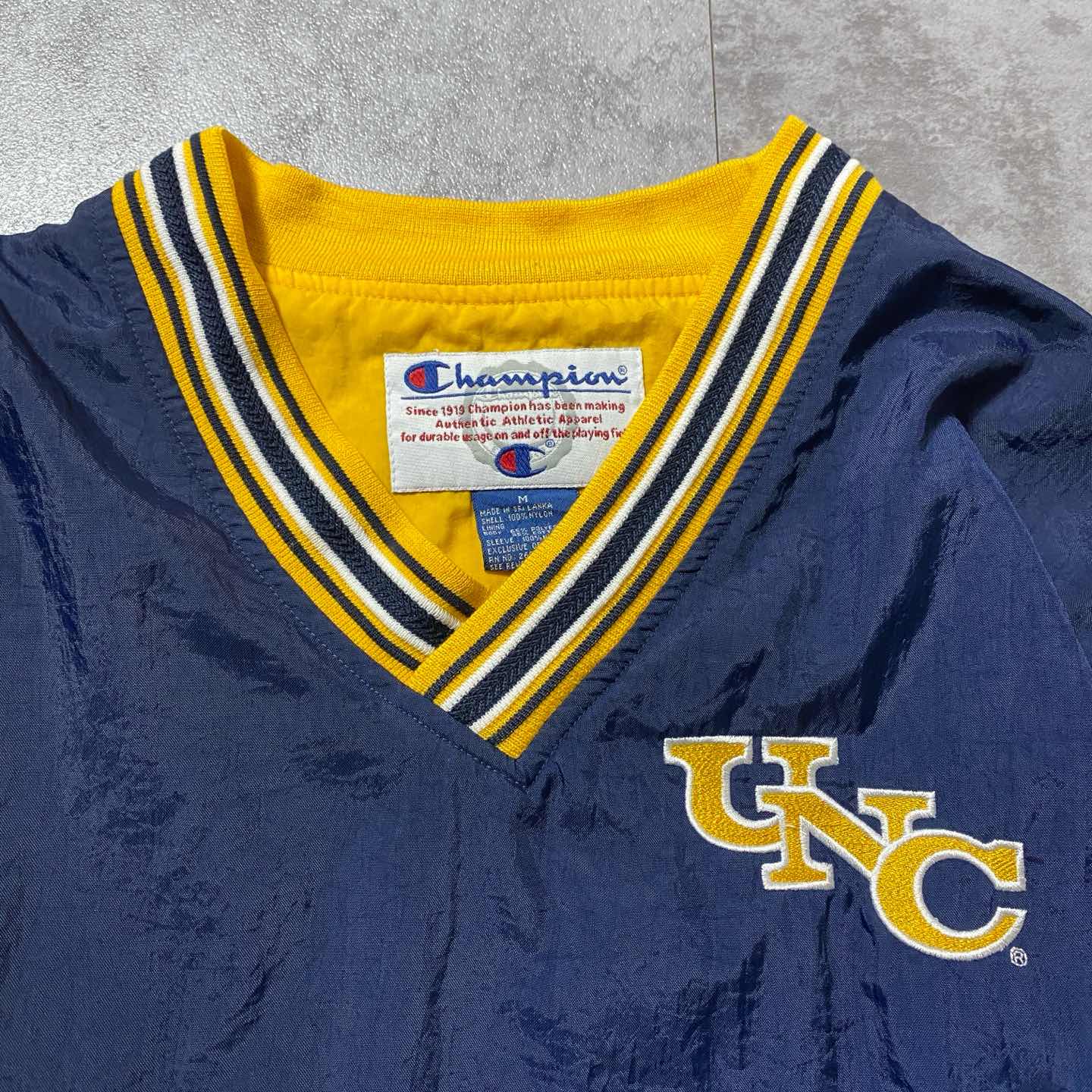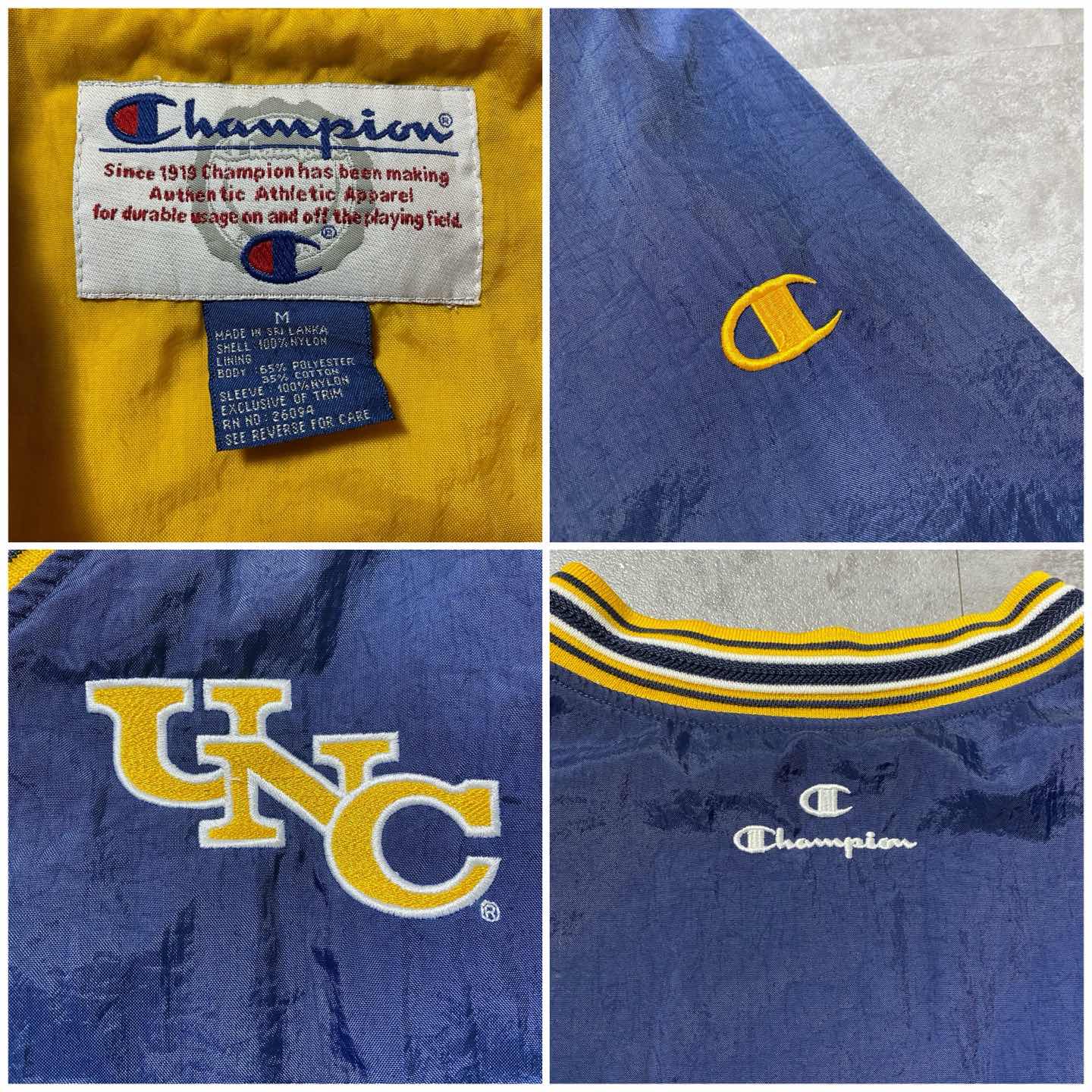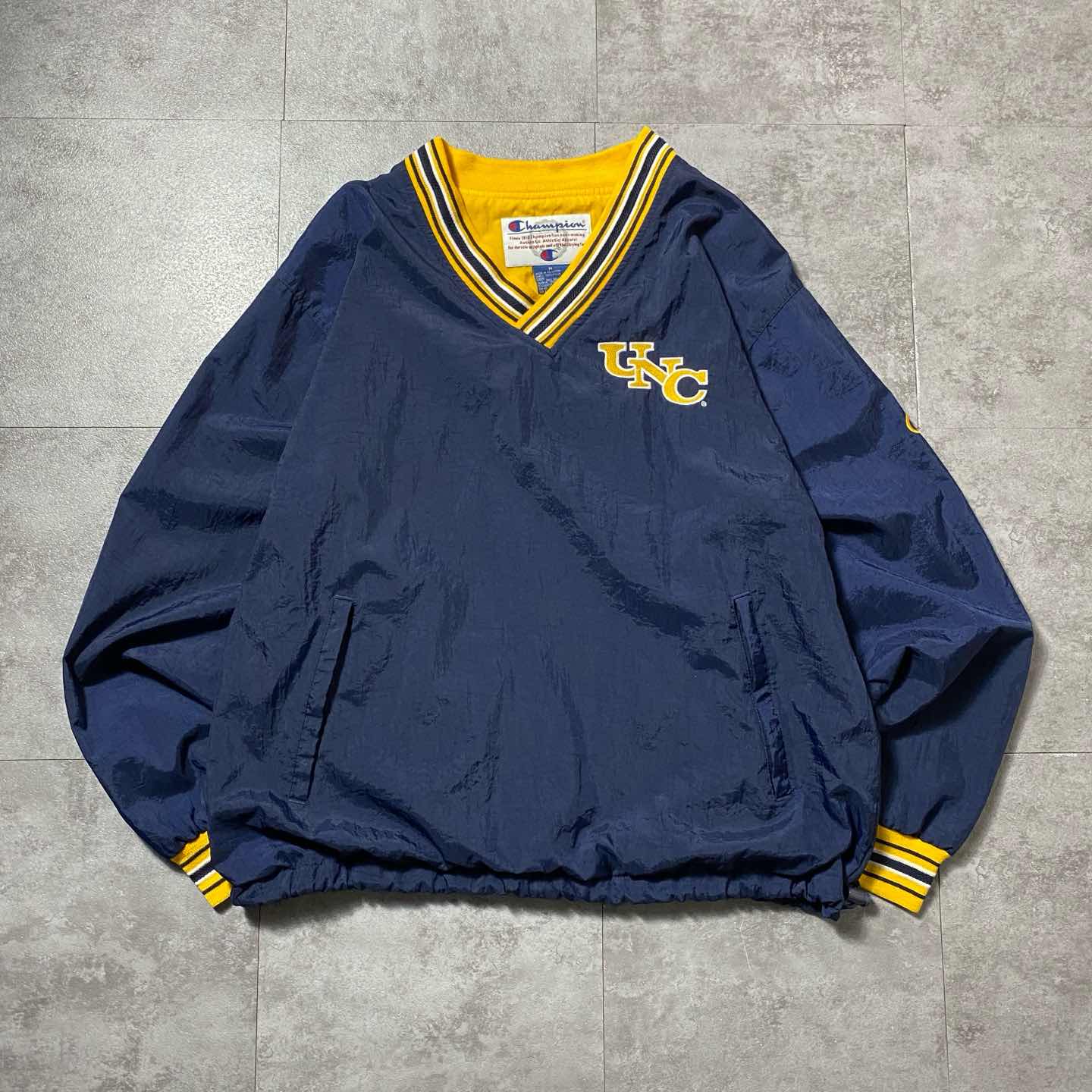 90s チャンピオン 刺繍ワンポイント企業ロゴ ラインリブ ナイロンプルオーバー