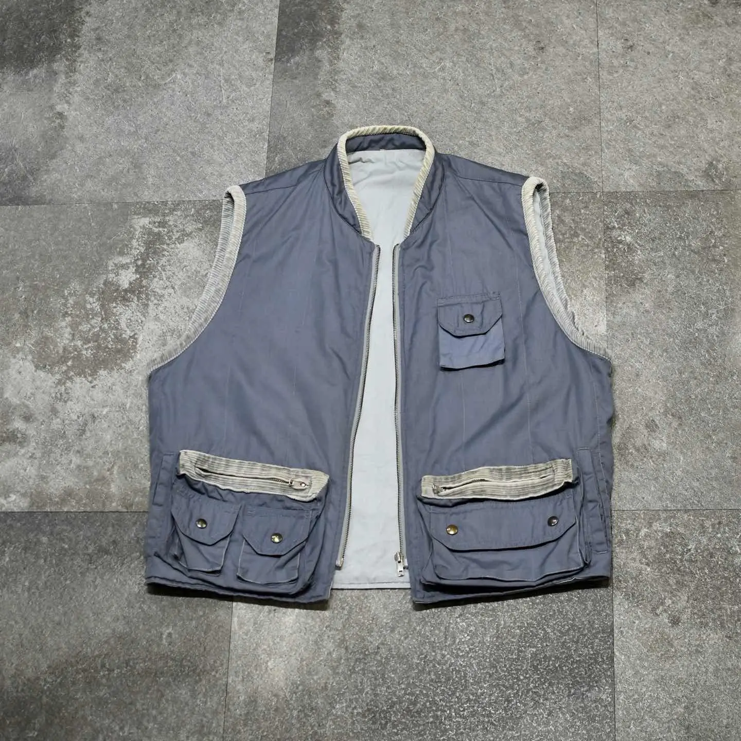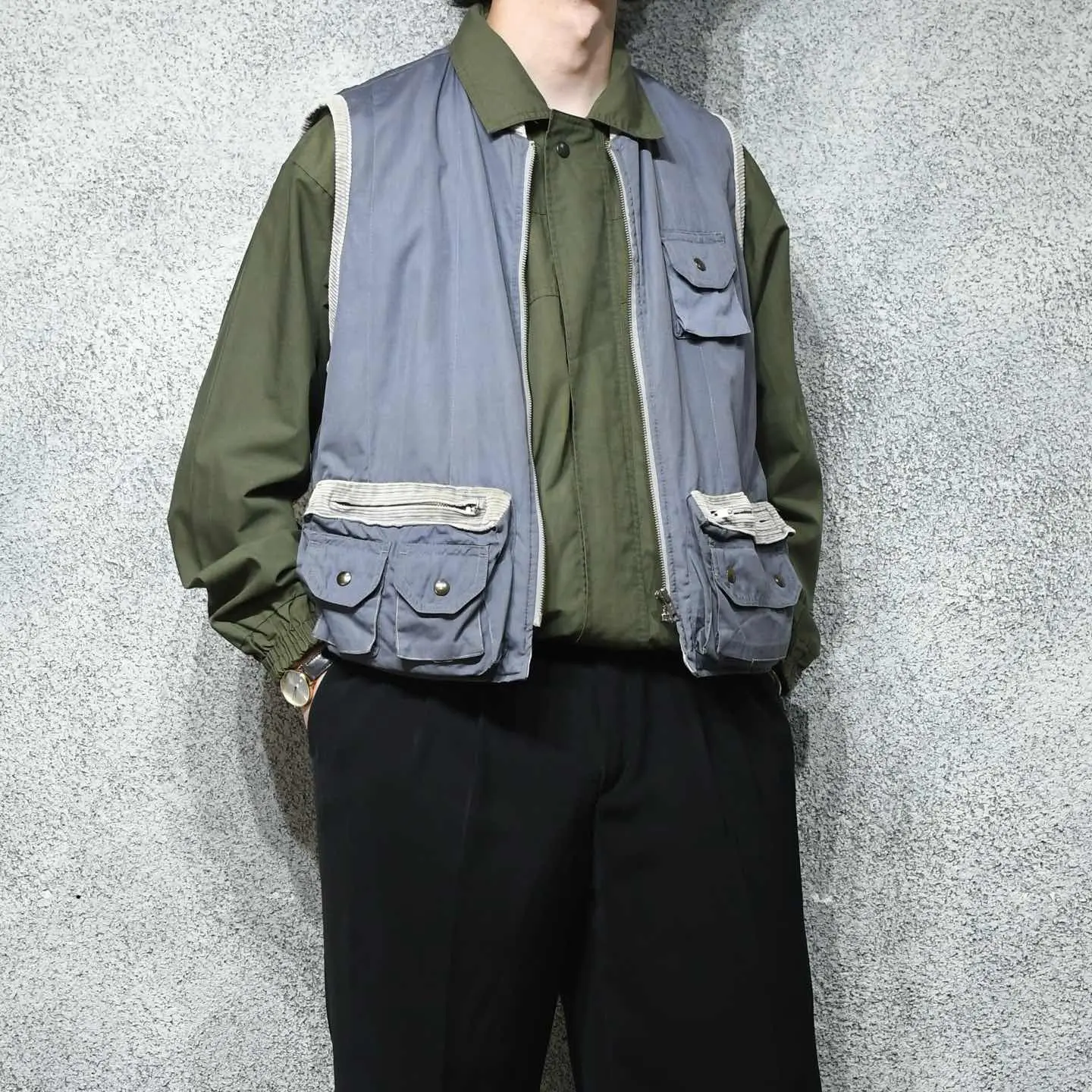 SIZE:48 着丈62.5cm 肩幅44cm 身幅61cm fabric/質感よりcotton・poly 着用画像 177cm/64kg ロンTやスウェットの上から。 そんな説明要らずなスタイリングはもちろんですが、 個人的にこのベストは、ジャケットや ブルゾンの上から合わせた方が、 その良さを引き出せる気がしました。 襟や袖、ポケットの縁にはコーデュロイの パイピングが施され、色は大人びたグレー色、 野暮ったさのある雰囲気をうまく中和した ベストです。 ワークジャケットやスウィングトップ、 ブルゾンの上から合わせ、いつもより少し 個性のあるスタイリングなんてどうでしょう。 ※撮影状況により、実物と多少色が異なる場合が ございます。 ※古着を取り扱っているため、気づかない汚れや ほつれ等がある場合がございます。 予めご了承ください。 ※サイズは着用感で選んでおり、 表記サイズではございません。 表記サイズは説明欄の最初に記載しております。 old vintage ヴィンテージ used 80's 90's アメリカ古着 ユーロ古着 POLO RALPH LAUREN Eddie Bauer OLD GAP LANDS' END LLBean エルエルビーン オールドギャップ エディーバウアー ラルフローレン ブルックスブラザーズ Brooks Brothers フィッシングベスト ハンティングベスト などがお好きな方 #vintage #old #used #90s #80s #古着 #ヴィンテージ #LLBean #エルエルビーン #EddieBauer #エディーバウアー #oldgap #LANDSEND #ランズエンド #NAUTICA #ノーティカ #ラルフローレン #POLORALPHLAUREN #ブルックスブラザーズ #BrooksBrothers #ベスト #ワークベスト #フィッシングベスト #ハンティングベスト