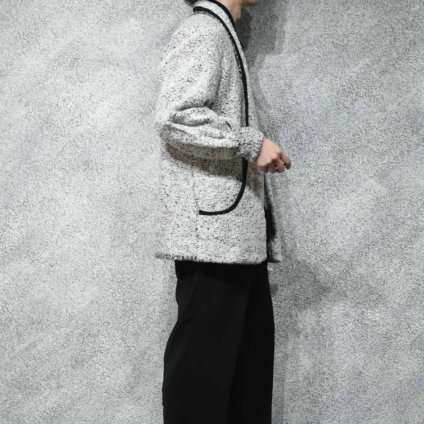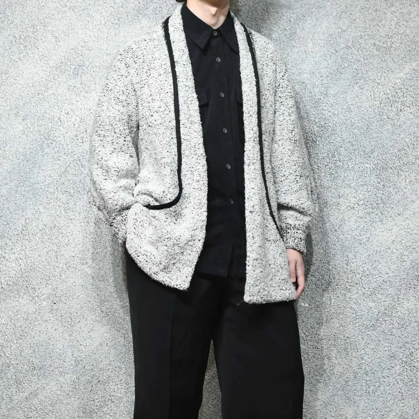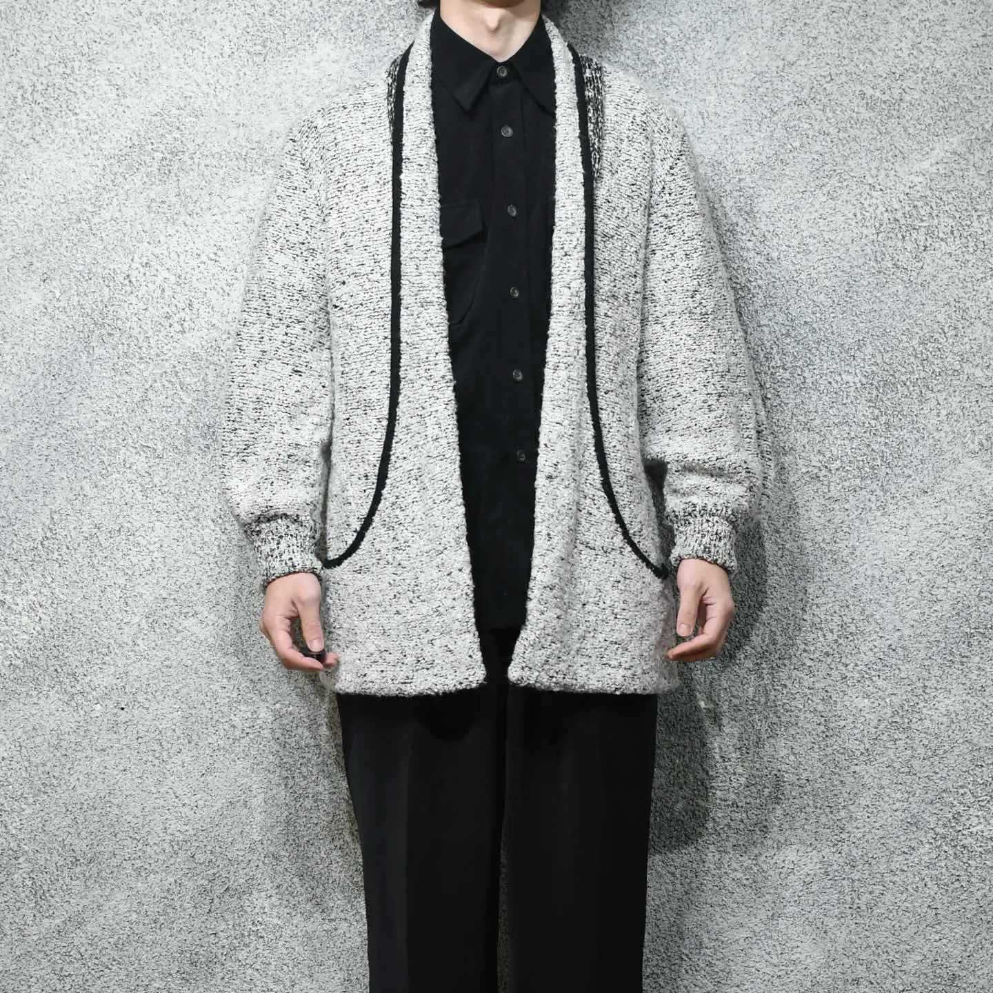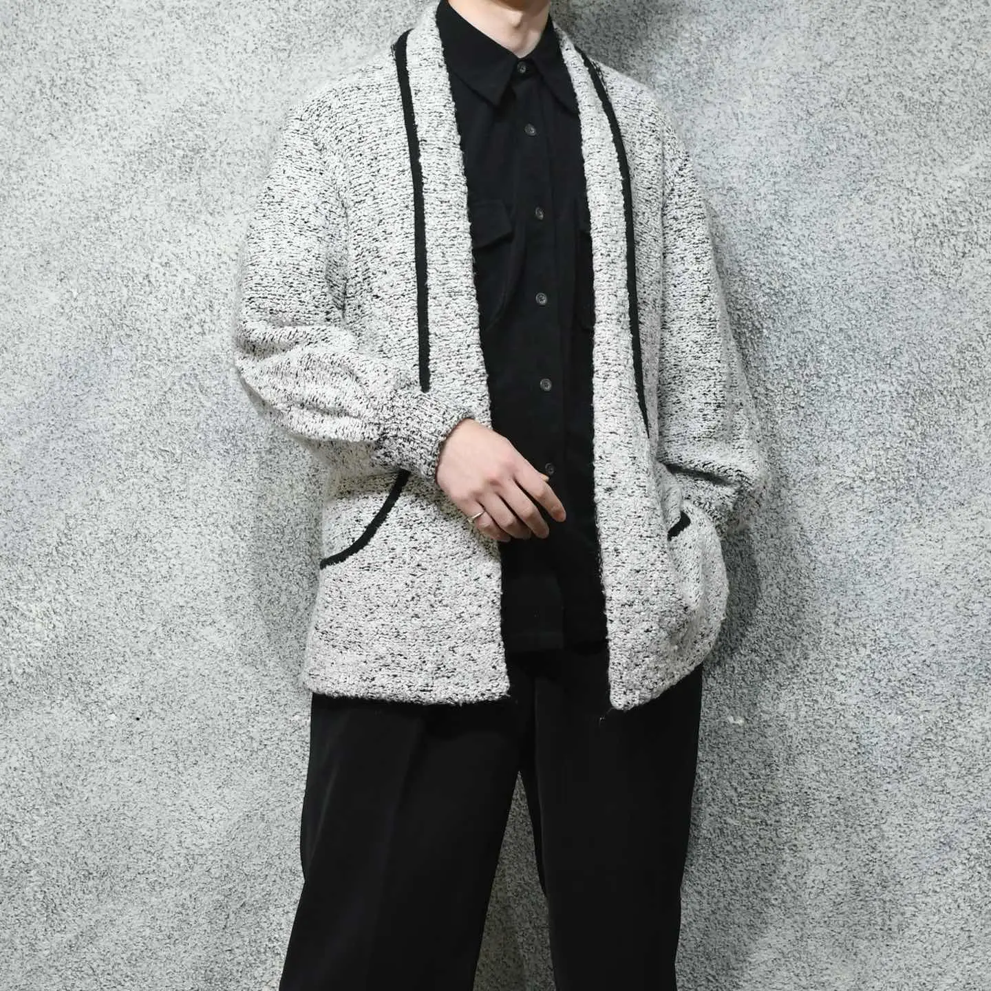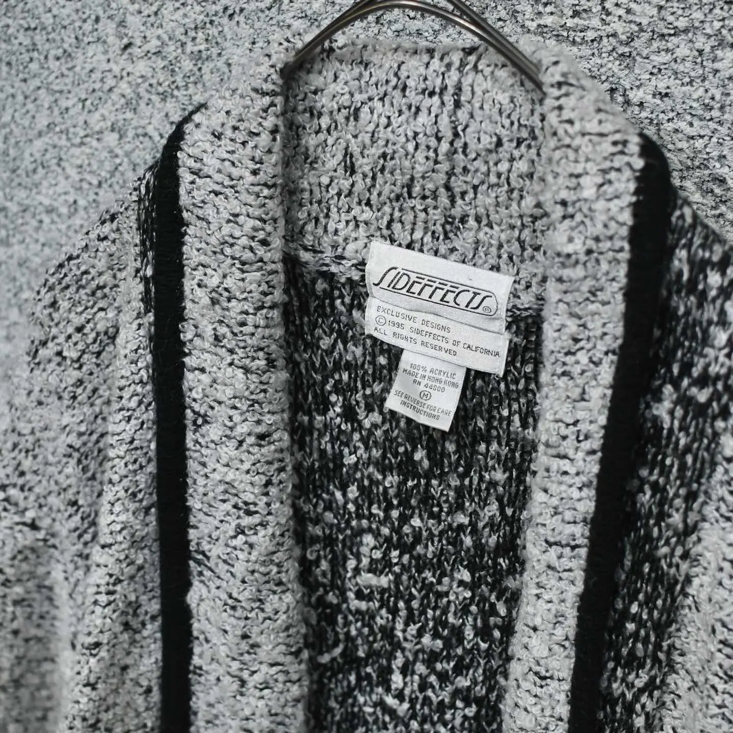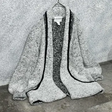 SIZE:M 着丈77cm 肩幅45cm 身幅58cm 袖丈72cm fabric/acryl 着用画像 177cm/64kg テーラードジャケットとカーディガンを 足して2で割ったような、そんな印象でした。 襟がそのままポケットへと続くデザイン、 落ち感のあるシルエット、そしてアームの ボリュームはしっかりと手元に溜まる仕様。 こちらを困らせない程度に風変わり、 意外にも”ちょうど良い”アイテムな気がします。 またパイルニットで、通常のニットよりも 生地に表情があるのもポイントです。 シャツやニットの上からさらりとどうでしょう。 ※撮影状況により、実物と多少色が異なる場合が ございます。 ※古着を取り扱っているため、気づかない汚れや ほつれ等がある場合がございます。 予めご了承ください。 ※サイズは着用感で選んでおり、 表記サイズではございません。 表記サイズは説明欄の最初に記載しております。 オーバーサイズ old vintage ヴィンテージ used 80's 90's アメリカ古着 ユーロ古着 POLO RALPH LAUREN Eddie Bauer OLD GAP LANDS' END ランズエンド LLBean エルエルビーン オールドギャップ エディーバウアー ラルフローレン ブルックスブラザーズ Brooks Brothers ジャケット 灰色 などがお好きな方 #vintage #オーバーサイズ #old #used #90s #80s #古着 #ヴィンテージ #LLBean #エルエルビーン #EddieBauer #エディーバウアー #oldgap #オールドギャップ #LANDSEND #ランズエンド #NAUTICA #ノーティカ #ラルフローレン #POLORALPHLAUREN #ブルックスブラザーズ #BrooksBrothers #ガウン #羽織り #ジャケット #カーディガン #ニット #セーター