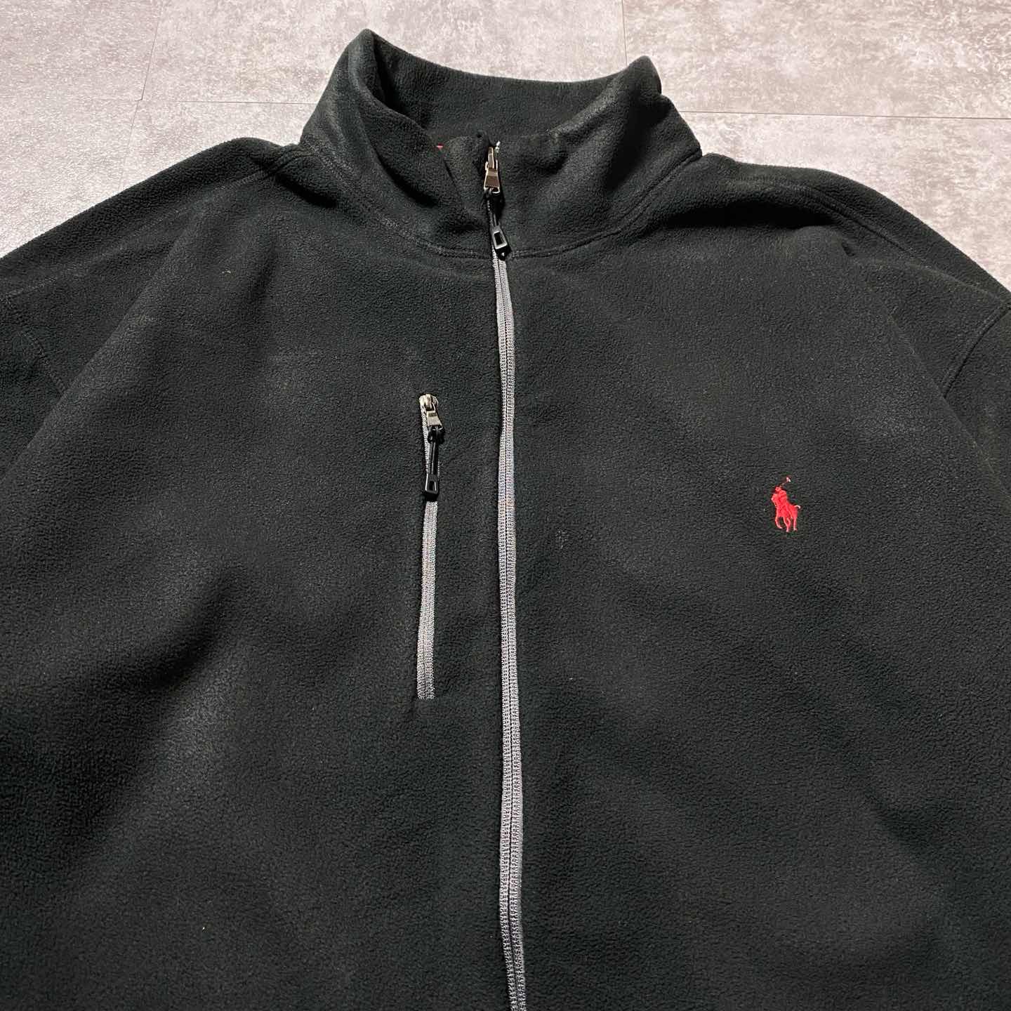 【XL】ポロラルフローレン 刺繍ロゴ ポニー ブラック フリースジャケット