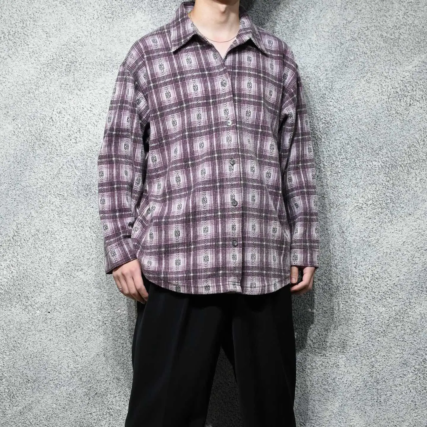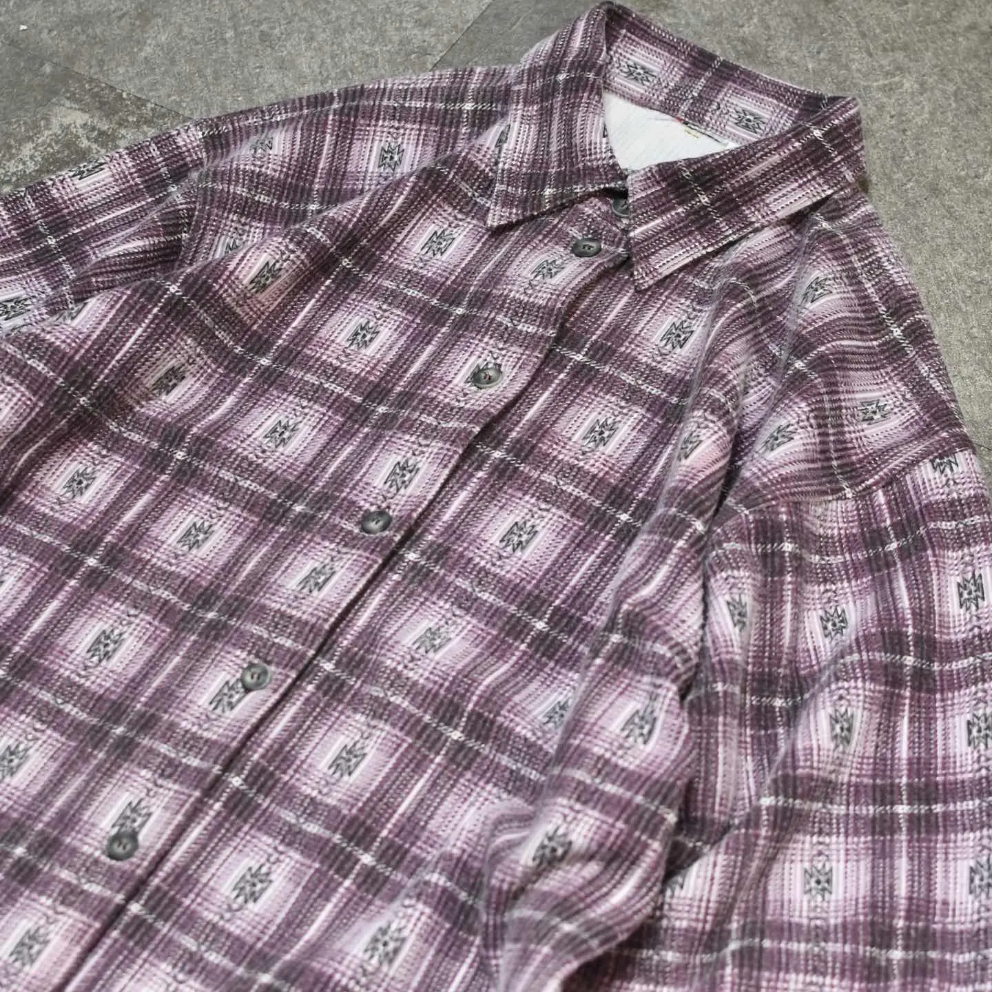 SIZE:18 着丈75cm 肩幅60cm 身幅65cm 袖丈56cm fabric/poly・cotton 着用画像 177cm/64kg パジャマシャツの一種でしょうか。 民族調な柄がプリントされた生地は畝があり、 どこかコーデュロイに似た肌触り。 畝のある生地で総柄という点だけ見ても、 意外に数少なく感じますし、何より一般的な シャツと比べてやや抜け感があるのが、 この個体の”良さ”ではないでしょうか。 シャツでありながら気負うことなく、 リラックス出来るような、肩の力を抜いて 着れる逸品です。 ※撮影状況により、実物と多少色が異なる場合が ございます。 ※古着を取り扱っているため、気づかない汚れや ほつれ等がある場合がございます。 予めご了承ください。 ※サイズは着用感で選んでおり、 表記サイズではございません。 表記サイズは説明欄の最初に記載しております。 古着 オーバーサイズ old vintage ヴィンテージ used 80's 90's アメリカ古着 ユーロ古着 POLO RALPH LAUREN Eddie Bauer OLD GAP LANDS' END ランズエンド LLBean エルエルビーン オールドギャップ エディーバウアー ラルフローレン ブルックスブラザーズ Brooks Brothers ピンク パジャマシャツ などがお好きな方 #vintage #old #used #90s #80s #古着 #ヴィンテージ #アメリカ古着 #ユーロ古着 #LLBean #エルエルビーン #EddieBauer #エディーバウアー #oldgap #オールドギャップ #LANDSEND #ランズエンド #NAUTICA #ノーティカ #ラルフローレン #POLORALPHLAUREN #ブルックスブラザーズ #BrooksBrothers #長袖シャツ #シャツ #パジャマシャツ #デザインシャツ #柄シャツ #総柄シャツ