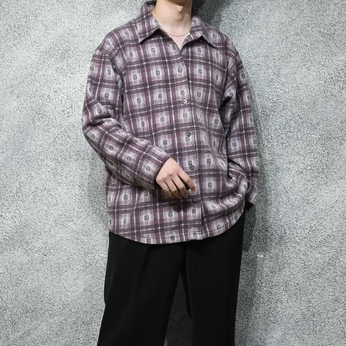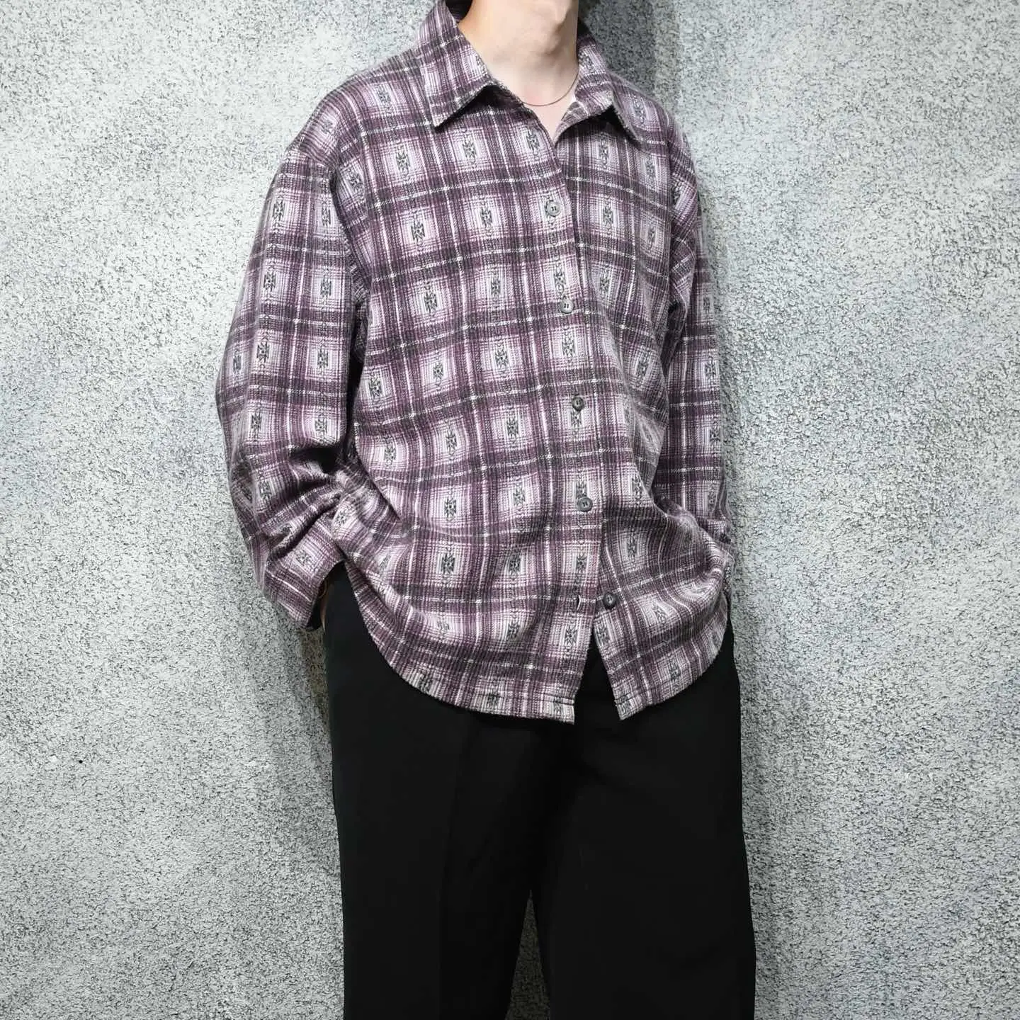 古着 オーバーサイズ 総柄シャツ コーデュロイシャツ 細畝 ボタンダウンシャツ