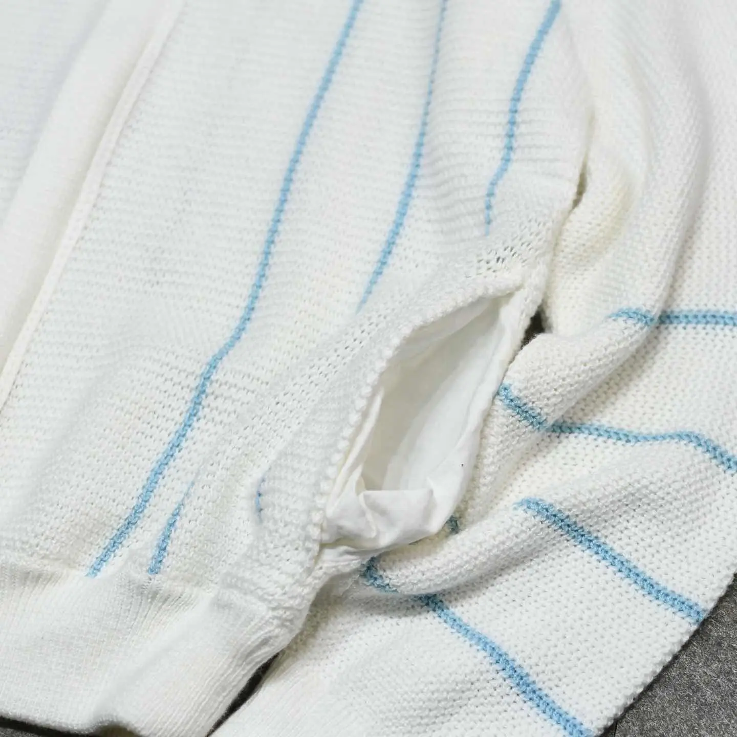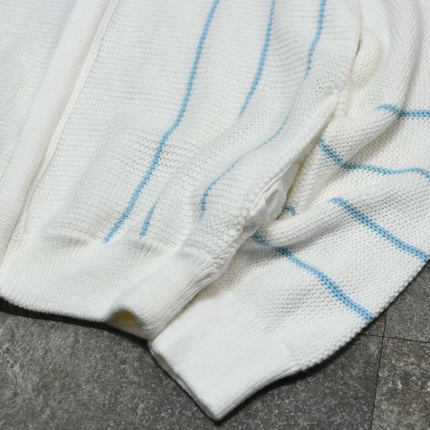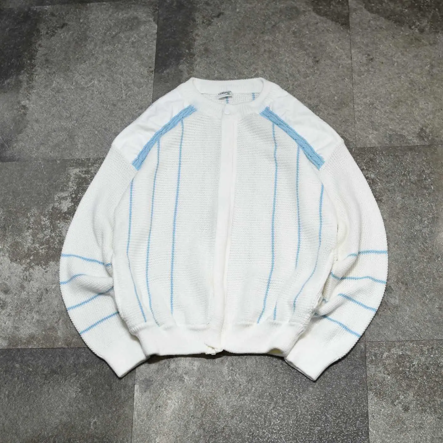 SIZE:56 着丈67cm 肩幅60cm 身幅59cm 袖丈64cm fabric/質感よりacrylic made in italy 着用画像 177cm/64kg ユーロ圏の古着で見掛ける、 ブルゾン型のニット。 中でもこちらは色使いに惹かれた個体です。 コートやヘビーアウターなどを羽織ると、 どうしても色味が暗くなりがちですが、 そんな時でもアウターの中から、塩梅良く 引き立ってくれるニットです。 どこか新鮮でありながら、すっと馴染む、 シルエットだけでなく、雰囲気まで丸みのある ユーロ圏の古着。 個人的に好きな部類で提案致します。 ※左袖に軽度の汚れあり。 ※撮影状況により、実物と多少色が異なる場合が ございます。 ※古着を取り扱っているため、気づかない汚れや ほつれ等がある場合がございます。 予めご了承ください。 ※サイズは着用感で選んでおり、 表記サイズではございません。 表記サイズは説明欄の最初に記載しております。 old vintage ヴィンテージ used 80's 90's アメリカ古着 ユーロ古着 POLO RALPH LAUREN Eddie Bauer OLD GAP LANDS' END ランズエンド LLBean エルエルビーン オールドギャップ エディーバウアー ラルフローレン ブルックスブラザーズ Brooks Brothers 白 ブルゾン アクリルニット などがお好きな方 #vintage #old #used #90s #80s #古着 #ヴィンテージ #LLBean #エルエルビーン #EddieBauer #エディーバウアー #oldgap #LANDSEND #NAUTICA #ラルフローレン #POLORALPHLAUREN #ブルックスブラザーズ #BrooksBrothers #ニットブルゾン #ブルゾン #カーディガン #デザインニット #ニット #セーター #アクリルニット