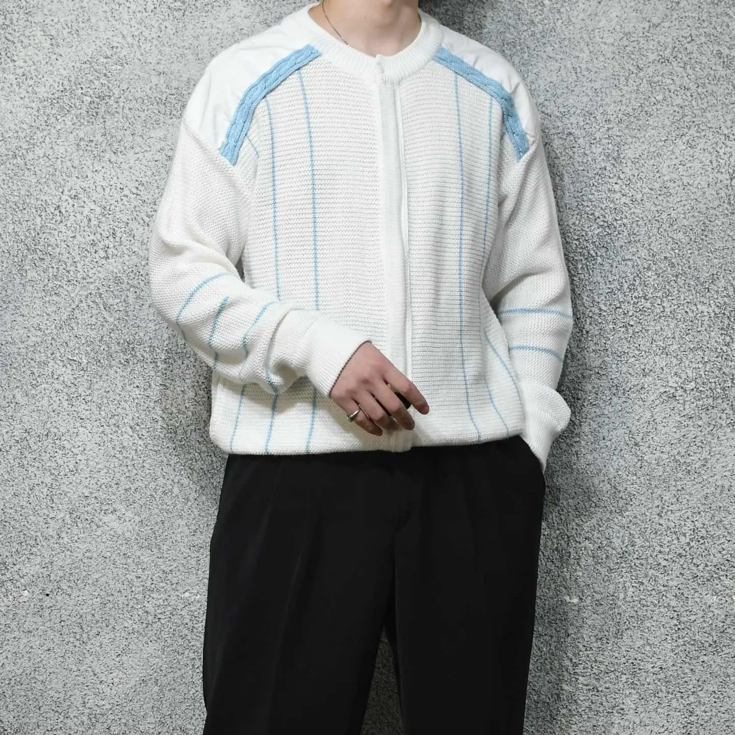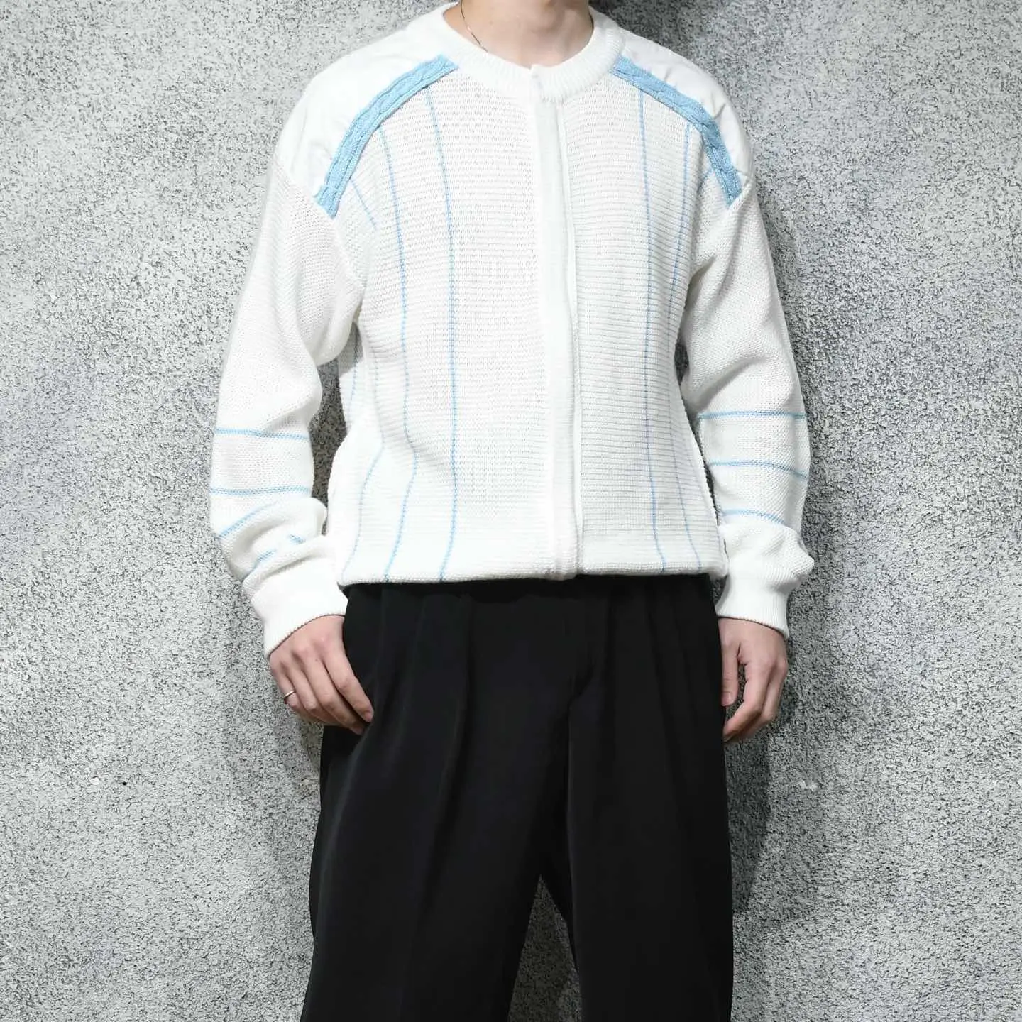 古着 ノルディックニット ニットフーディ デザインニット ジップアップ