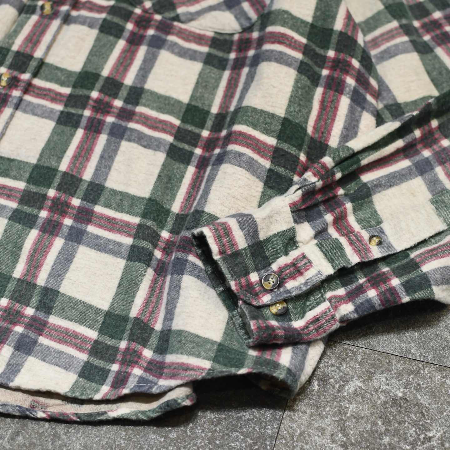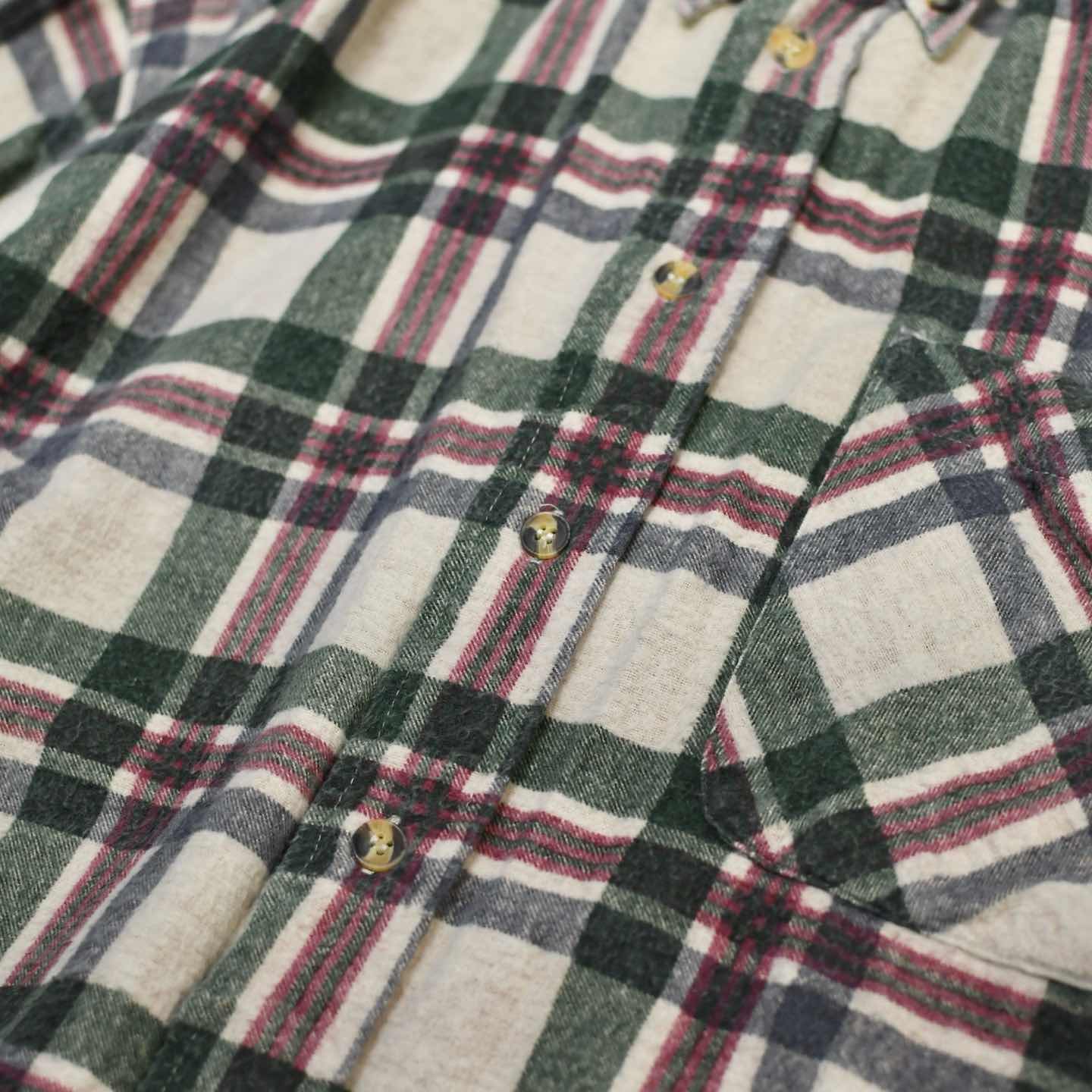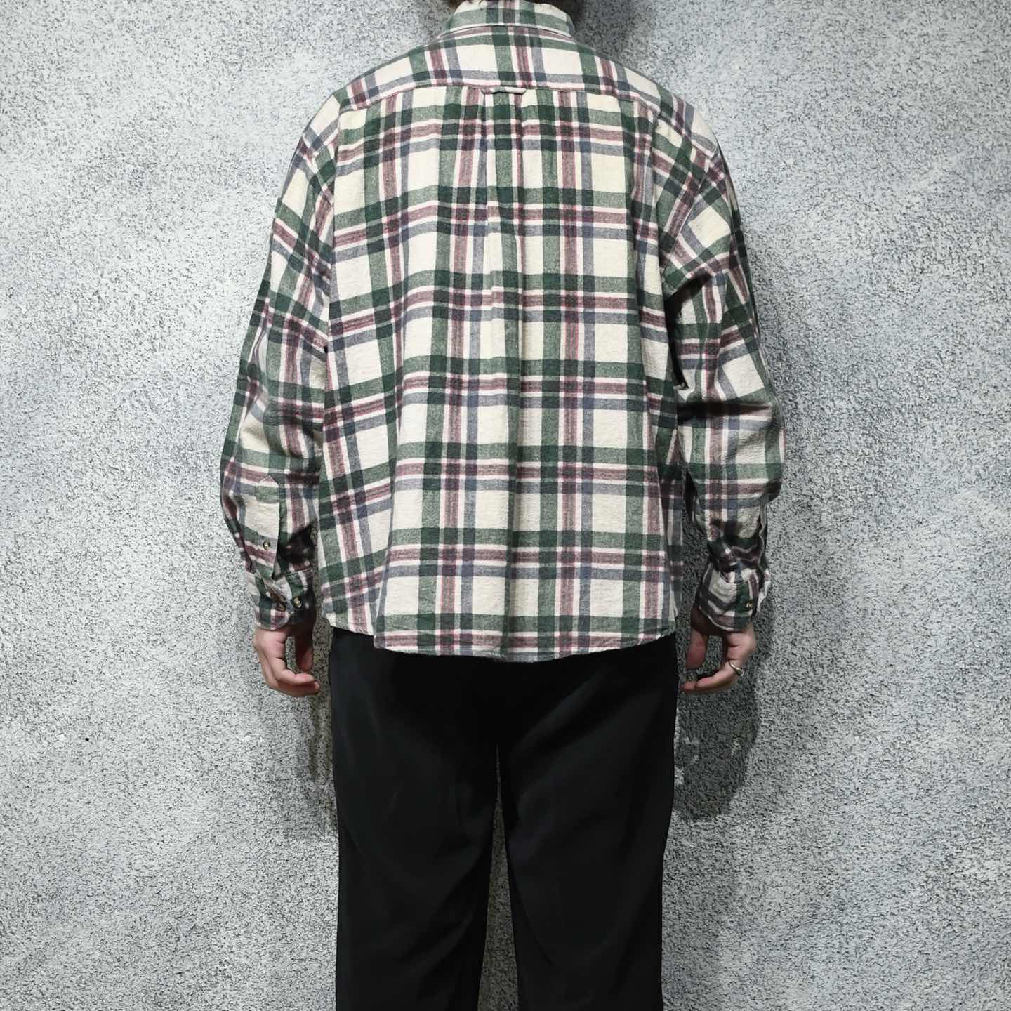 SIZE:43/44 着丈73cm 肩幅54cm 身幅68cm 袖丈60cm fabric/cotton 着用画像 177cm/64kg 元よりこの色使いのチェックシャツを 探している方は居ないかと思いますが、 アースカラーをベースに選ばれた3色から生まれる、 優しくも独特な雰囲気に惹かれました。 またふわっと起毛した生地も肌触りが良く、 角の無い印象です。 チェック柄、そしてシャモア生地。 カジュアルな印象を与える要素を持ちながら、 程よく個性をもスタイリングに乗せることが 出来る逸品です。 ※撮影状況により、実物と多少色が異なる場合が ございます。 ※古着を取り扱っているため、気づかない汚れや ほつれ等がある場合がございます。 予めご了承ください。 ※サイズは着用感で選んでおり、 表記サイズではございません。 表記サイズは説明欄の最初に記載しております。 old vintage ヴィンテージ used 80's 90's アメリカ古着 ユーロ古着 POLO RALPH LAUREN Eddie Bauer OLD GAP LANDS' END ランズエンド LLBean エルエルビーン オールドギャップ エディーバウアー ラルフローレン ブルックスブラザーズ Brooks Brothers 緑 グリーン ベージュ アイボリー 生成り ネルシャツ アメカジ などがお好きな方 #vintage #old #used #90s #80s #古着 #ヴィンテージ #アメリカ古着 #ユーロ古着 #LLBean #エルエルビーン #EddieBauer #エディーバウアー #oldgap #オールドギャップ #LANDSEND #ランズエンド #NAUTICA #ノーティカ #ラルフローレン #POLORALPHLAUREN #ブルックスブラザーズ #BrooksBrothers #チェックシャツ #長袖シャツ #シャツ #ネルシャツ #アメカジ