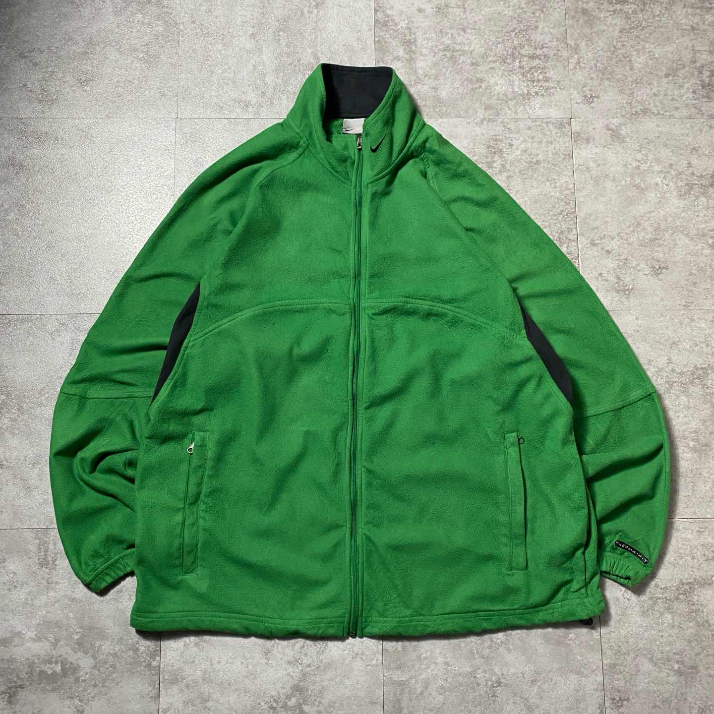 00's NIKE ナイキ スウォッシュ 刺繍ネックロゴ グリーン フリースジャケット