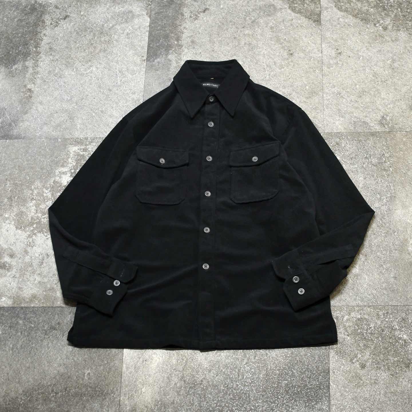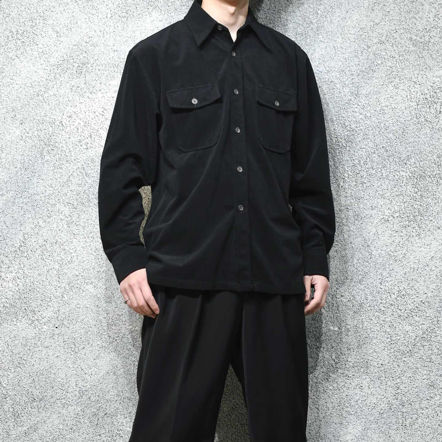 古着 フェイクスウェードシャツ 肉厚 ブラック 長袖シャツ シャツ 黒