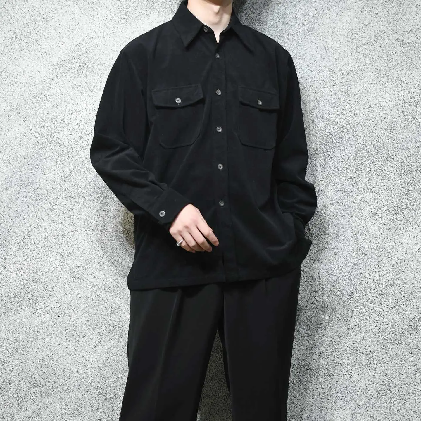 古着 オーバーサイズ 総柄シャツ コーデュロイシャツ 細畝 ボタンダウンシャツ