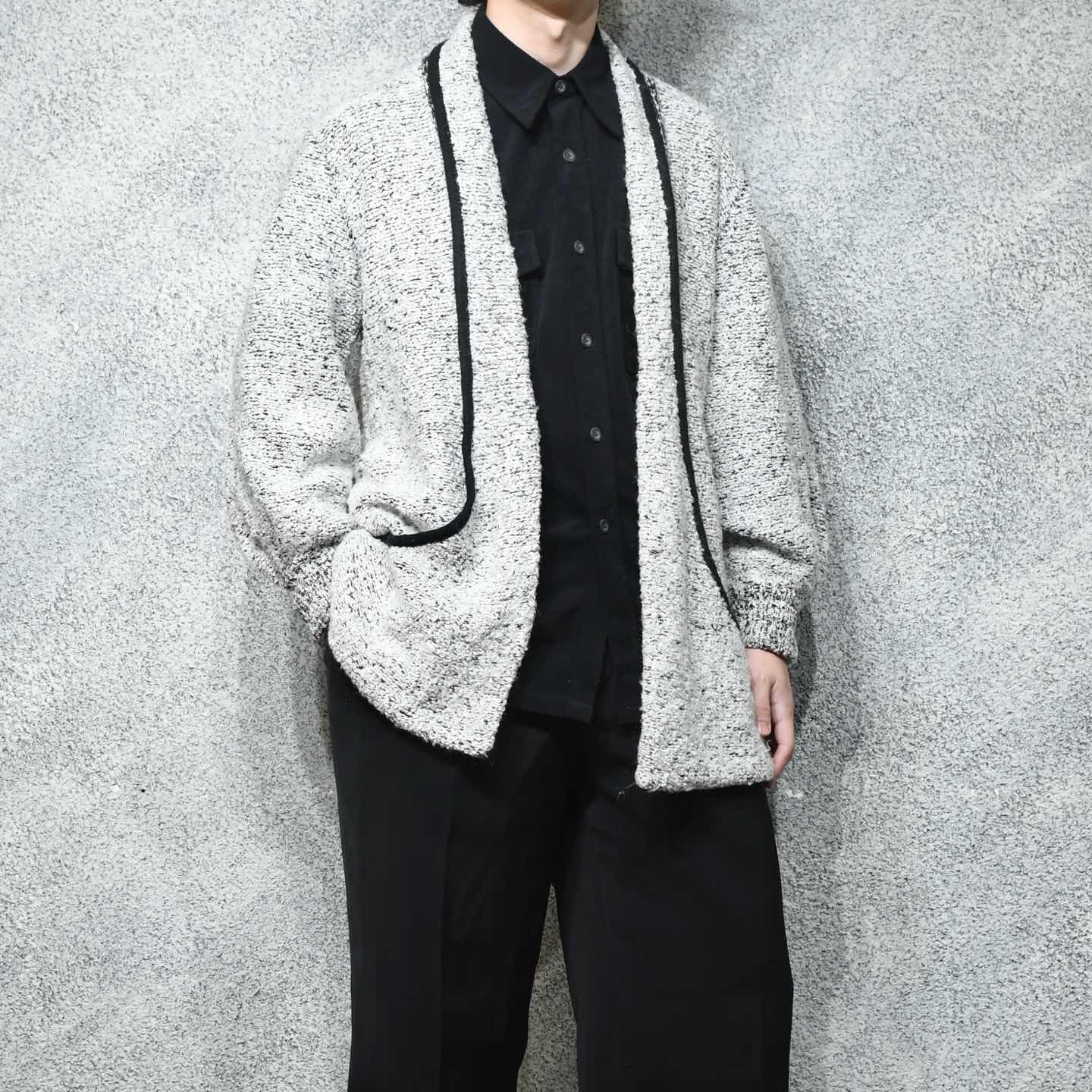 古着 デザイン カーディガン 羽織り ガウン パイルニット セーター グレー