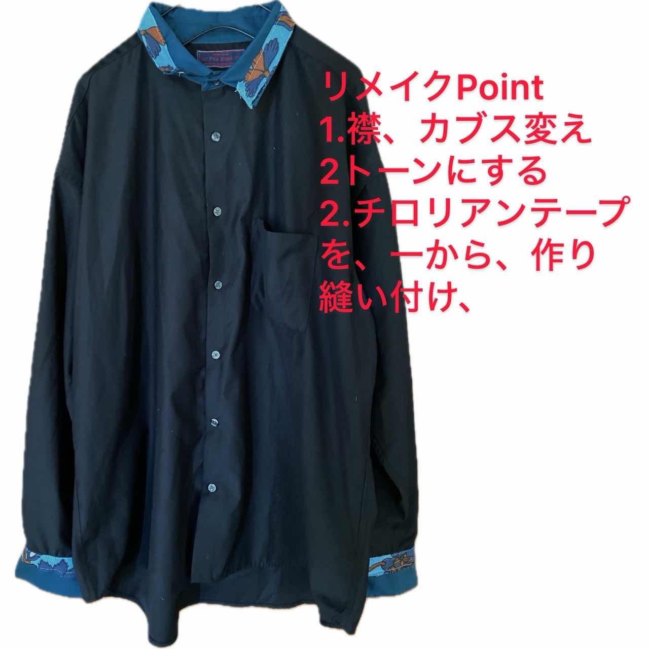 70s 古着 リメイク 黒蟲芸術ビックシャツ ノームコア F