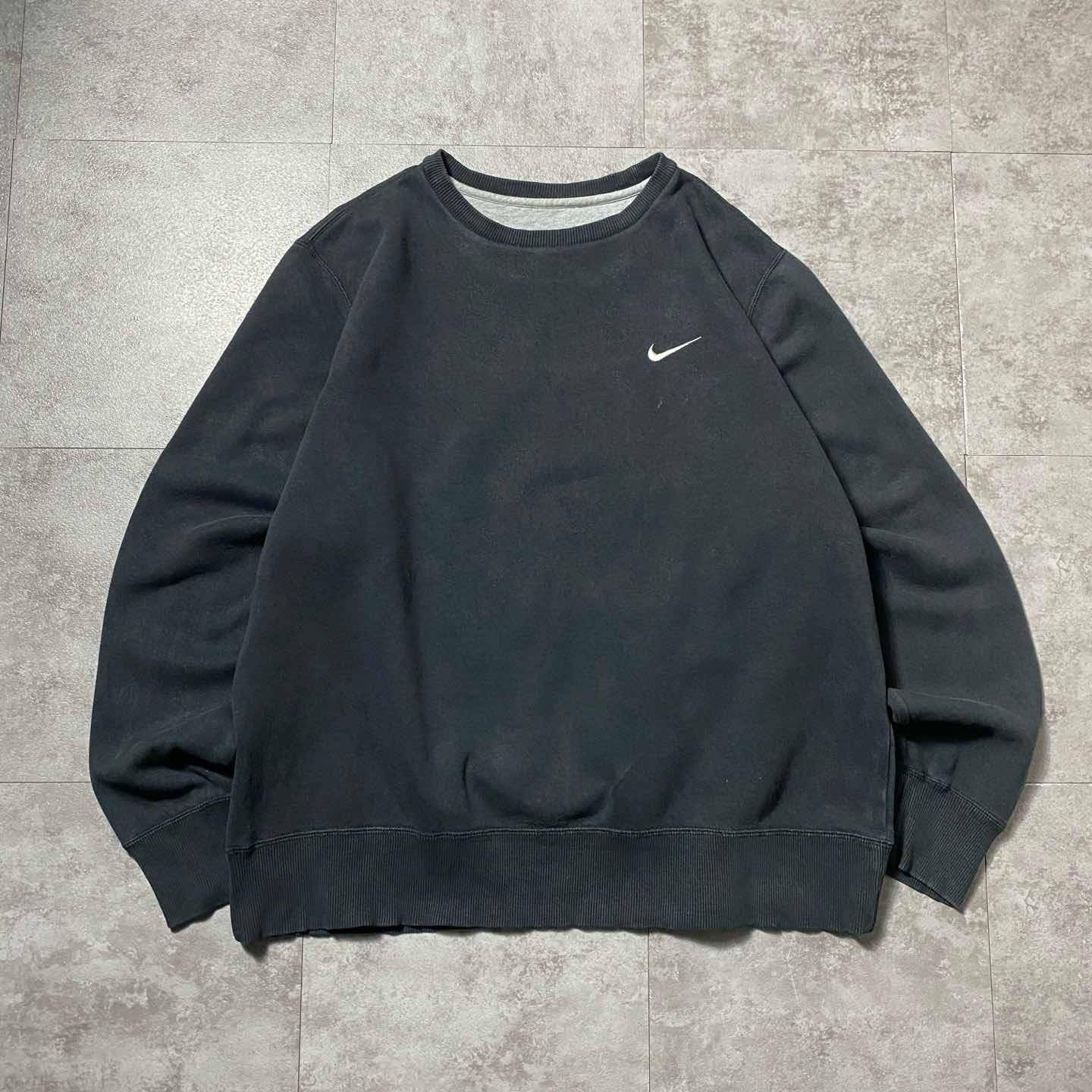 【XL】00's NIKE スウォッシュ 刺繍ワンポイント ダメージ スウェット