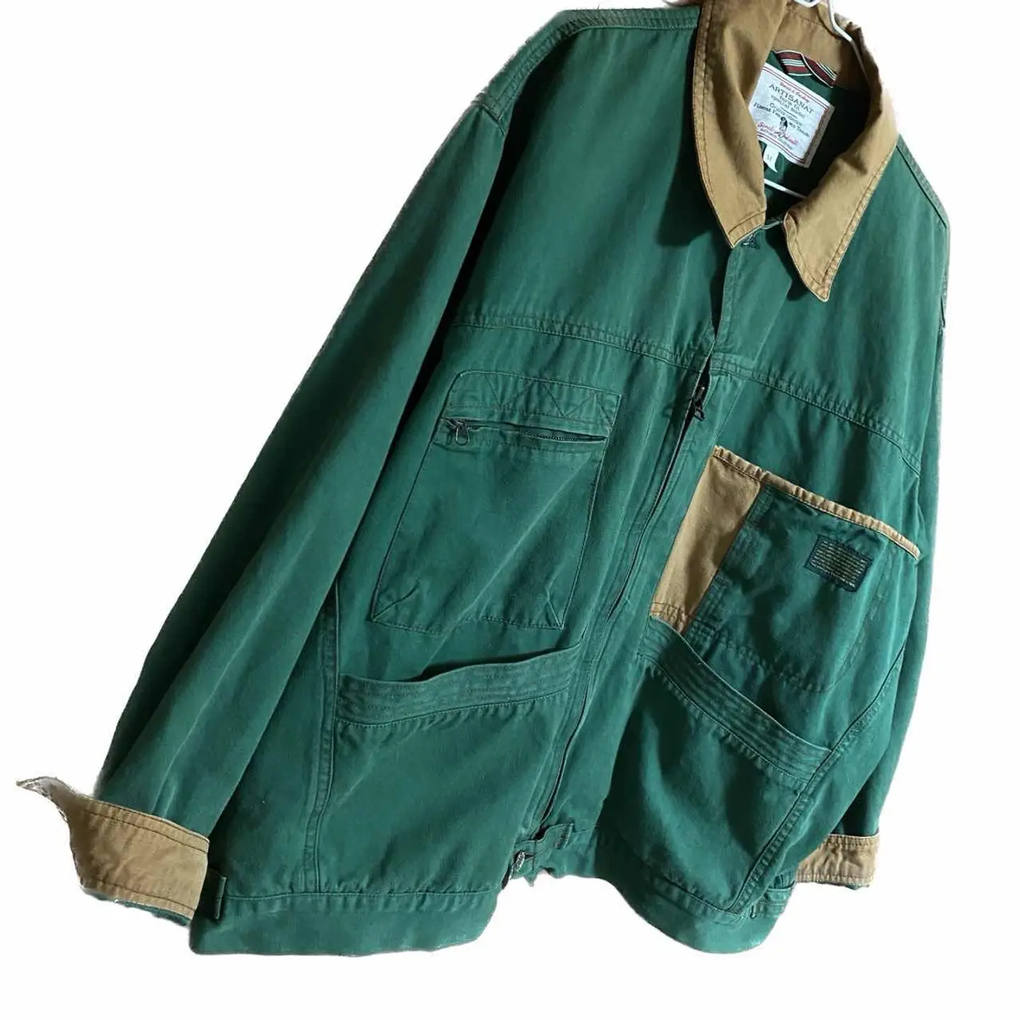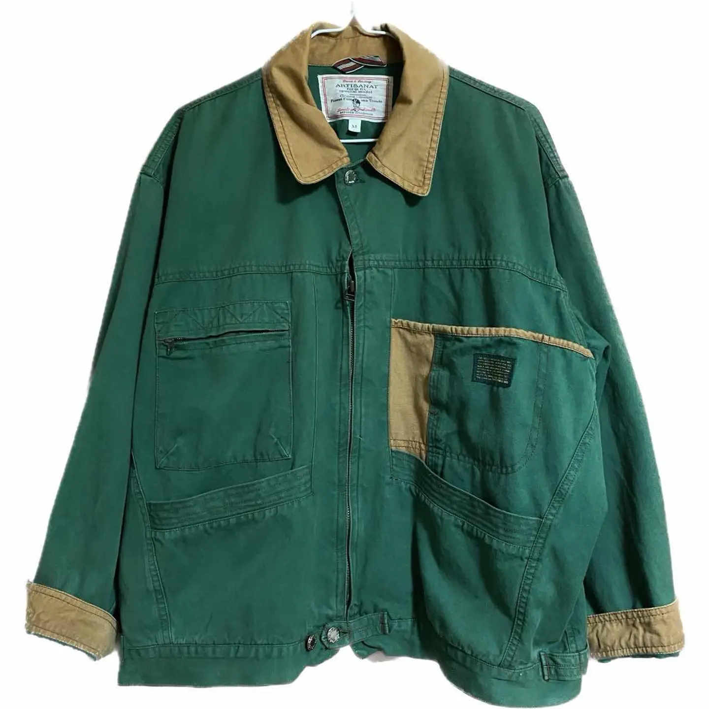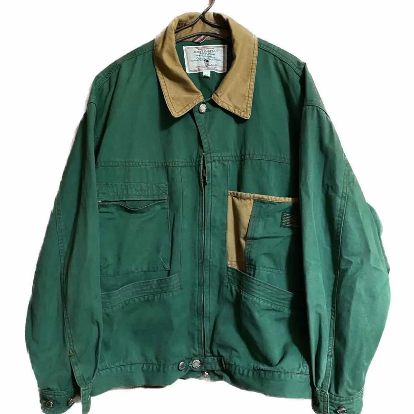 50s 激レア AWM ワークジャケット アルチザン表記 Rデコ XL collectionシリーズ、アルチザン表記、デザイン、レア度気回し力全てが、パーフェクトの、 ※古着好きの憧れ、AWMジャケットという、 ワークジャケットの、一瞬、お目にかかれるだけでも、ラッキーな、商品。 本当の、古着好きに向いてるのと、これ。まとったら、確実あなたは、おしゃれマスターです。 Work Jacket / Official Model collection表記、初期、月桂樹、R変形デコ、 質、デザイン、50Sの、ワークジャケットに属するが、正式名称 AWM ジャケットといいます、90-00に、様々な、ブランドが、Y2Kで、 revivalしようとして、ミスりまくった、半端ない、ジャケット、なぜか?わかります?生地が、もう。現代ないから、ですよ、60年で、廃盤です、この生地は、だから、再現出来ないから、メテオレアなんです、こちら!! ▷color◁ グリーン系現代コットンでは、出せない色 塗料廃盤なんで、最高級、50-60sのカラーは、 鮮やかで素晴らしいです、 ▷size◁ 平置き片面採寸【㎝表記】 表記size M表記だが、明らかにXLboxタイプ 50年代の特徴!! 着丈/70 身幅/63 肩幅/63DSbox重ね着最強! 袖丈 /65 手のながさ、ボタンあるから関係なし!! DSは袖はハンガー採寸わたしが、着てゆるだぼ 【素材】 コットンワーク風だが、柔らかいタフ長持ちします安心感あるタフさ!年中いけます。 【状態】 最高に良い状態 不具合無し!! 検品、洗濯、検品で、3回チェックして発送しますので、ご安心して、お買い求め下さい!!