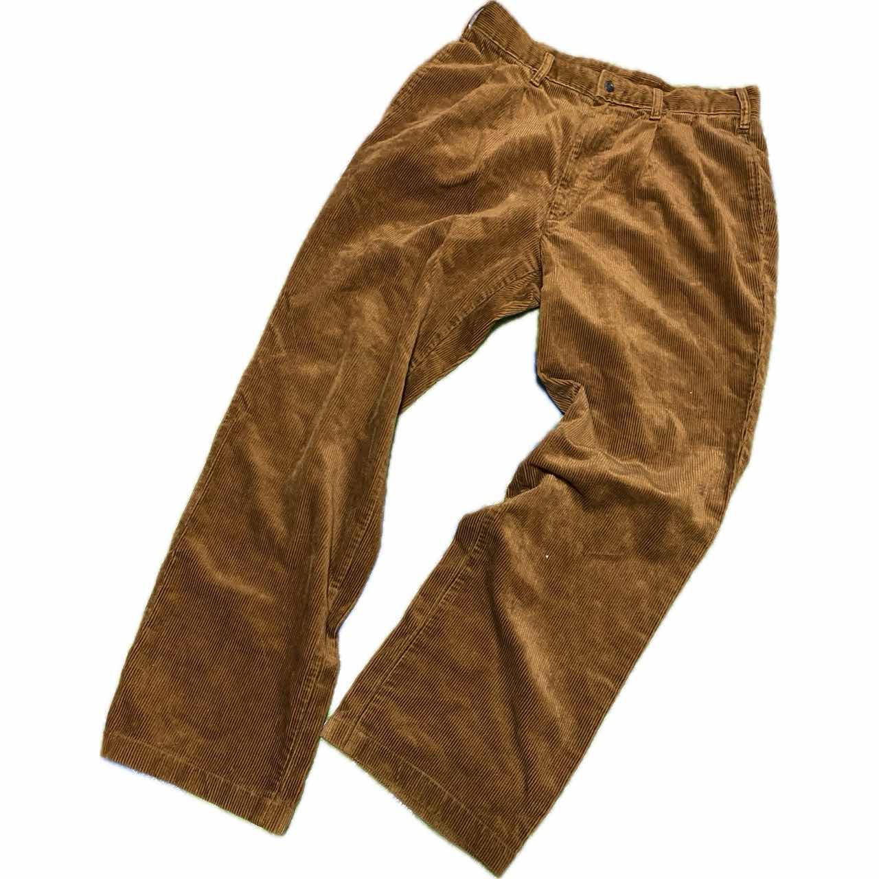 美品 90s ポロラルフローレン スリランカ コーデュロイパンツ 32インチ お宝発見なのは間違いないです。 ヴィンテージのポロラルフローレンのグッドコンディションのシルエットが圧倒的に良いコーデュロイパンツです。 程良いゆとりになることが1本持っているとコーディネートを参照にしてください。トラッドミックスみたいなフォーマルこなれた感じや、ドライボーンズ風にタフな感じにも決まり、近年、人気の丈短コーデまでクールにしあげてくれます。 シルエットの良いボトムを見つけた時は、即ゲットが鉄則ですし、お買い求めやすく提供してますので、お早めのご購入よろしくお願いいたします •brand POLO RALPH LAUREN •data 90s vintage 美品 •point スリランカ製である事はかなりポイント高いです、理由は簡単です。圧倒的なシルエットの良さと年代がわかると言う、プレミア感がある1本で大人気の1本となっております ▷color◁ ブラウン ※お使いのブラウザにより色が変わってみえる場合あります ▷size◁ 平置き片面採寸【㎝表記】 表記size32インチくらいになります、 【※ウエストのみ、メジャーで一周採寸】 ウエスト82 股上35 股下75 ロールアップするとかなり、カッコいい 腿渡り幅32 裾幅27 モデル170㎝/普通体型、30インチジャストな体型のわたしが、程よい感じ ▷material◁ cotton ▷condition◁ 美品 ※入念にチェックは、しておりますが、vintage/usedの特性ご理解下さい