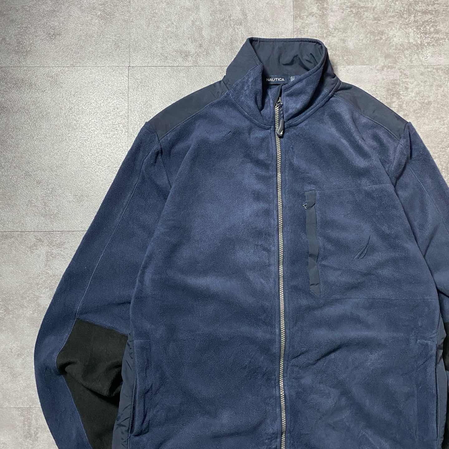 nautica ノーティカ 刺繍ロゴ ナイロン切替 ネイビー フリースジャケット