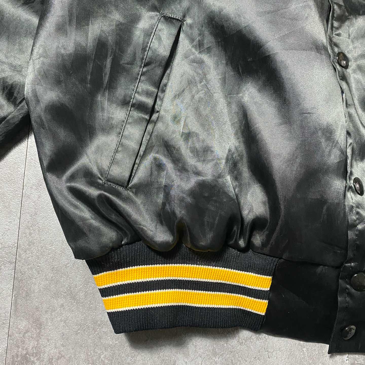 90's NFL スティーラーズ バックロゴ ラインリブ レザージャケット