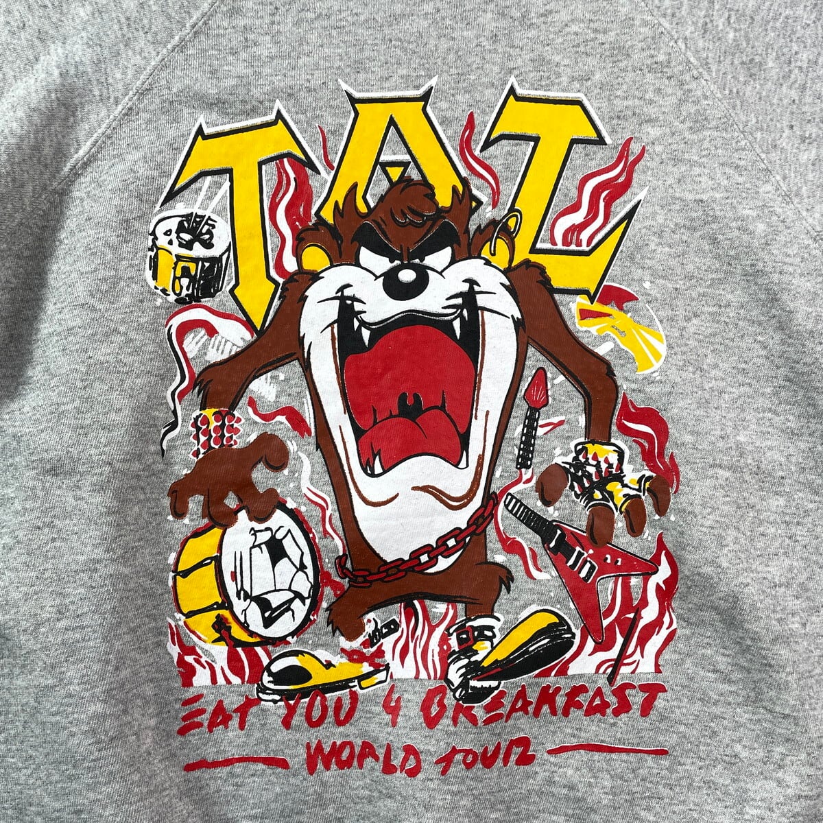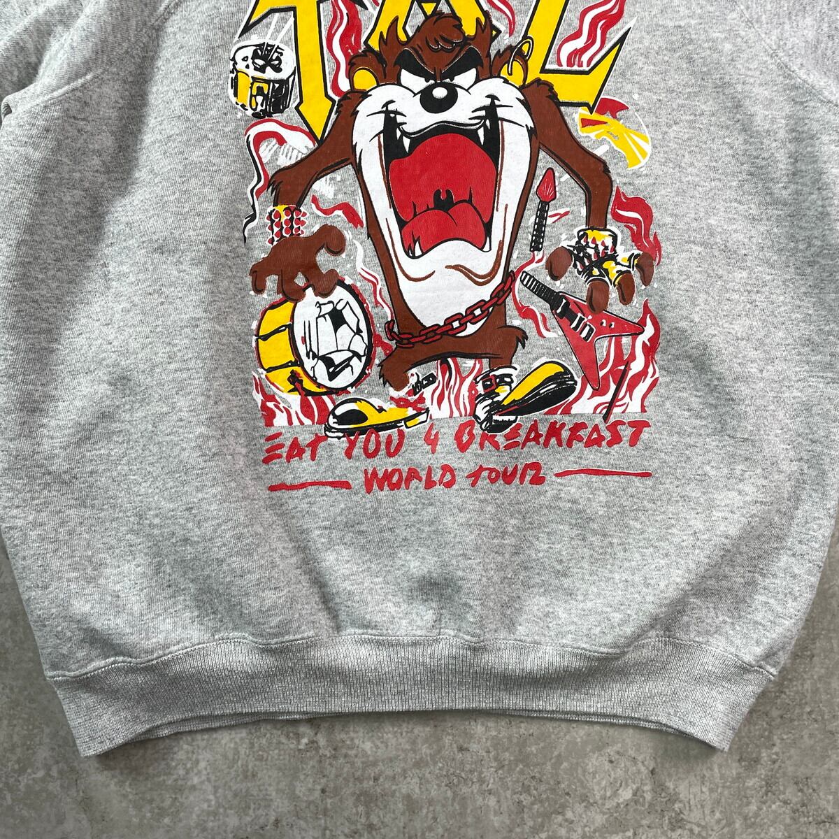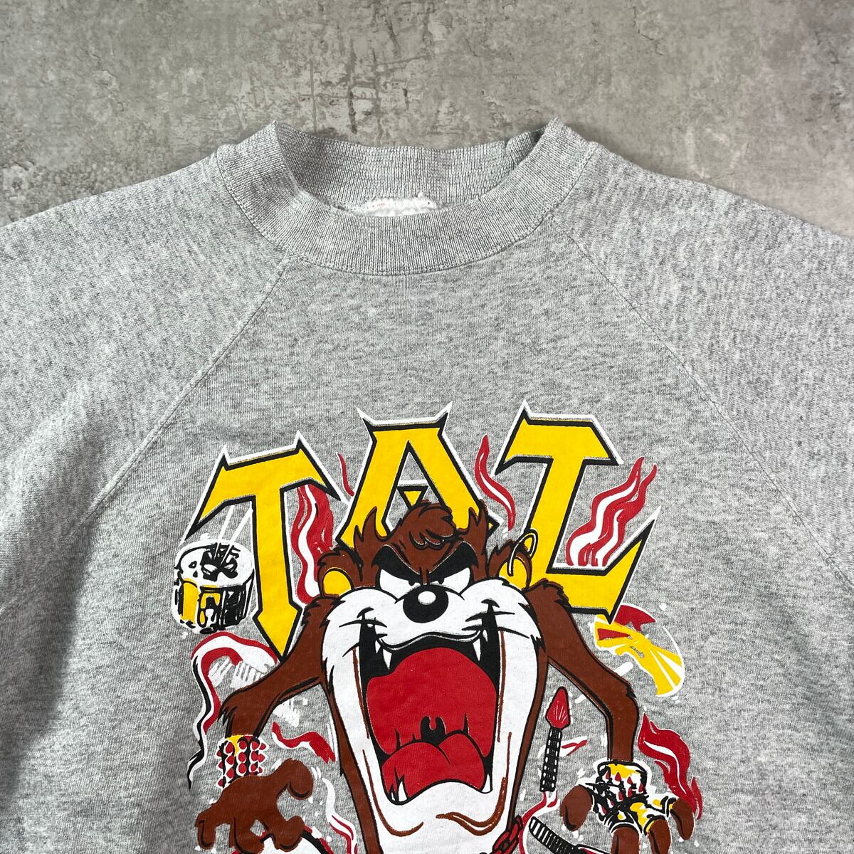 ■90年代 タズマニアンデビル キャラクタープリント スウェットシャツ メンズM相当 レディース 古着 90s ヴィンテージ VINTAGE ルーニーテューンズ トレーナー ギター ドラム ラグランスリーブ 灰色【スウェット】/グレー 【ブランド】Hanes 【サイズ】表記 L(実寸メンズM相当) ※計測値をご確認ください。 着丈…60 身幅…58 裄丈…72 袖丈(脇下計測)…50.5 【生産国】メキシコ製 【素材】ポリエステル50% コットン50% 【状態】使用感はありますが、目立ったダメージや汚れはございません。 画像にてご確認ください。 【c251203102】 ※古着は洗濯、検品などのケアを行っております。(新品・デッドストックは洗濯していません。) ※モニターの発色により実物と異なる場合がございます。予めご了承ください。 ※ 海外直輸入USED品になります。