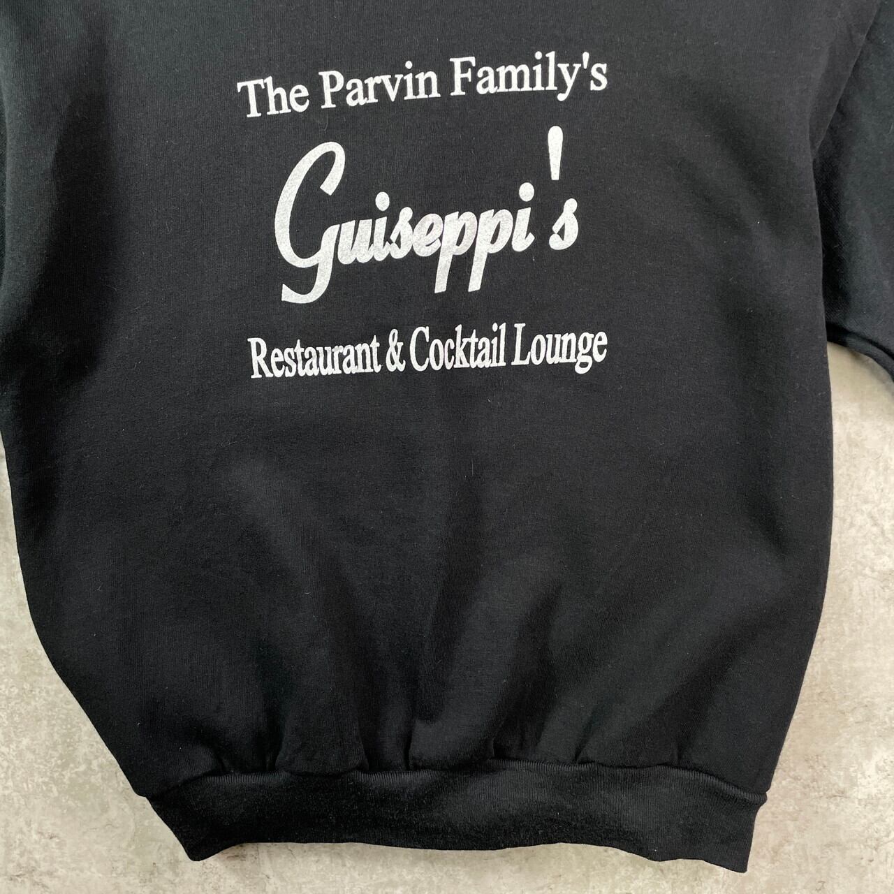 ■90年代 USA製 Guiseppi’s 企業ロゴプリント スウェットシャツ メンズL 古着 90s VINTAGE ヴィンテージ 黒【スウェット】/ブラック 【ブランド】JERZEES ジャージーズ 【サイズ】表記 L ※計測値をご確認ください。 着丈…71 身幅…57 肩幅…58 袖丈…62 【生産国】USA製 【素材】コットン50% ポリエステル50% 【状態】 多少の使用感はございますが、 目立った汚れやダメージ等は無くまだまだ長く愛用していただけます。 画像にてご確認ください。 【c251201002】 ※古着は洗濯、検品などのケアを行っております。(新品・デッドストックは洗濯していません。) ※モニターの発色により実物と異なる場合がございます。予めご了承ください。 ※ 海外直輸入USED品になります。