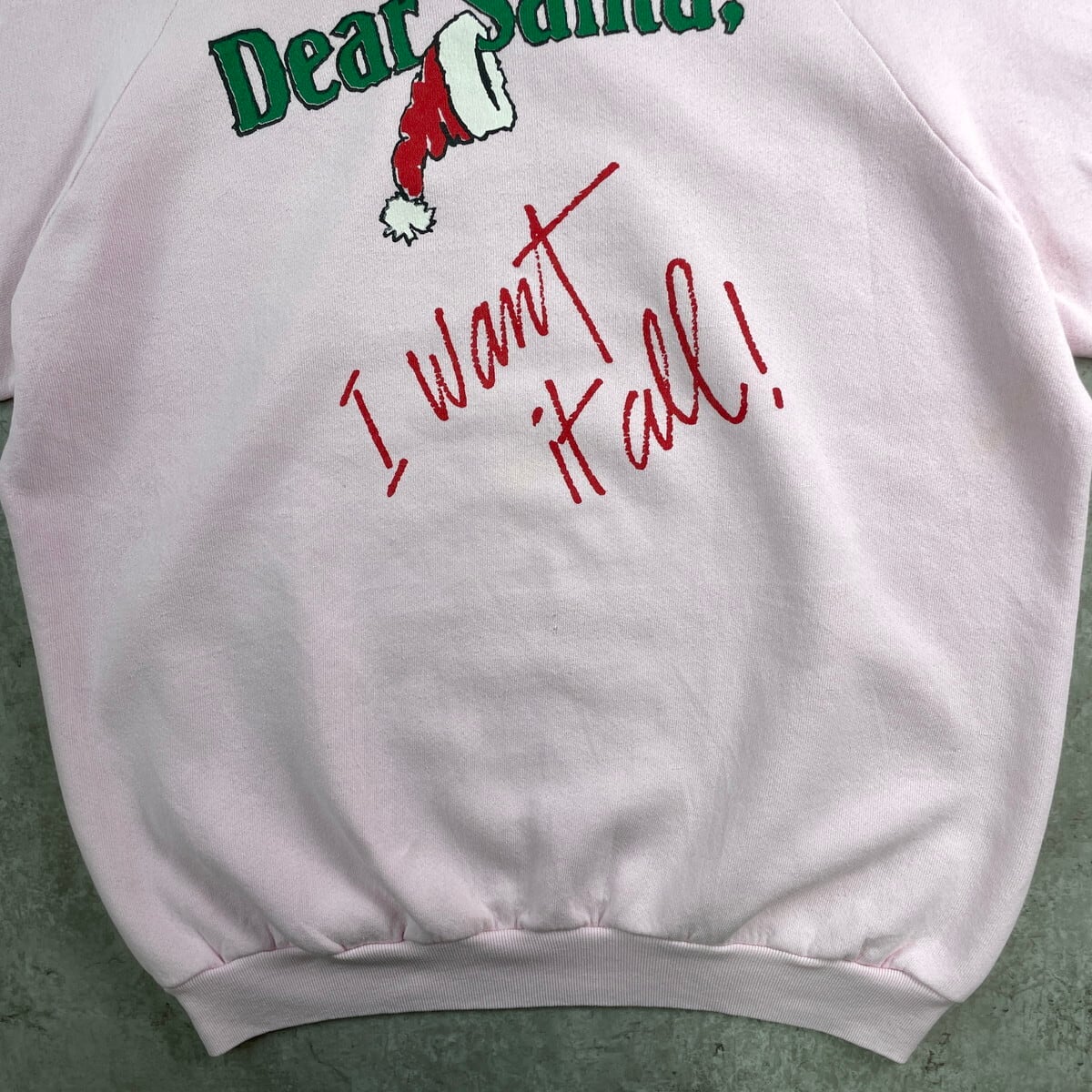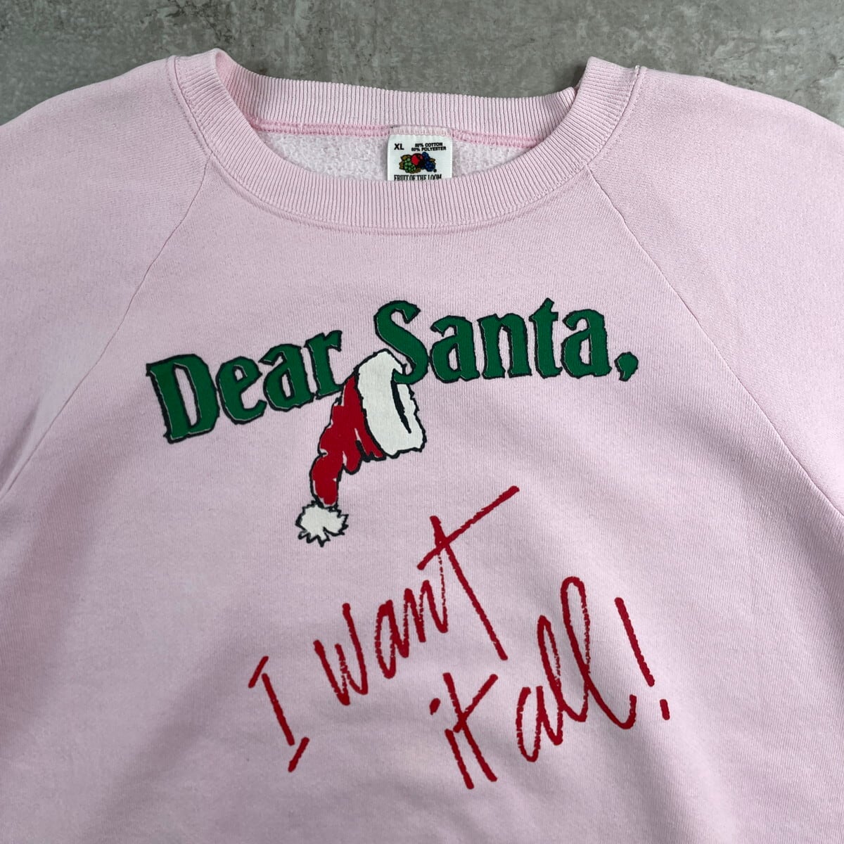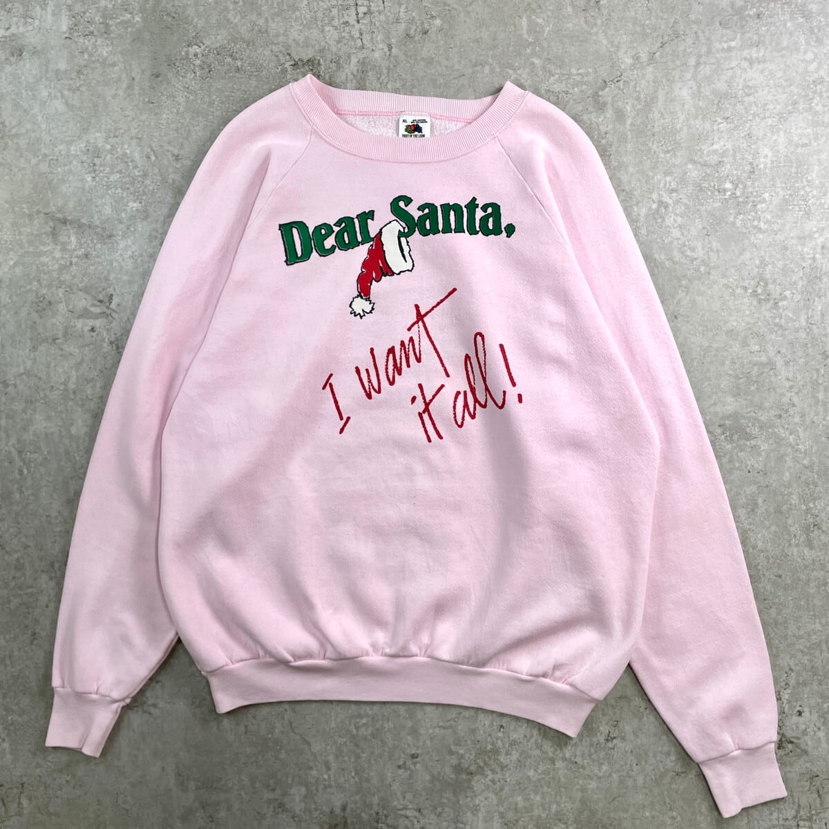 ■90年代 USA製 Dear Santa サンタ クリスマス メッセージプリント スウェットシャツ メンズL相当 古着 90s ヴィンテージ VINTAGE ラグランスリーブ トレーナー 薄ピンク【スウェット】/ピンク 【ブランド】FRUIT OF THE LOOM フルーツオブザルーム 【サイズ】表記 XL(実寸メンズL相当) ※計測値をご確認ください。 着丈…62.5 身幅…60.5 裄丈…78 袖丈(脇下計測)…56.5 【生産国】USA製 【素材】コットン50% ポリエステル50% 【状態】所々に薄汚れがあります。 画像にてご確認ください。 【c251128116】 ※古着は洗濯、検品などのケアを行っております。(新品・デッドストックは洗濯していません。) ※モニターの発色により実物と異なる場合がございます。予めご了承ください。 ※ 海外直輸入USED品になります。