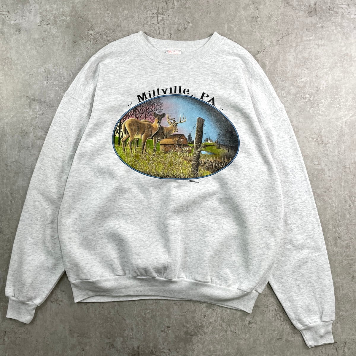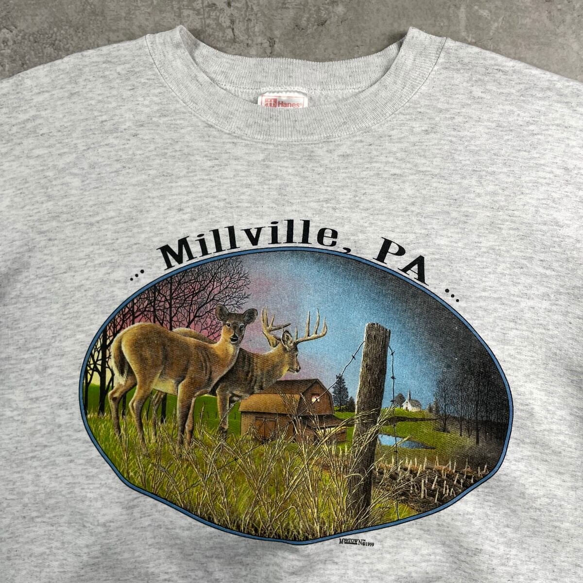 ■90年代 Millville, PA スーベニア アニマルプリント スウェットシャツ メンズXL 古着 90s ヴィンテージ VINTAGE アメカジ トレーナー ペンシルベニア州 鹿 ライトグレー【スウェット】/グレー 【ブランド】Hanes 【サイズ】表記 XL ※計測値をご確認ください。 着丈…67.5 身幅…65.5 肩幅…67 袖丈…61.5 【生産国】メキシコ製 【素材】ポリエステル50% コットン50% 【状態】左袖口に薄汚れがございます。 その他ダメージはありません。 画像にてご確認ください。 【c251128102】 ※古着は洗濯、検品などのケアを行っております。(新品・デッドストックは洗濯していません。) ※モニターの発色により実物と異なる場合がございます。予めご了承ください。 ※ 海外直輸入USED品になります。