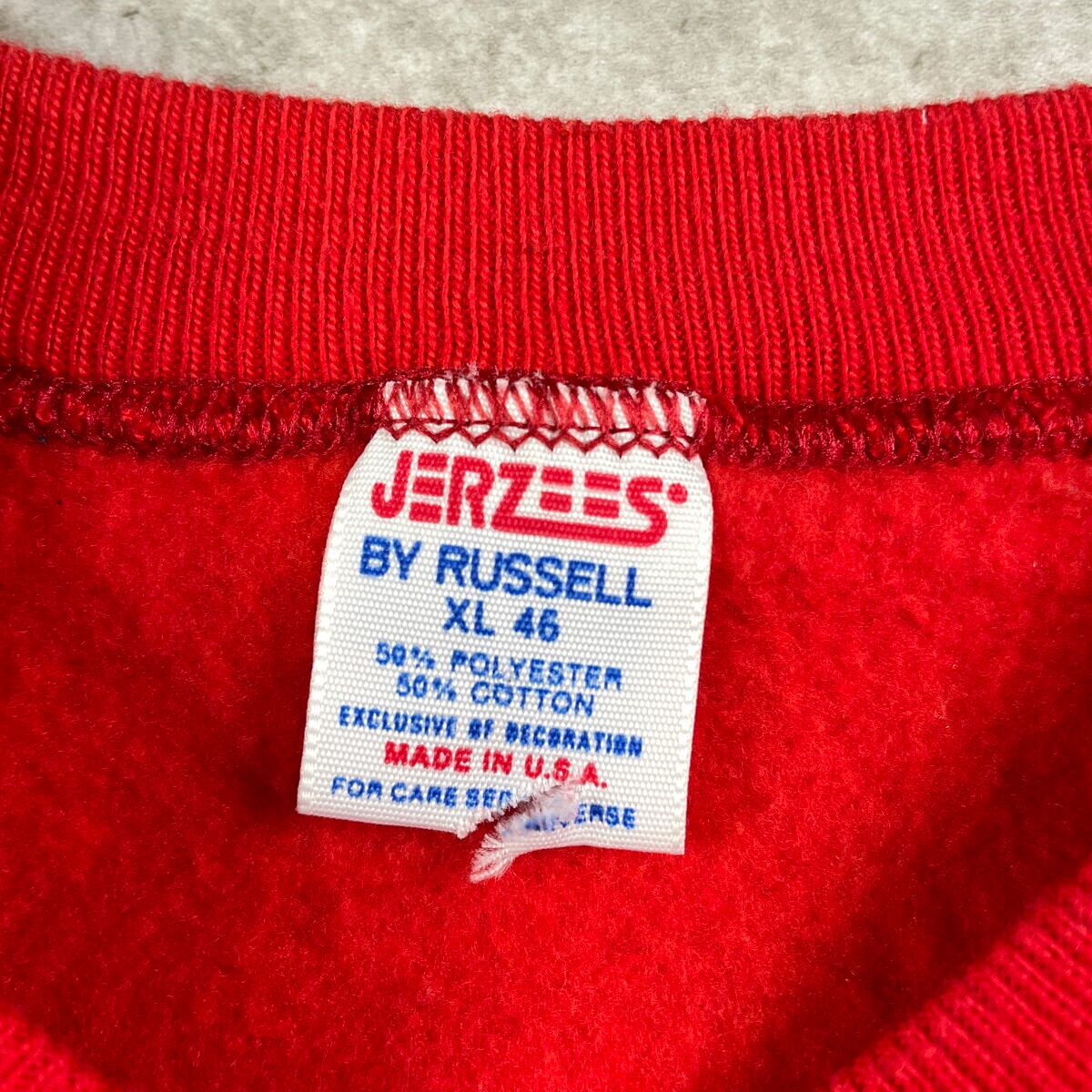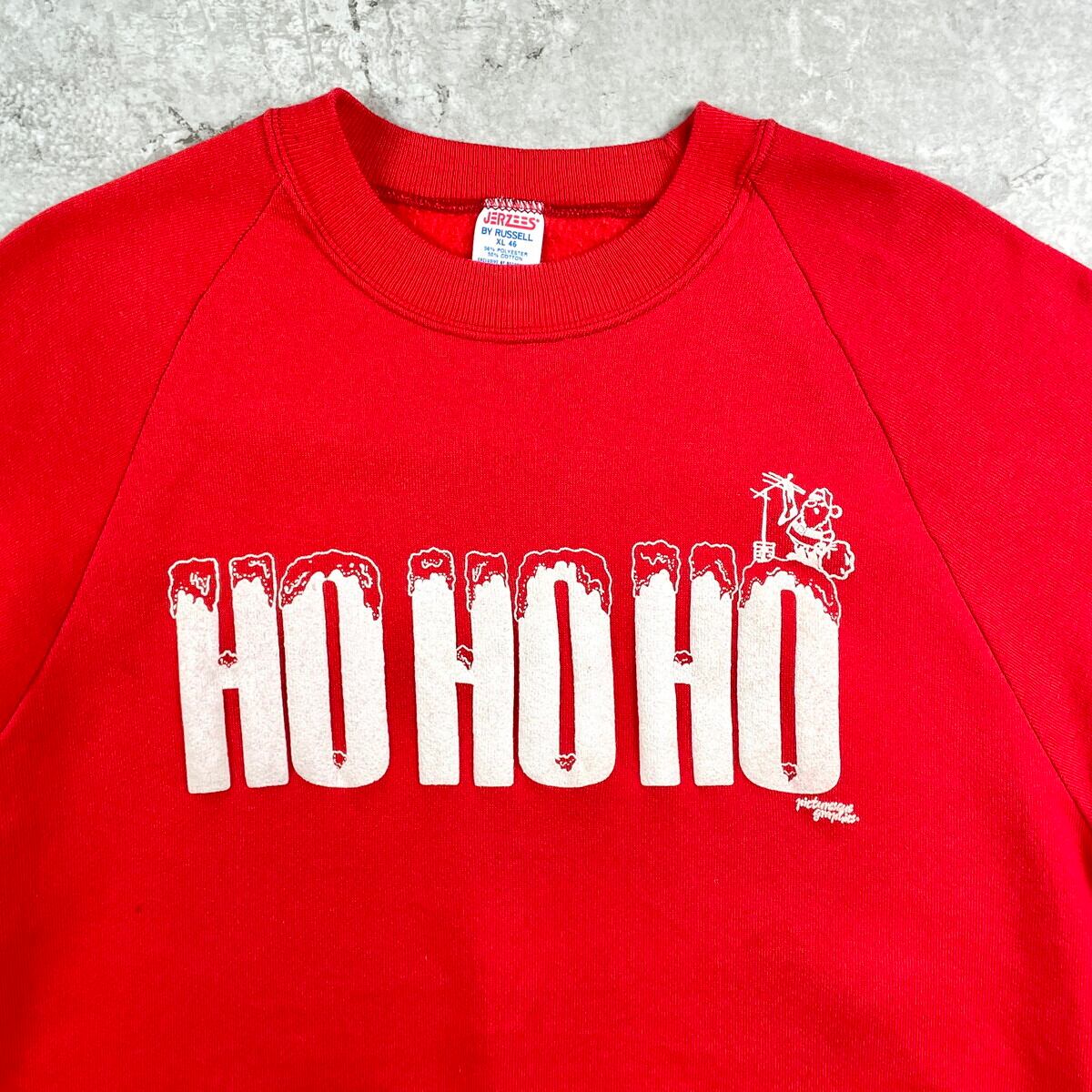 ■80年代 USA製 HO HO HO サンタ クリスマス 発泡プリント スウェット メンズM相当 古着 80s VINTAGE ヴィンテージ ラグランスリーブ トレーナー 赤色【スウェット】/レッド 【ブランド】JERZEES BY RUSSELL 【サイズ】表記 XL(実寸メンズM相当) ※計測値をご確認ください。 着丈…73 身幅…56.5 裄丈…86 袖丈(袖下計測)…57 【生産国】USA製 【素材】ポリエステル50% コットン50% 【状態】プリントした付近に目立たない程度の薄汚れがあります。 その他ダメージはございません。 画像にてご確認ください。 【c251127108】 ※古着は洗濯、検品などのケアを行っております。(新品・デッドストックは洗濯していません。) ※モニターの発色により実物と異なる場合がございます。予めご了承ください。 ※ 海外直輸入USED品になります。