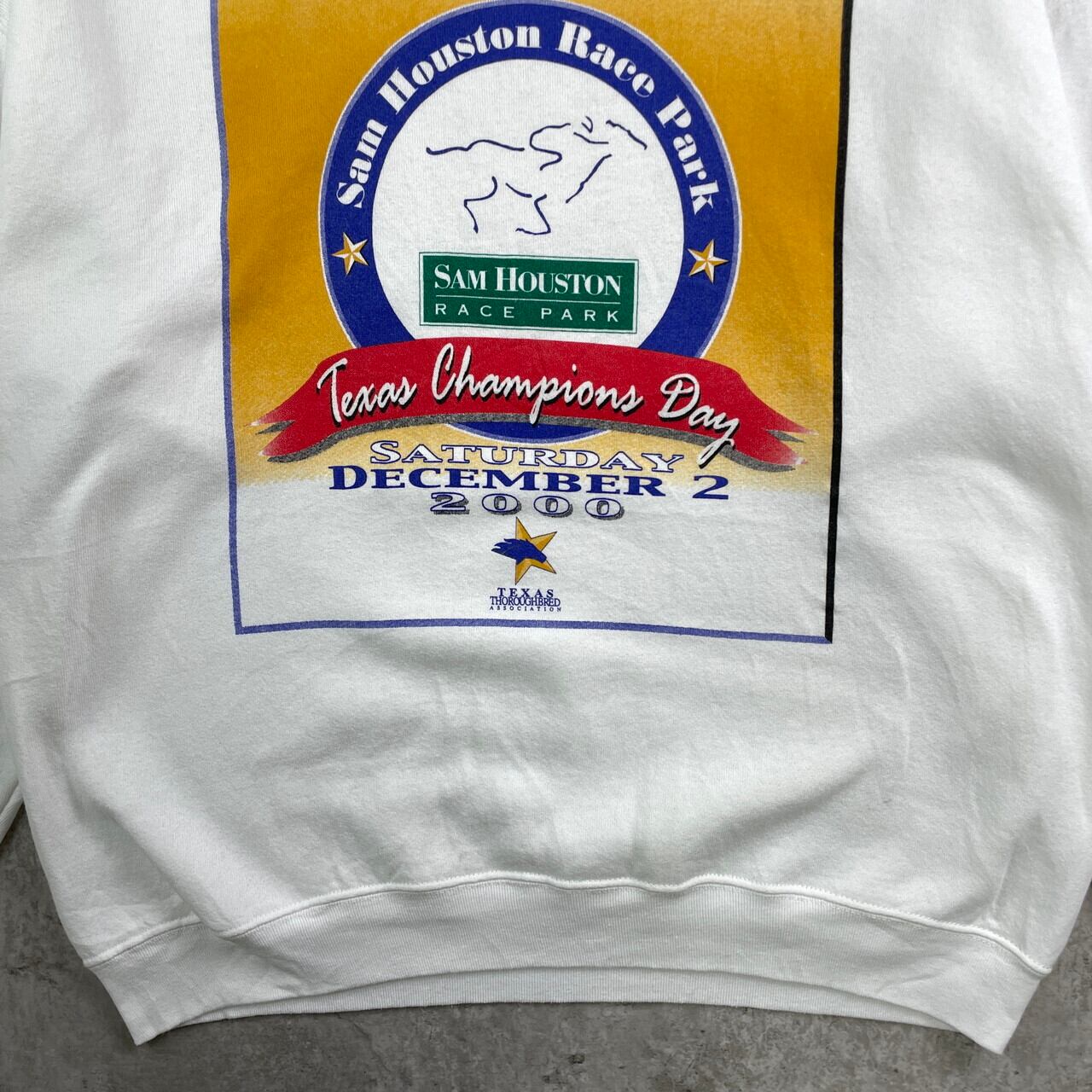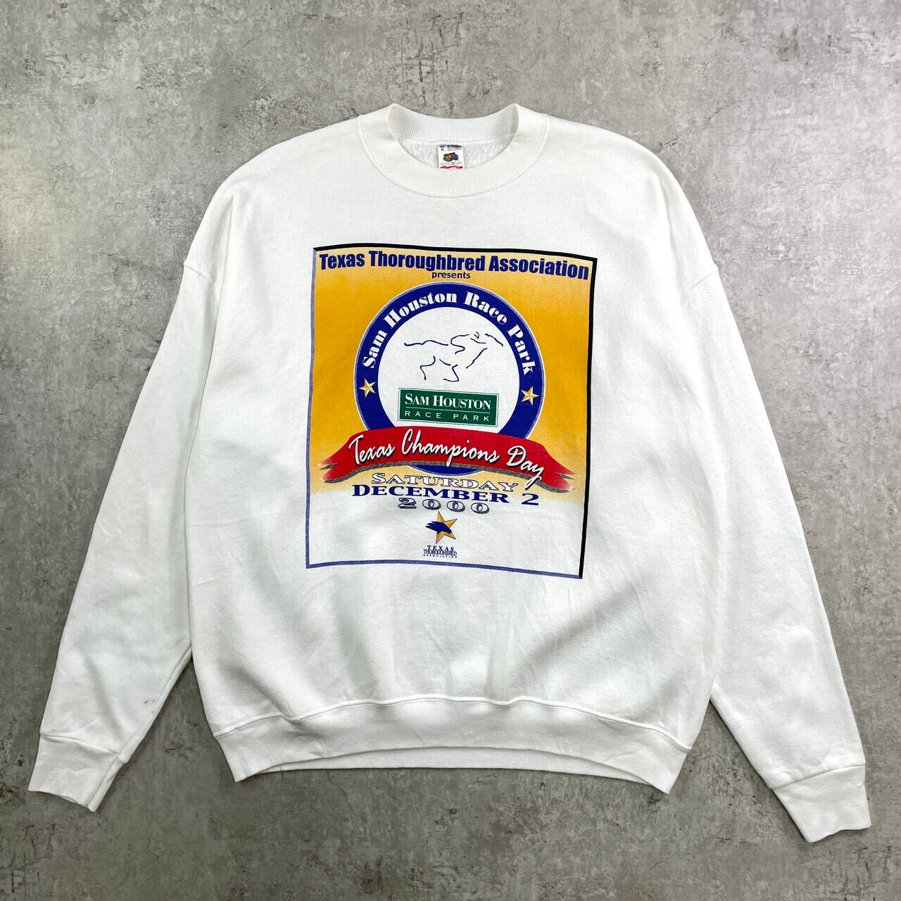 ■00年代 USA製 Texas Champions Day プリント スウェットシャツ メンズXL 古着 00s ヴィンテージ VINTAGE トレーナー アメカジ テキサスサラブレッド協会 サムヒューストン競馬場 両面プリント 白【スウェット】/ホワイト 【ブランド】FRUIT OF THE LOOM フルーツオブザルーム 【サイズ】表記 XL ※計測値をご確認ください。 着丈…72 身幅…64 肩幅…66 袖丈…61.5 【生産国】USA製 【素材】コットン50% ポリエステル50% 【状態】右袖やバックに汚れがございます。 画像にてご確認ください。 【c251127012】 ※古着は洗濯、検品などのケアを行っております。(新品・デッドストックは洗濯していません。) ※モニターの発色により実物と異なる場合がございます。予めご了承ください。 ※ 海外直輸入USED品になります。