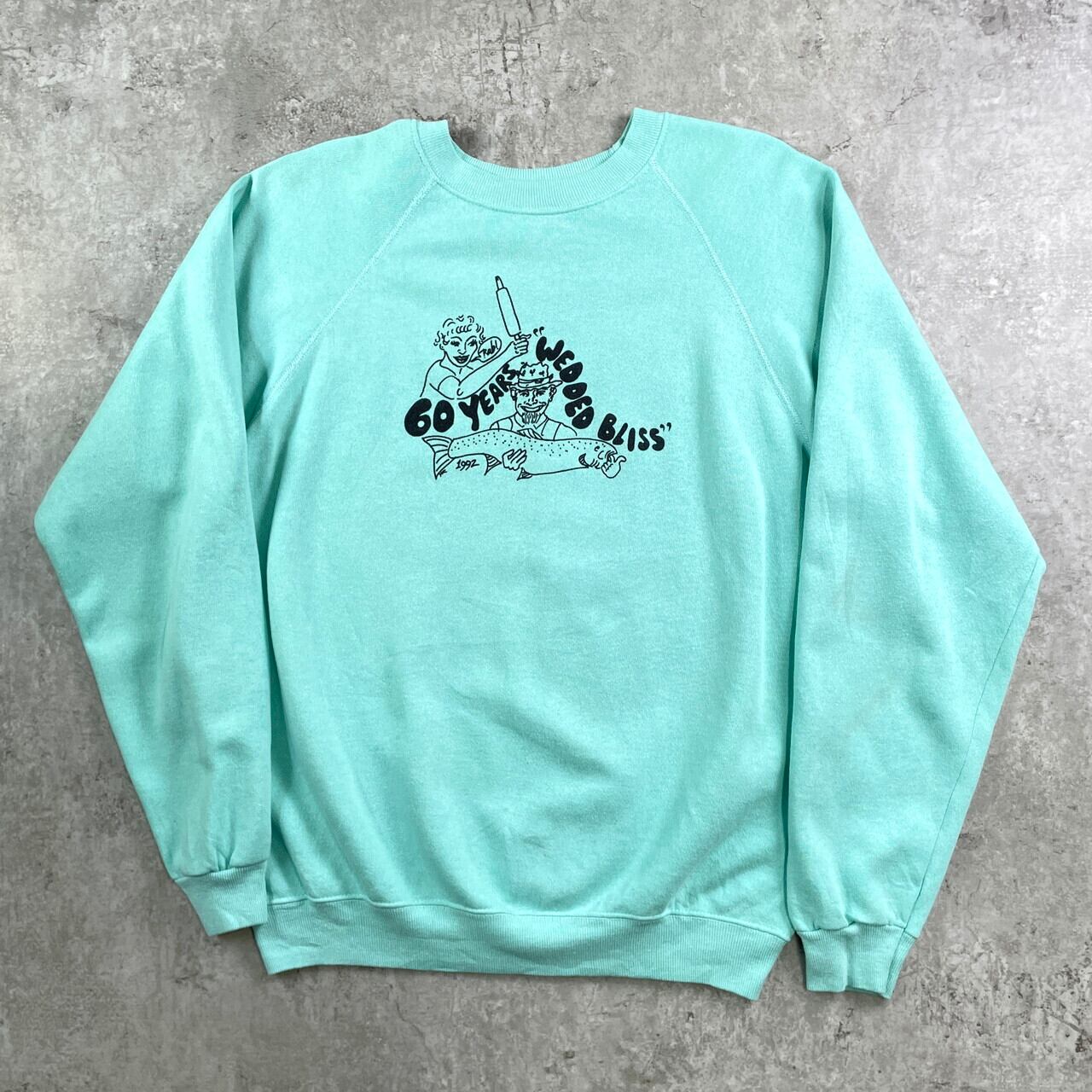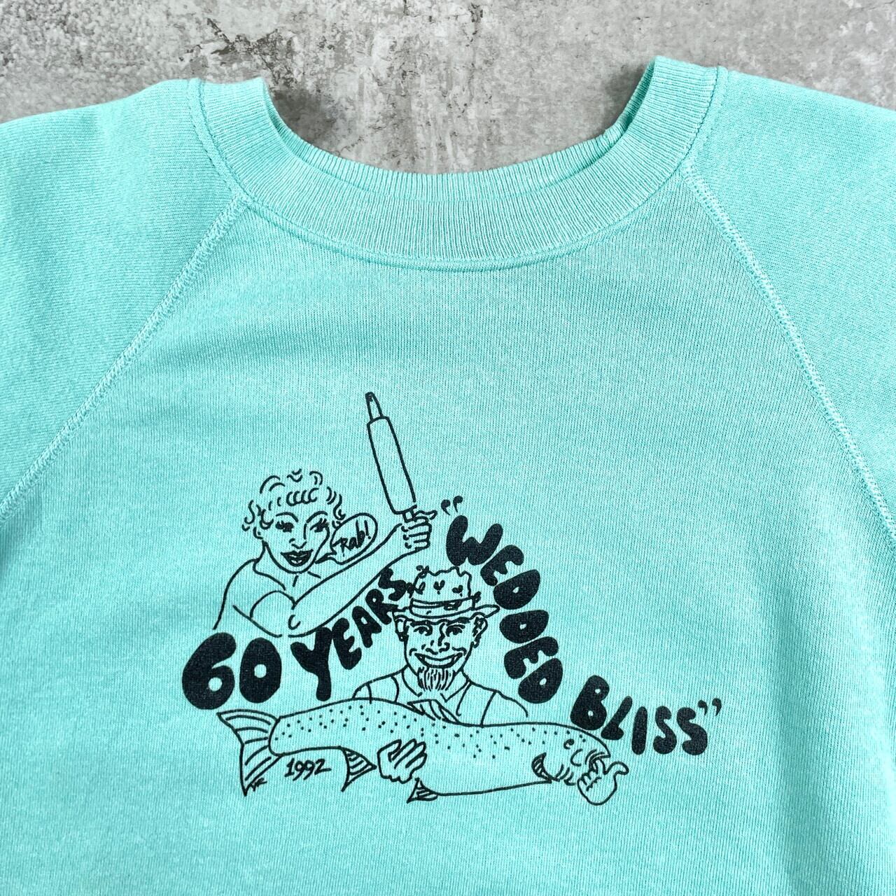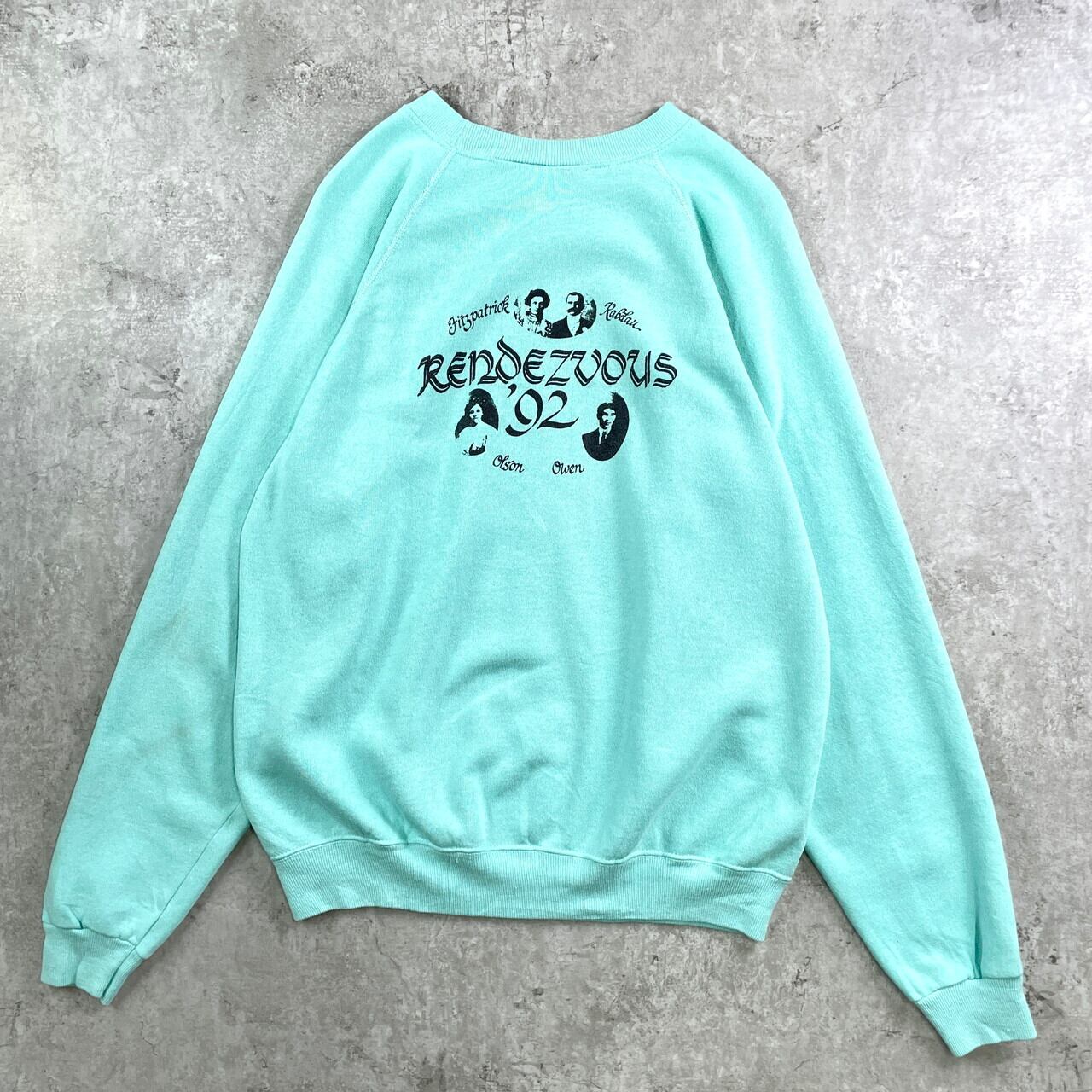 ■90年代 アートプリント ラグラン スウェットシャツ メンズL相当 古着 90s VINTAGE ヴィンテージ フォトプリ 両面プリント ティファニーブルー【スウェット】/グリーン 【サイズ】表記 不明(着用感メンズL相当) ※計測値をご確認ください。 着丈…65 身幅…58 裄丈…85 袖丈(脇下計測)…59 【生産国】不明 【素材】不明 おそらくコットンとポリエステルの混紡かと思われます。 【状態】 左袖に薄汚れ、後ろ首元のステッチ抜けなどがございます。 画像にてご確認ください。 【c251127010】 ※古着は洗濯、検品などのケアを行っております。(新品・デッドストックは洗濯していません。) ※モニターの発色により実物と異なる場合がございます。予めご了承ください。 ※ 海外直輸入USED品になります。