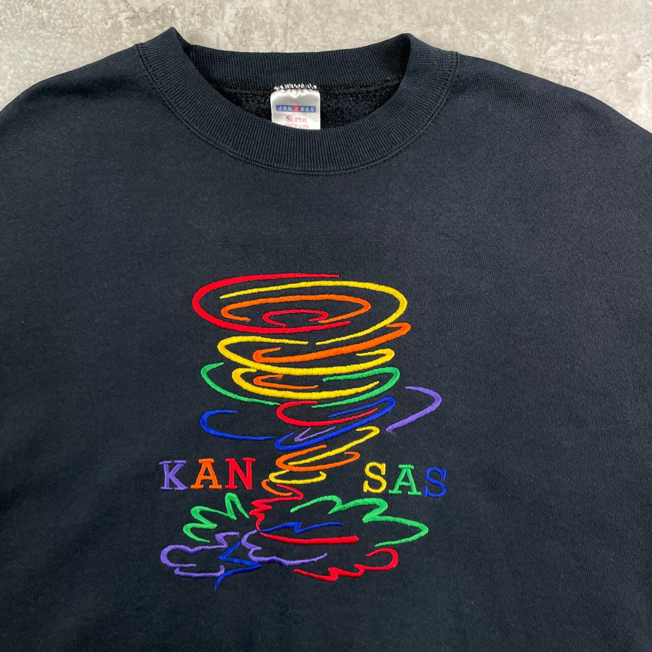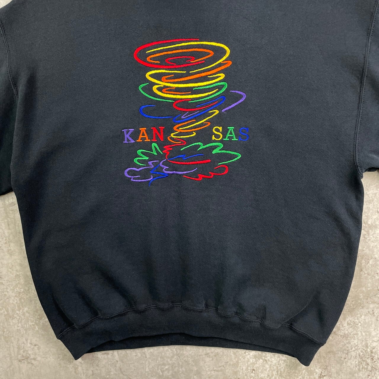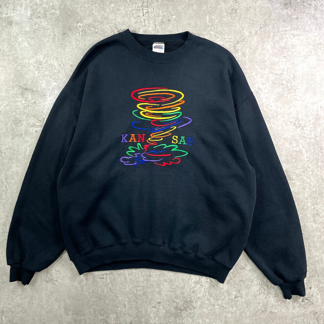 ■00年代 KANSAS スーベニア アート刺繍 スウェットシャツ メンズM相当 古着 00s VINTAGE ヴィンテージ 黒【スウェット】/ブラック 【ブランド】JERZEES ジャージーズ 【サイズ】表記 L(着用感メンズM相当) ※計測値をご確認ください。 着丈…67 身幅…61 肩幅…58 袖丈…57 【生産国】メキシコ製 【素材】コットン50% ポリエステル50% 【状態】 多少の使用感はございますが、 目立った汚れやダメージ等は無くまだまだ長く愛用していただけます。 画像にてご確認ください。 【c251127002】 ※古着は洗濯、検品などのケアを行っております。(新品・デッドストックは洗濯していません。) ※モニターの発色により実物と異なる場合がございます。予めご了承ください。 ※ 海外直輸入USED品になります。